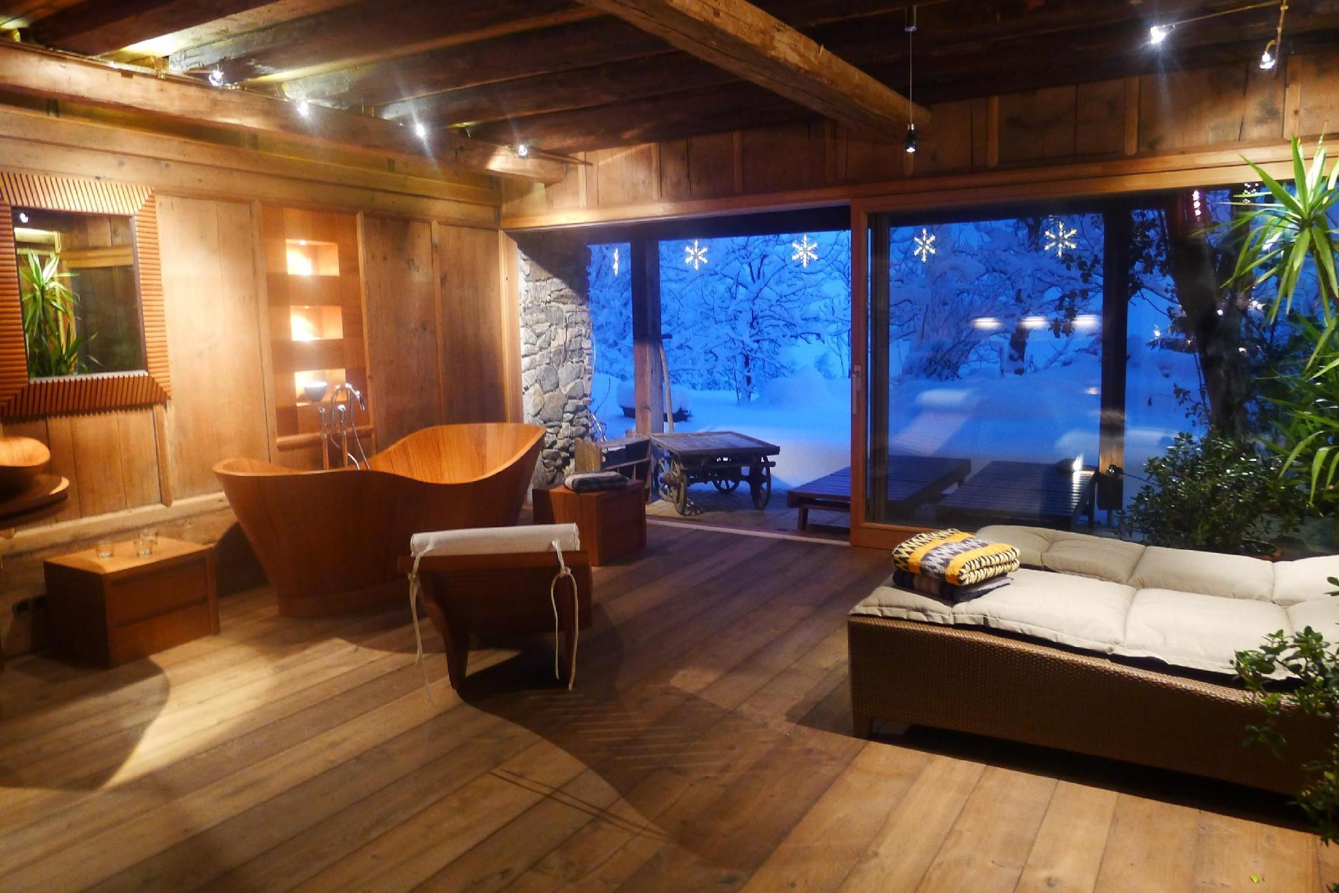 Es erstreckt sich über insgesamt 165 m² und ist eine einzigartige Kombination aus antikem Naturholz und ausgeklügelter Technik. Es verfügt jeder Raum über einen eigenen Temperaturregler und der Großteil der Beleuchtung ist mit Dimmer ausgestattet.
