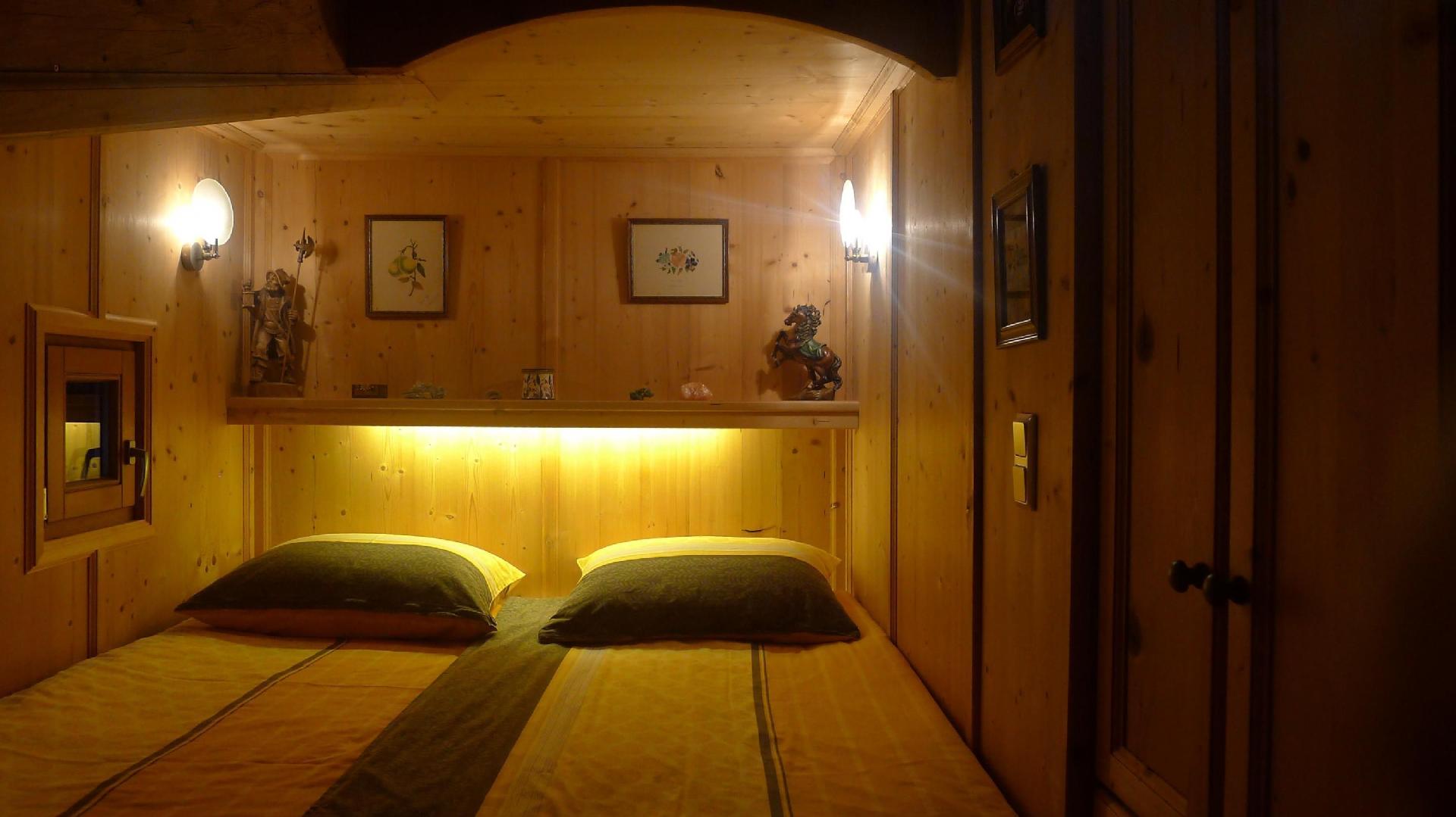 Zimmer 1:Zimmer mit Doppelbett (190cm x 200cm) und 1 Kinderbett (85cm x 160cm). Von diesem Zimmer aus gelangen Sie in das Badzimmer mit der Duschwanne.