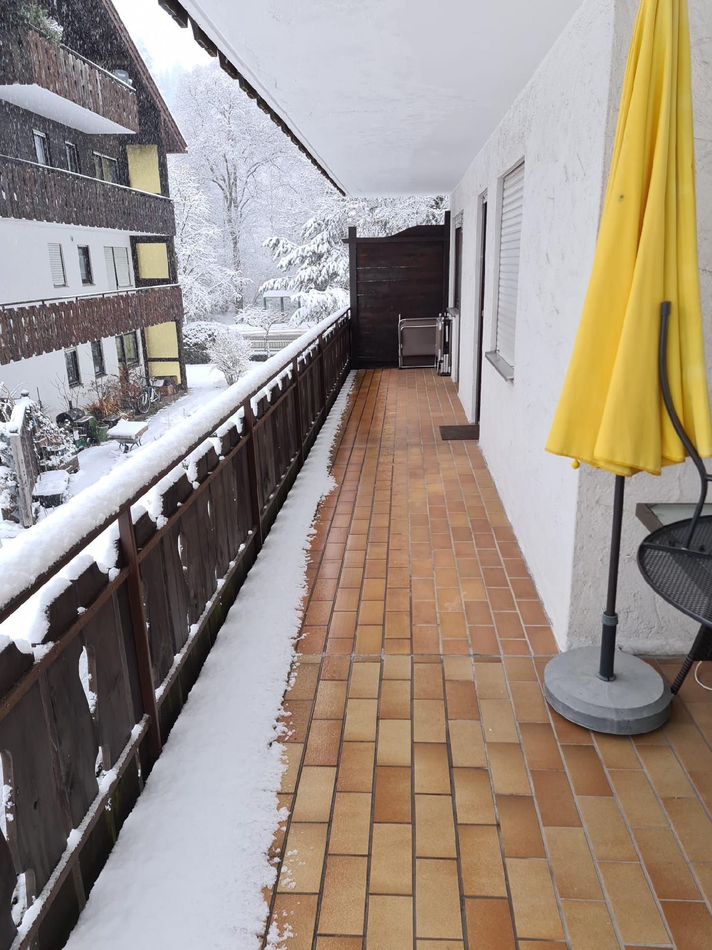 Der große Balkon stellt zweifellos ein Highlight der Wohnung dar. Zugänglich von Wohnzimmer, beiden Schlafzimmern und der Küche, bietet er Ihnen die Möglichkeit, die frische Bergluft und die Ruhe der Umgebung zu genießen. Ob Sie Ihren Tag mit einem Frühstück im Freien starten oder abends bei einem Glas Wein entspannen möchten – dieser Außenbereich lädt ein zum Verweilen und Genießen.