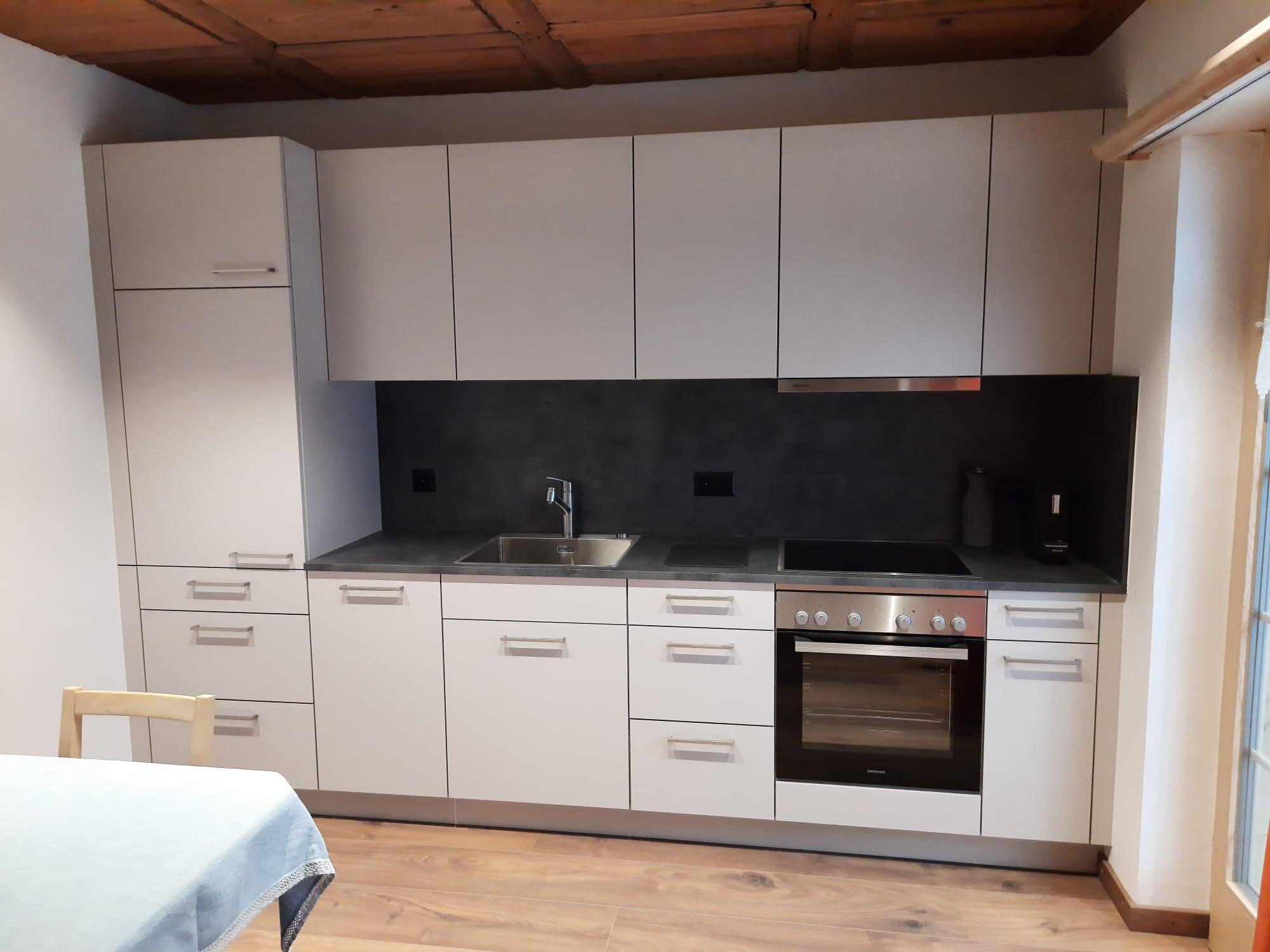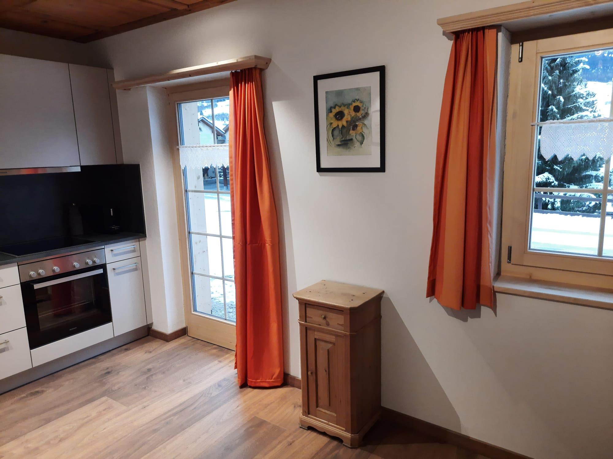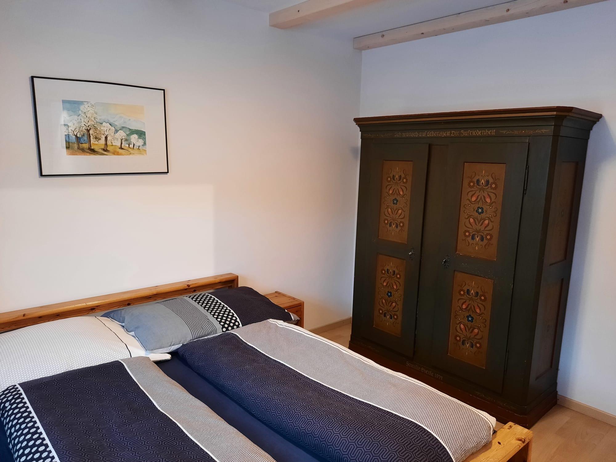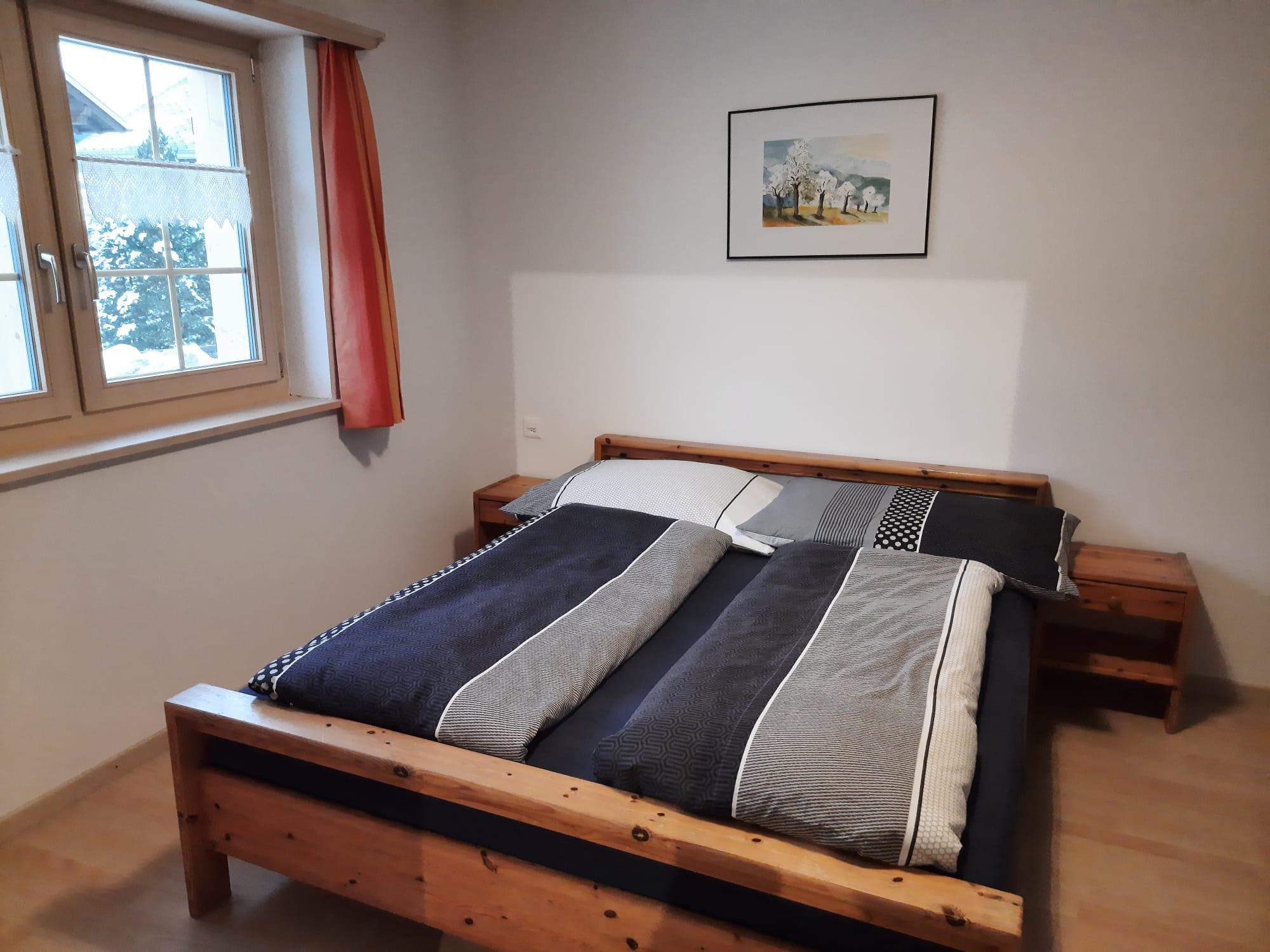 2-Zimmer-Wohnung in Mehrfamilienhaus ca. 37 m2. 1 Schlafzimmer mit einem Doppelbett (160 cm 1 Matratze). 1 Schlafsofa (140 cm 1 Matratze) im Wohnzimmer mit 2 Schlafplätzen. Insgesamt 4 Schlafplätze. Bettwäsche und Küchentücher vorhanden, für zwei Betten antiallergische Bettdeckenund Kopfkissen vorhanden. Wohnküche mit Backofen, Kühlschrank, Geschirrspülmaschine, Kaffeemaschine (Delizio). Racletteofen und Fondue-Caquelon. Dusche/WC. Haarföhn. Gartensitzplatz. Parkplatz. Kellerabteil, Waschmaschine und Wäschetrockner im Haus. WLAN. Haustiere nicht erlaubt. Nichtraucherwohnung. Wickelunterlage, Kinderstuhl,Kinder Reisebett bei Bedarf möglich, Bettgitter für Kleinkinder.