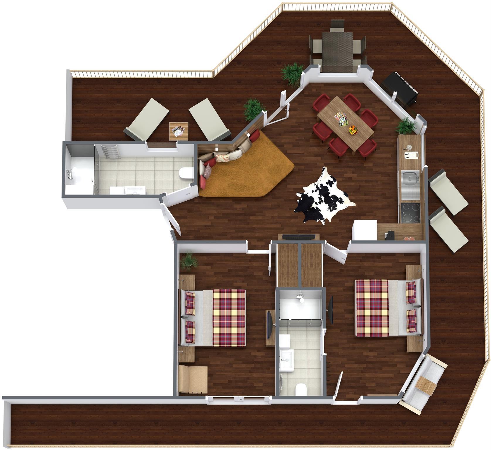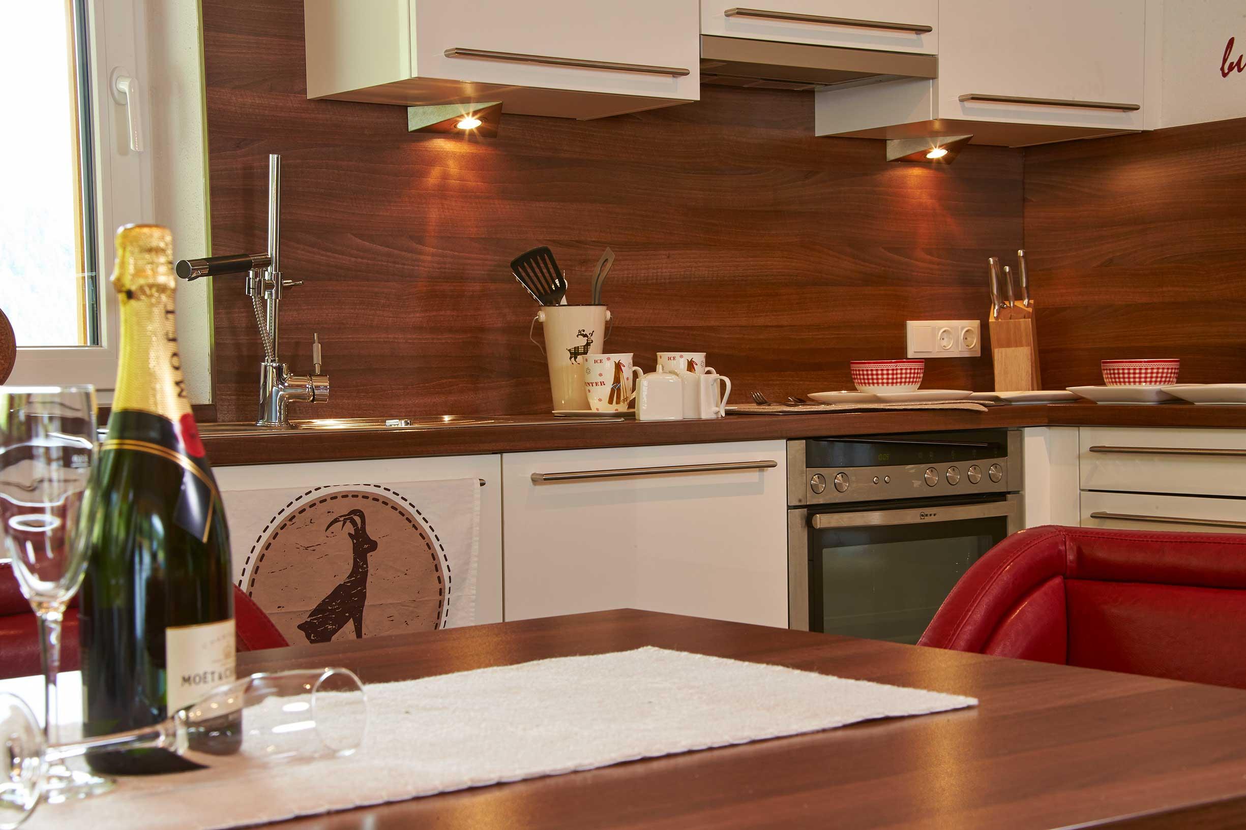 Penthouse Apartment mit ca. 65 m², ausgestattet mit 2 Doppelzimmer (ein Zimmer mit Schlafsofa für die 5. Person), 2 Badezimmern (1 Badezimmer mit Dampfdusche/WC, 1 Badezimmer mit Regendusche/WC), vollausgestatteter Wohnküche mit Kühlschrank, Geschirrspüler, Cerankochfeld, Kaffeemaschine uvm. 3 LCD TV, Wii Spielekonsole (gegen Pfand), großzügiger Balkon mit Panoramablick - im Winter direkt auf die Piste.