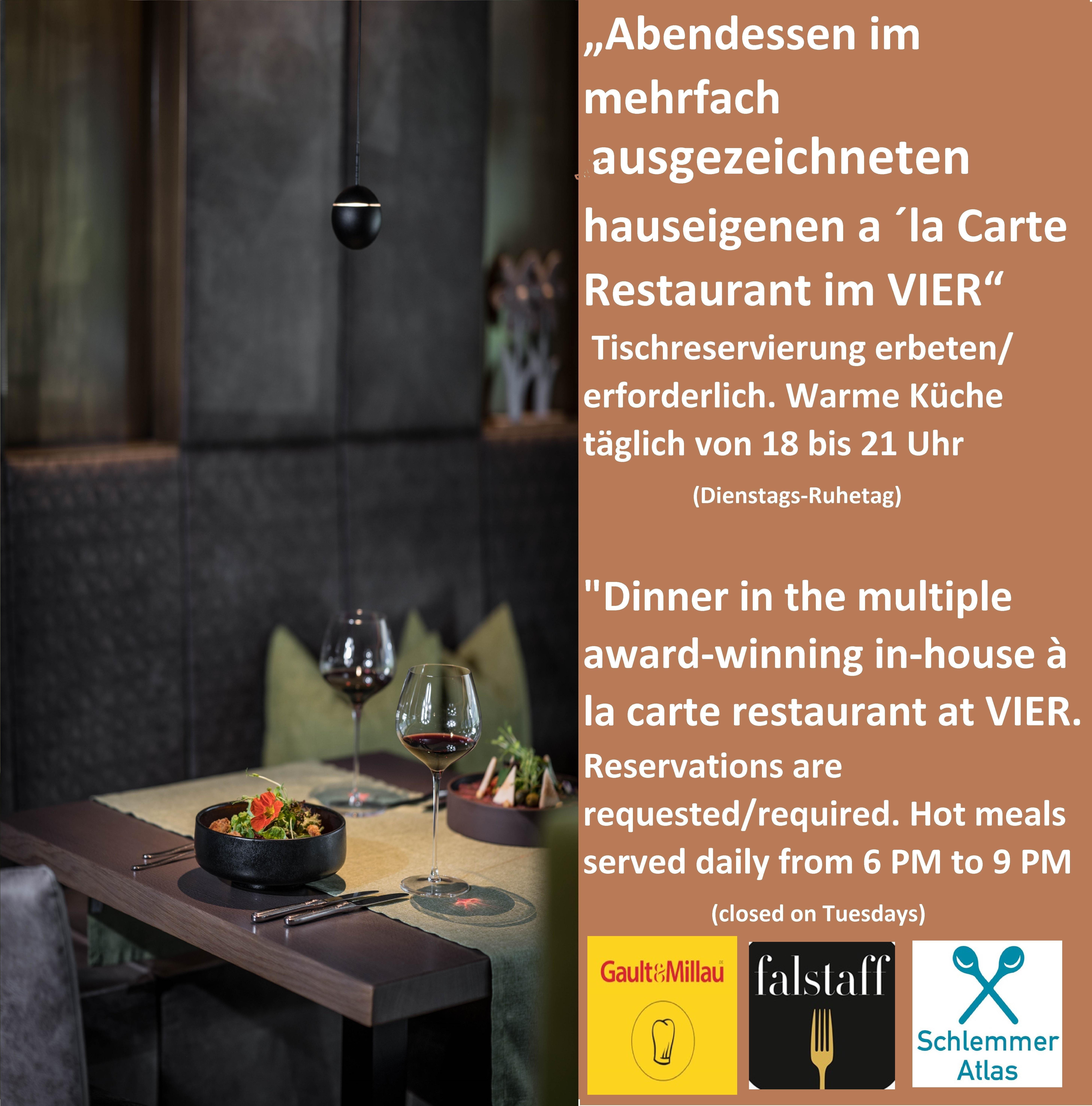 In den modern designten Studios verschmelzen die vier Elemente zu einem einzigartigen Erlebnis. Ein ausgezeichnetes Restaurant mit Haubenküche, ein entspannender Wellnessbereich und echte Tiroler Gastfreundschaft schaffen eine harmonische Atmosphäre. Das lodernde Feuer spüren, die Klarheit des Wassers schmecken, die Kraft der Erde sehen und die Freiheit der Luft atmen – hier werden die Sinne geweckt.