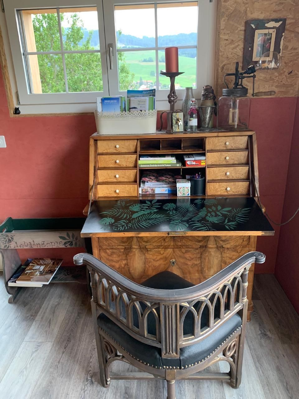 Haben Sie Lust, in den Ferien nebst Ausflügen, Wandern, Wellnessen auch kreativ tätig zu sein? Gerne stellen wir Ihnen unsere gut bestückte Werkstatt und unser Atelier mit grossem Fenster auf der Südseite zur Verfügung. Sie bringen bspw. ein Möbelstück oder Dekoartikel zum Upcyceln von daheim mit und gestalten es mit Chalk Paint und verschiedenen Techniken oder Sie besuchen die Brockenstuben in der Umgebung und suchen ein passendes Stück aus. Ziehen Sie textiles Werken vor oder möchten längst schon Ihre Wäsche gekonnt flicken oder Ihre Tisch-/Bettwäsche in Home-Deko verwandeln, dann steht eine Bernina Näh- und Overlookmaschine für Sie bereit. Für Ratschläge stehen wir gerne zur Verfügung.