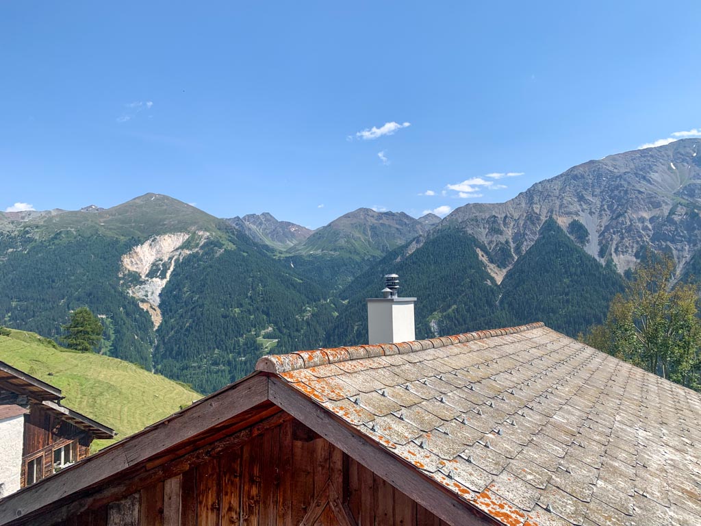 In sonniger Südlage, hoch über dem Val Müstair liegt unsere voll ausgestattete Ferienwohnung Bergblick im kleinen Weiler Craistas auf 1880m.