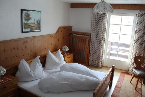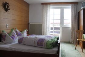 Doppelzimmer mit Dusche und Waschbecken, TV, WLAN, teilweise Balkon, Toiletten befindet sich am Gang