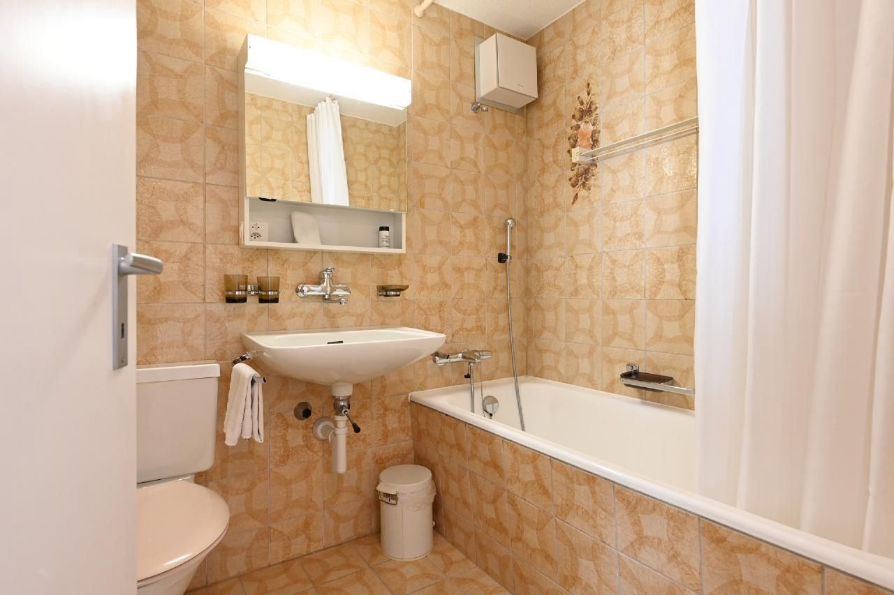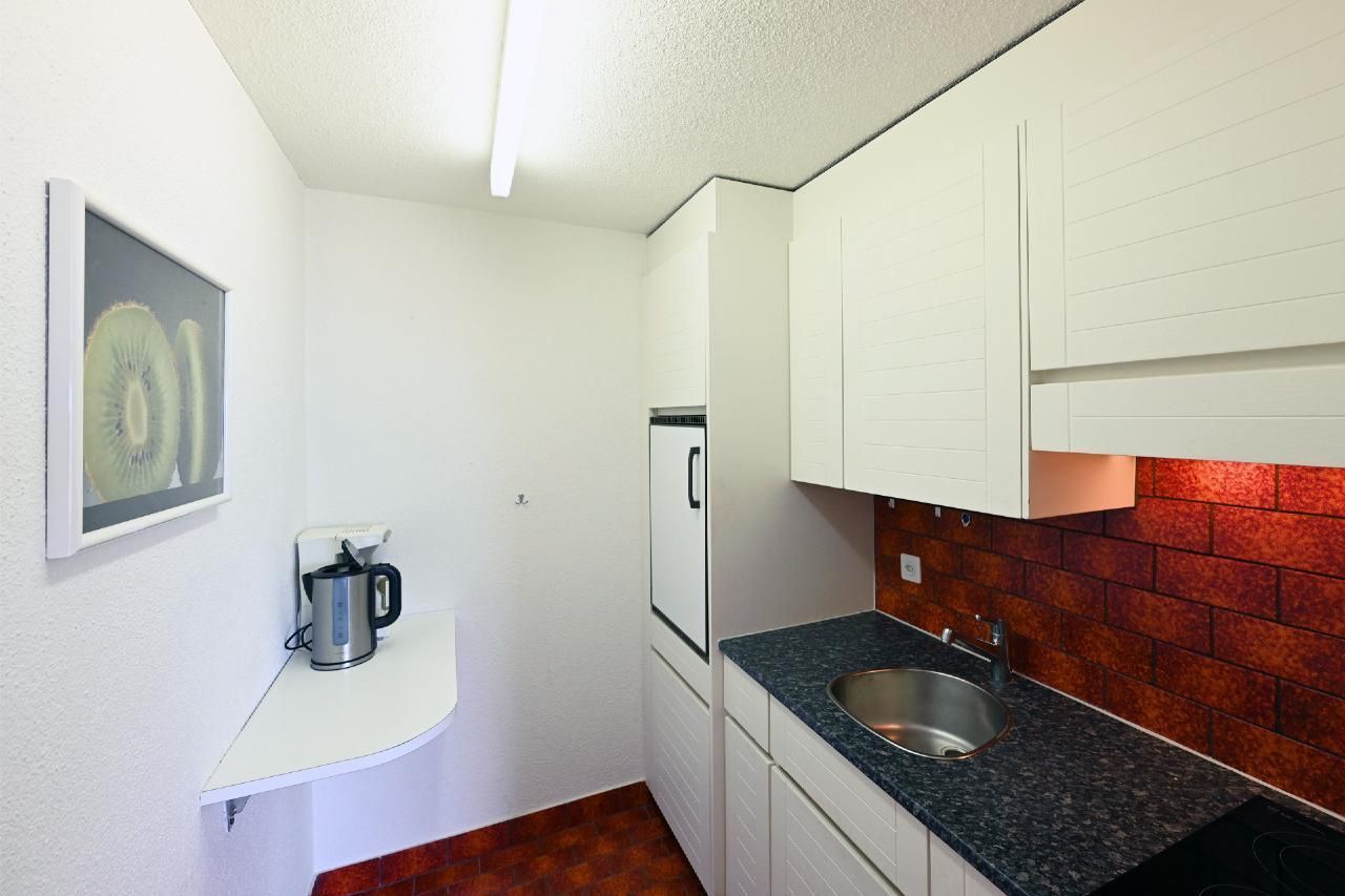Im Außenbereich des Gebäudes finden Sie vielfältige Möglichkeiten zur Entspannung und Erholung. Genießen Sie die heilenden Wirkungen des 28°C warmen Hallenbads oder entspannen Sie in der Sauna, Biosauna, Solarium und Wärmekabine. Die Dachterrasse lädt zum Verweilen und Abschalten ein, während die Gemeinschaftswaschküche im Keller für zusätzlichen Komfort während Ihres Aufenthalts sorgt. Für Gäste mit einem Motorfahrzeug steht ein Garagenplatz in der Einstellhalle gegen eine geringe Gebühr zur Verfügung.