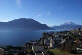 Appartement Alpenblick ist mit 4 Sternen klassifiziert. 1-Zimmer-Nichtraucher-Appartement, mit möbliertem Balkon mit schöner Sicht auf See und Berge. Grundfläche zirka 35 m2. Die Wohnung liegt auf der zweiten Etage (Lift), sonnige, ruhige Lage. Die Wohnung verfügt über 1 Bett für 2 Personen, Einbauschrank, Tisch mit 2 Stühlen, Polstermöbel, Telefon, Farb-Kabel-TV. Elektrische Küche mit 4-Platten-Kochherd, Backofen, Mikrowellenherd, Geschirrspüler, Kühlschrank mit Tiefkühlabteil, Kaffeefiltermaschine, alles komplett eingerichtet. Badezimmer mit Badewanne, Lavabo und WC. Unentgeltlich benutzen Sie das hauseigene Hallenbad, Wassertemperatur 28°C. Das Haus verfügt über Sauna, Biosauna, Wärmekabine und Solarium. Im rückwärtigen Haus finden Sie ein Restaurant. Für Gäste welche mit einem Motorfahrzeug anreisen ist ein Platz in der Garage zu Fr. 7.- pro Nacht obligatorisch.