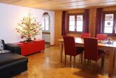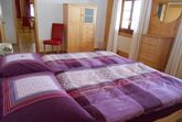Die Ferienwohnung im ersten Obergeschoss wartet mit einer liebevollen Einrichtung auf, die bis zu 6 Personen eine heimelige Atmosphäre bietet. Ausgestattet mit neuen Massivholzmöbeln, findet sich ein Doppelbett, drei Einzelbetten, ein Bettsofa sowie ein Kinderbett. Die Küche bietet mit Gewürzen, einem großen Küchentisch mit Sitzbänken und allem Nötigen den perfekten Ort für gemeinsame Mahlzeiten. Für Unterhaltung und Komfort sorgen zahlreiche Bücher, Spielsachen, ein Fernseher und Internetanschluss.