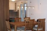 Die Wohnung ist hell und modern. Es gibt zwei Schlafzimmer, eines mit einem 160cm Bett(Doppelmadratze), das andere mit einem Einzel- und einem Kajüten-Bett. Der Wohn- Essraum ist für 5 Personen eingerichtet. Die Küche ist mit Kühlschrank/Eisfach, Kochfeld/Backofen, Geschirrwaschmaschine und Mikrowelle ausgestattet.