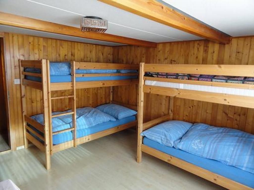 Im Inneren erwartet Sie ein liebevoll eingerichteter Wohnbereich, der mit einem Esstisch, einer Eckbank und Stühlen für bis zu 6 Personen ausgestattet ist. Das Schlafzimmer bietet neben Komfort auch praktische Elemente wie ein Lavabo, einen Kleiderschrank, eine Kommode mit Spiegel sowie Nachttischchen mit Leselampen. Die Küche verfügt über einheitliches Geschirr für 6 Personen und bietet Ihnen die Möglichkeit, mit einem Fondue- oder Raclett-Ofen (beim Vermieter erhältlich) sowie einem Grill kulinarische Abende zu genießen.