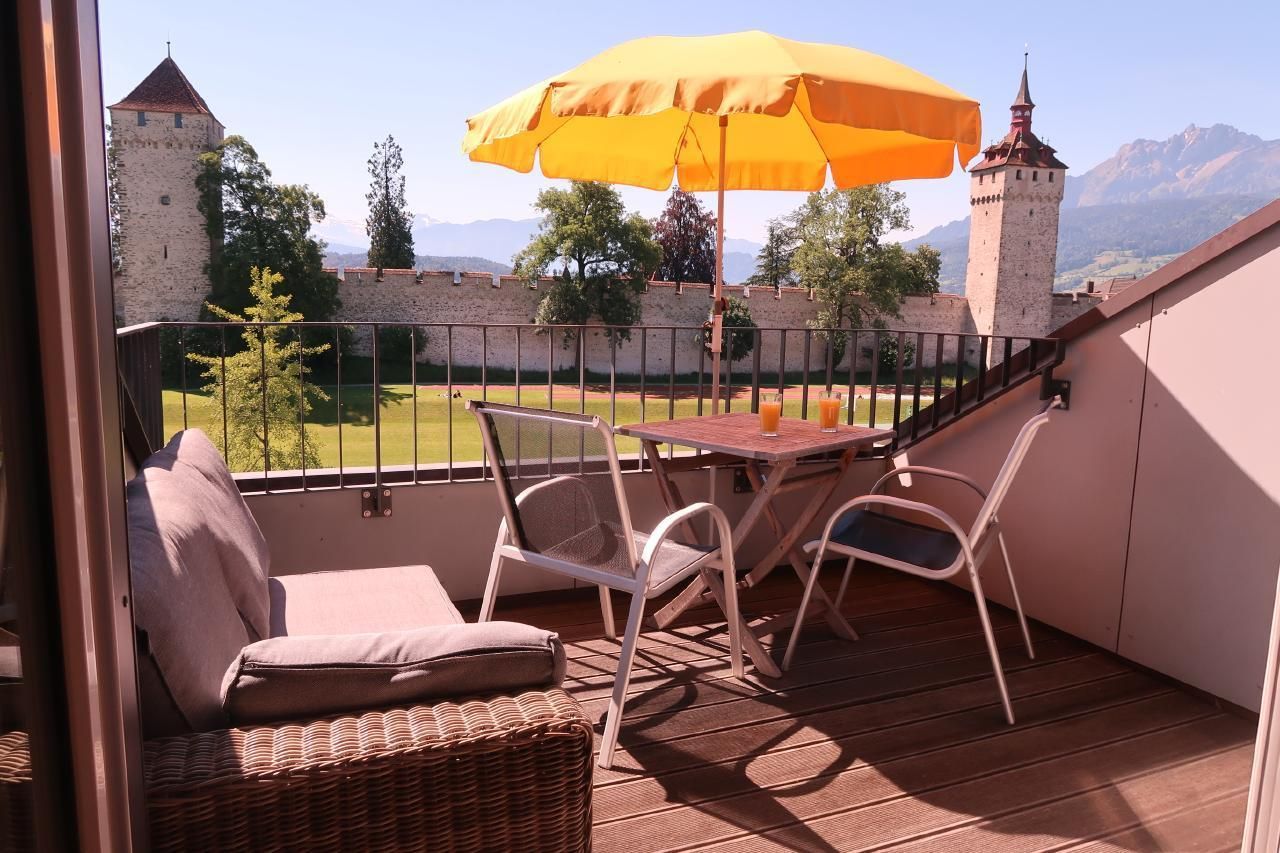 Stadtzentrum Luzern. See und Altstadt in Fussdistanz, ruhige Lage. Neues Appartement mit Balkon. Aussicht auf See, Berge, historische Stadtmauer. Die gemütliche Dachwohnung mit Charme liegt an Toplage oberhalb der Altstadt. Sie teilt sich wie folgt auf: Wohnen / Kochen: Moderne Wohnküche und gemütlicher Sitzbereich, Sichtbalken. Balkon mit herrlicher Aussicht. Ausstattung: Gut ausgerüstete Küche, Küchentücher; Abwaschmittel; Kehricht ttwäsche und Badwäschetücher inklusive. Ganze Wohnung mit Parkettboden. Schlafen: 2 Einzelbetten in abgetrennter Schlafnische mit großem Dachfenster. Parkplatz: Öffentlicher Parkplatz vor dem Haus in der Quartierstrasse. Öffentlicher Nahverkehr in der Stadtzone im Aufenthalt kostenlos und inbegriffen (Gästekarte).Hunde: Mit Rücksichtnahme auf Bewohner und Gäste sind freundliche Hunde die nicht haaren nach Rücksprache bei der Buchungsanfrage willkommen.