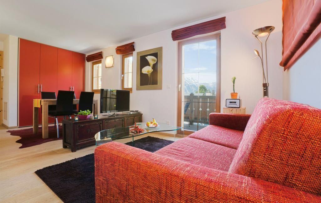 Sehr schöne, gemütliche, komfortable 2 1/2 Zimmer-Wohnung (35m2), 1. Stock (Lift), mit Balkon in Mehrfamilienhaus. Sonnige, ruhige Lage mit wunderschöner Aussicht in die umliegende Bergwelt. Offene Küche, Wohn-/Esszimmer mit SAT-TV, Radio/CD, ein Schlafzimmer mit Doppelbett und einem Bad. Tiefgarage mit 2 Parkplätzen. Separater Keller-Raum mit eigener Waschmaschine, fliessendem Wasser und Waschtrocknungsgerät. Optimaler Ausgangspunkt für sportliche Aktivitäten (Wandern, Skifahren, Langlauf etc.). Spaziermöglichkeiten sind ebenfalls problemlos zu Fuss oder mit dem Bus erreichbar. Die Bushaltestelle befindet sich in unmittelbarer Nähe. Dorfzentrum und Einkaufsmöglichkeiten in der Nähe. Im Sommer mit Öv-Inklusive (freie Nutzung der öffentlichen Verkehrsmittel in der Region)