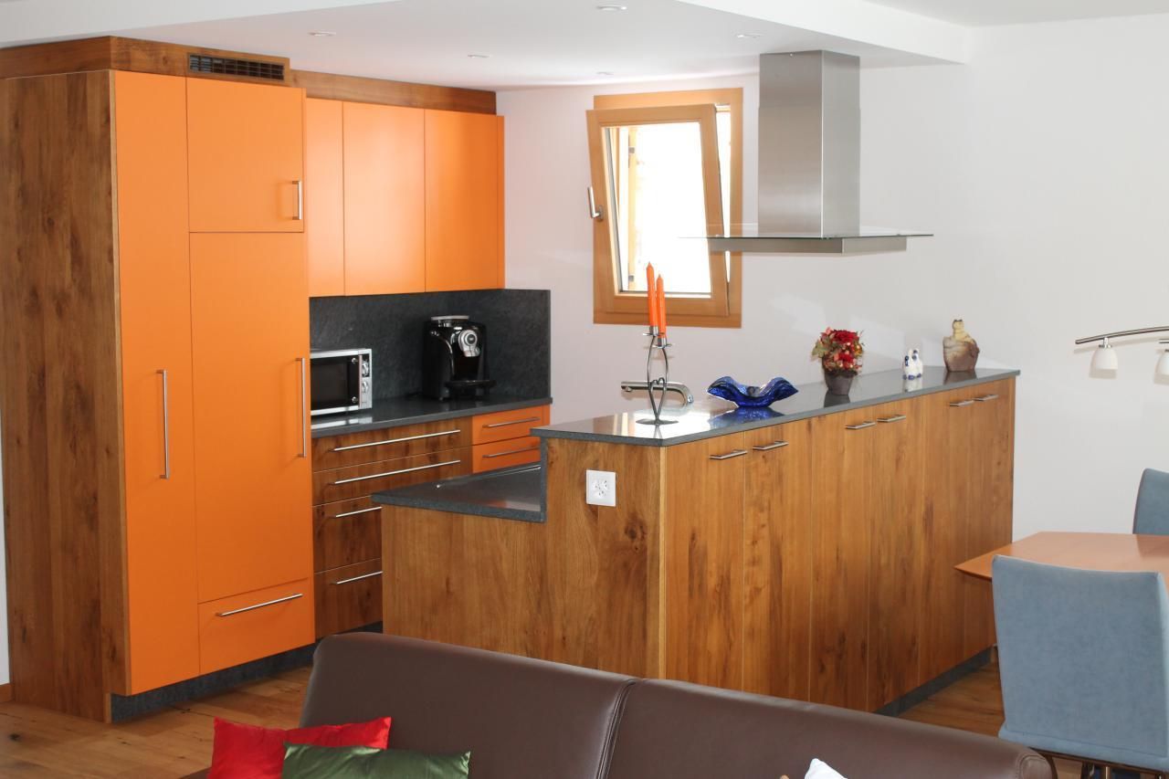 Die neue 92m2 grosse 3 ½ Zimmer-Wohnung im 1. Stock ist modern und geschmacksvoll eingerichtet. Gepflegte Möbel, Eichenböden in allen Räumen und eine moderne, voll eingerichtete Küche sollen Ihre Ferien verschönern. Geschirrspüler, Mikrowellengerät, Kaffee-Vollautomat, Fondue- und Raclettegeräte und genügend Geschirr erlauben alle kulinarischen Vergnügen. Der Volg-Laden ist nahe- womit auch die frischen Frühstücksbrötchen gesichert sind. Er ist täglich (auch sonntags) von 7-19h geöffnet. Und für den Notfall sind auch die eigene Waschmaschine und Tumbler vorhanden. Der Abstellplatz in der Einstellhalle ist ebenso im Preis inbegriffen wie der Internetanschluss, alle Wäsche, Schlussreinigung und Kurtaxen.