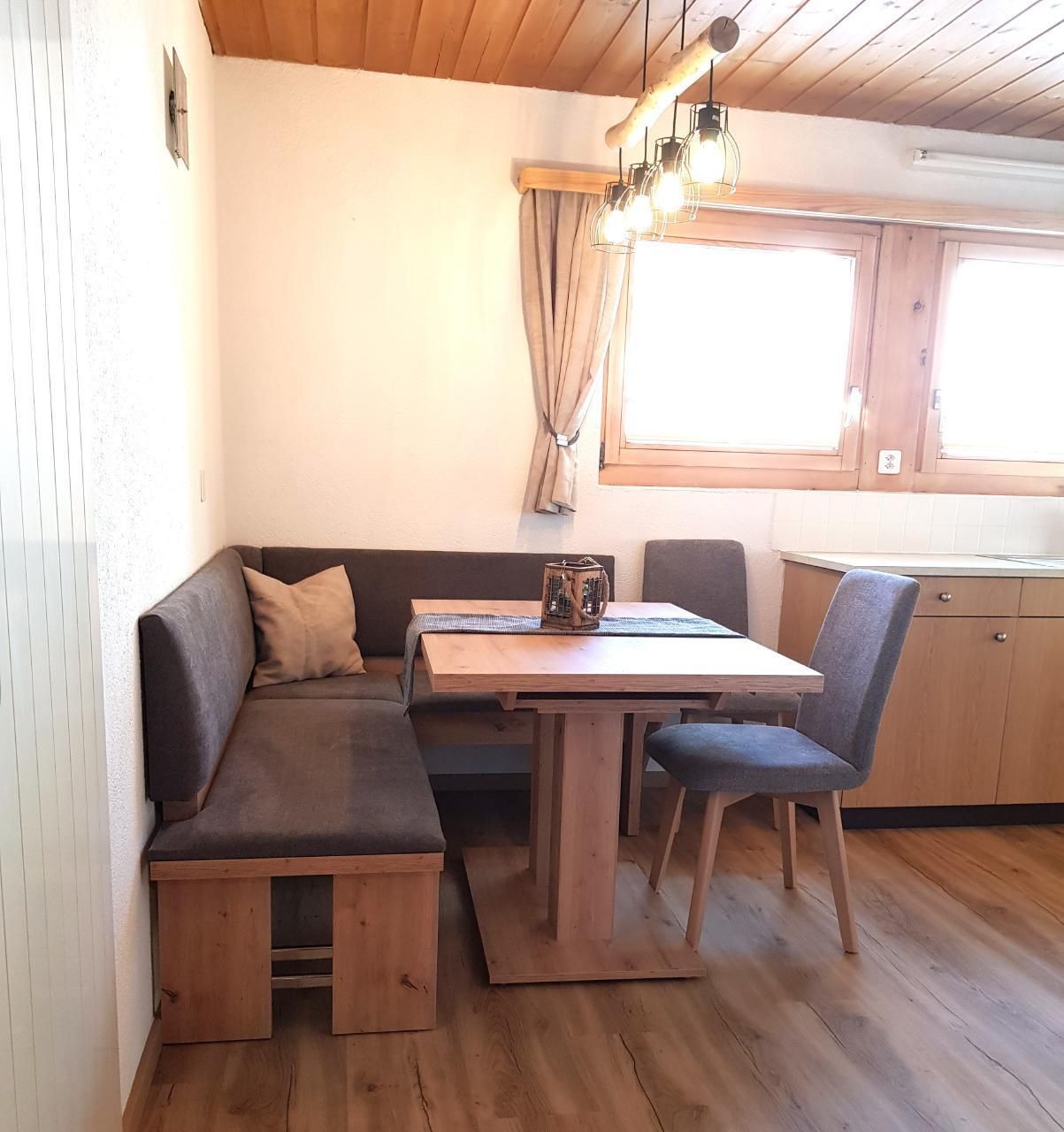 Unsere gemütliche und mit Liebe zum Detail eingerichtete Wohnung erwartet Sie im zweiten Stock unseres Mehrfamilienhauses. Sie bietet auf ca. 55 m² eine komfortable Zweieinhalb-Zimmer-Wohnung mit Balkon, ideal für Paare oder Familien. Entspannen Sie im Wohnraum mit einer ausziehbaren Schlafcouch, welche Platz für eine zusätzliche Person oder zwei Kinder bietet. Für Wärme und eine gemütliche Atmosphäre sorgt ein Holzofen, ergänzt durch eine typische Samnauner Ofencouch. Eine voll ausgestattete Küche mit Essbereich sowie ein Doppelzimmer und ein Bad/WC runden das Wohnangebot ab. Außerdem steht Ihnen gratis WLAN zur Verfügung, und für einen perfekten Start in den Tag bieten wir einen Brötchenservice an.