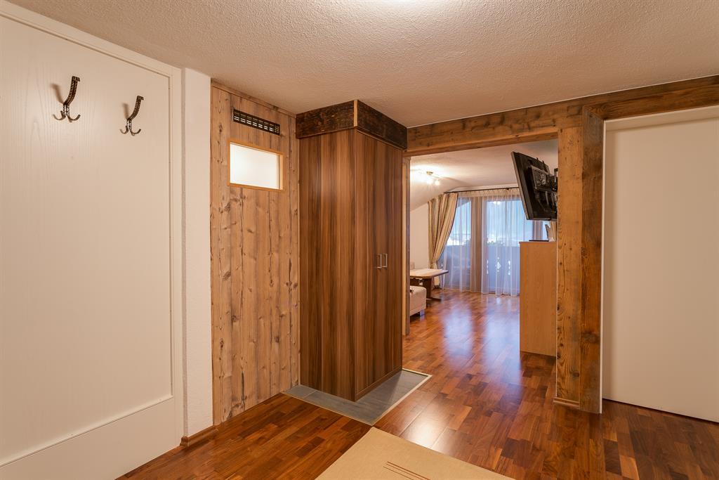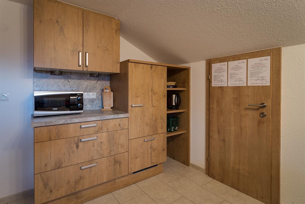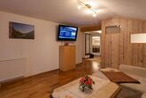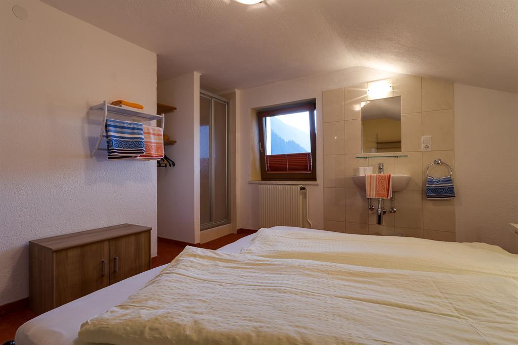 Unser Appartement im Dachgeschoss mit ca. 90 m² ist ausgestattet mit: 1 Dreibettzimmer mit Bad/Dusche, Waschbecken und WC, 1 Doppelzimmer mit Dusche, Waschbecken und separates WC, 1 abgeschrägte kleine Schlafnische mit französischem Bett (140x200cm), 1 Wohnzimmer mit Schlafmöglichkeit, Flat-TV, Küche mit 4 Platten-Keramik-Kochfeld, Backofen, Geschirrspüler, Mikrowelle, Kaffemaschine, Essecke und möblierter Balkon mit herrlichem Blick auf die umliegende Bergwelt mit glasklarer Bergluft zum Durchatmen... Gegen Aufpreis können Sie sich gerne an unserem Frühstücksbuffet stärken, oder wir besorgen Ihnen gerne täglich frische Brötchen.