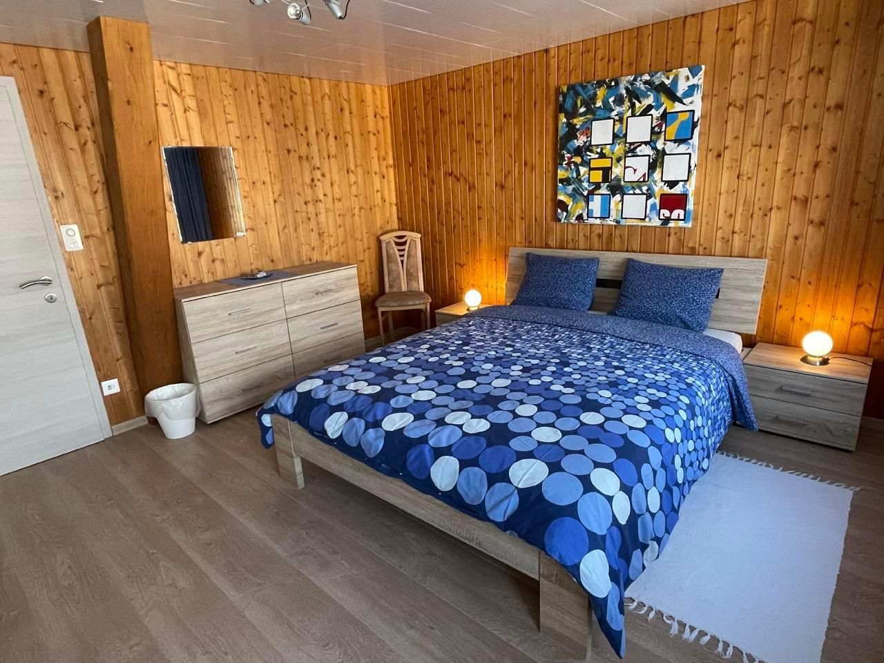 Im Inneren der Wohnung erwartet Sie ein geräumiges Entré mit Garderobe, welches in eine moderne, offene Küche mit Geschirrspüler übergeht. Das angrenzende Wohnzimmer, ausgestattet mit Fondue-Geschirr und einer offenen Küche, öffnet sich über eine leichtgängige Schiebetür zu einem großen Balkon. Für Ihren Komfort stehen drei Schlafzimmer zur Auswahl, darunter ein Elternschlafzimmer und ein Schlafzimmer mit einem französischen Bett und integrierter Nasszelle. Eine zusätzliche Nasszelle, welche ab 3 Gästen (über 16 Jahre) im Mietpreis berücksichtigt ist, erhöht den Wohnkomfort.