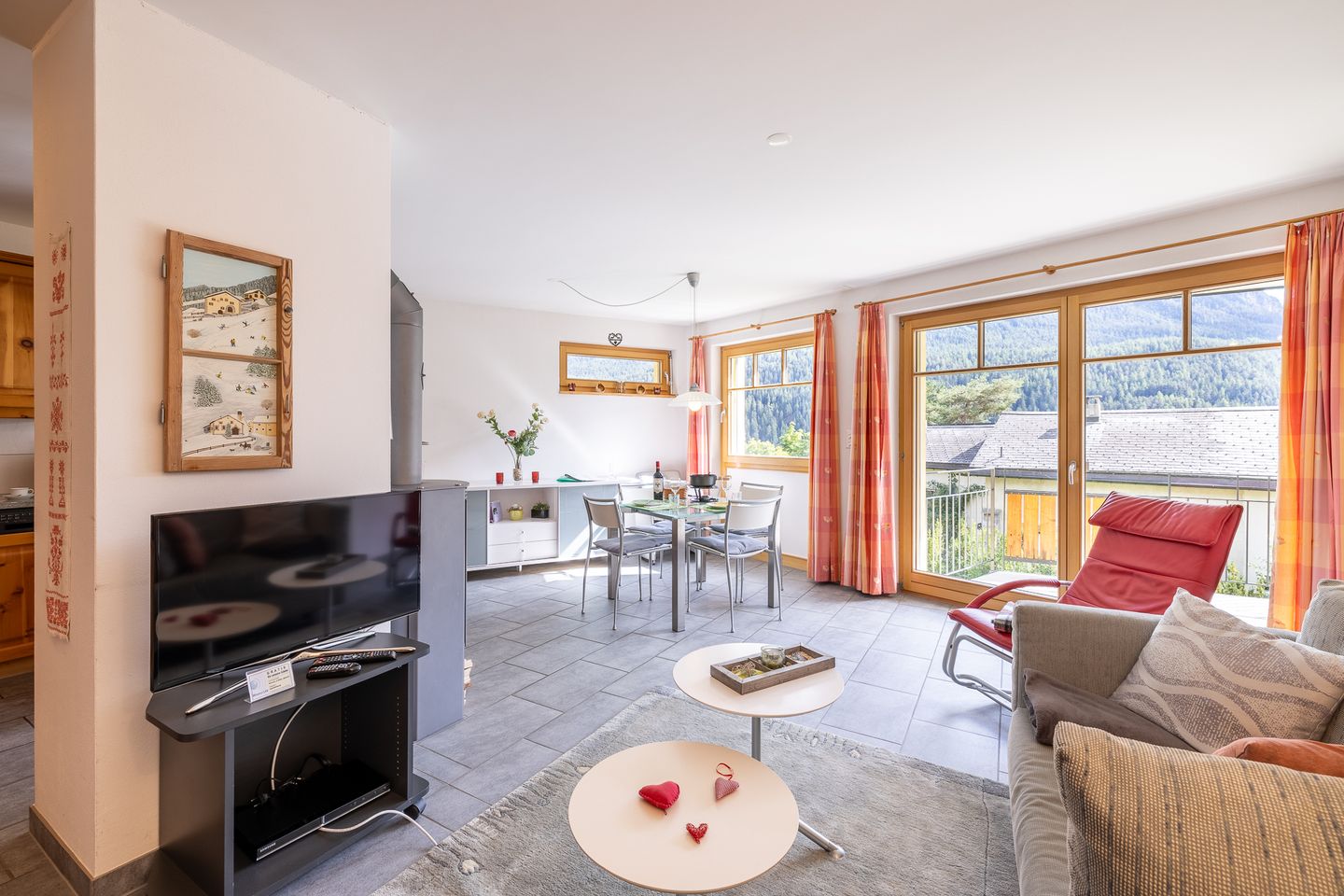 Diese Ferienwohnung ist zentral gelegen. In ca. 10 Gehminuten erreichen Sie Geschäften, Restaurants, sowie das Mineralbad Bogn Engiadina sowie der Ortsbus der Sie direkt ins Skigebiet Motta Naluns bringt.