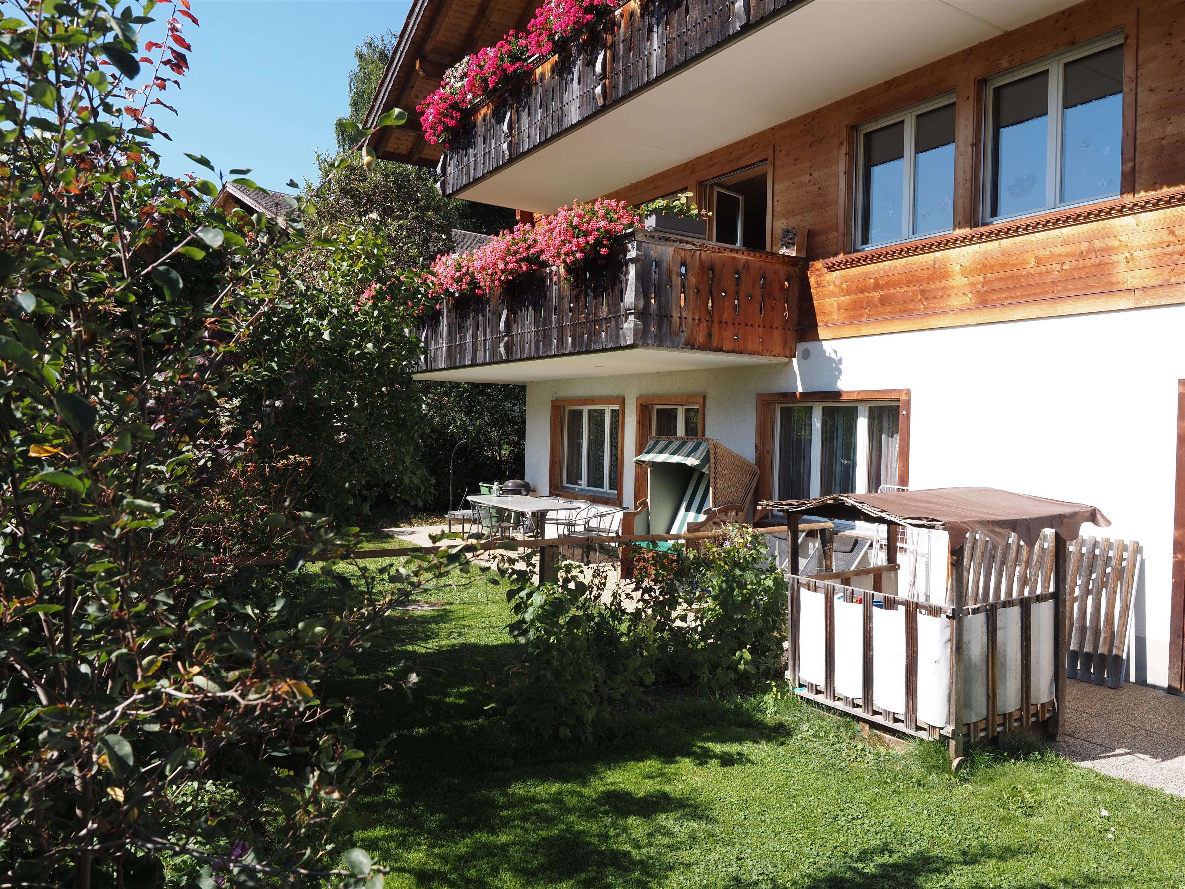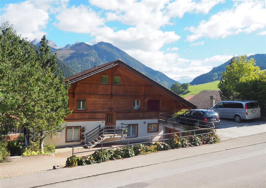 3-Zimmerwohnung (110m2) im Erdgeschoss eines 1995 erbauten Mehrfamilienhauses, leicht erhöht über Zweisimmen. 2009 wurden beide Schlafzimmer und die Wohnküche renoviert. Im Herbst 2011 wurde das Badezimmer komplett erneuert. Der Zugang zum Chalet erfolgt über Treppenstufen. Ausblick auf den Rinderberg vom Gartensitzplatz aus. Sandkasten und Grill vorhanden. Auf Anfrage stehen ein zweiter Parkplatz, eine Waschmaschine und ein Wäschetrockner zur Verfügung. Die Besitzer wohnen im selben Haus. Neben dem Haus fliesst der rauschende Ryschbach durch.