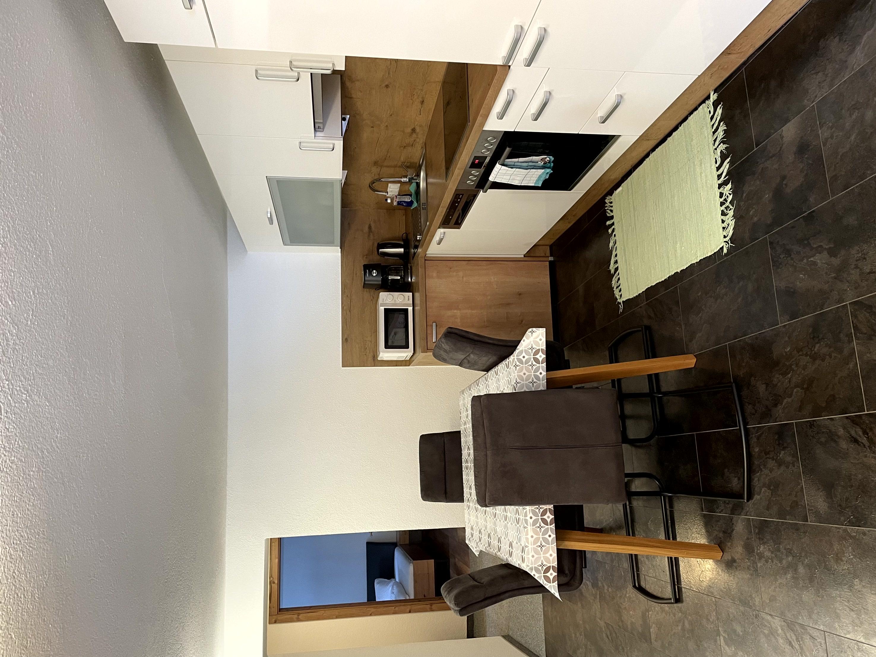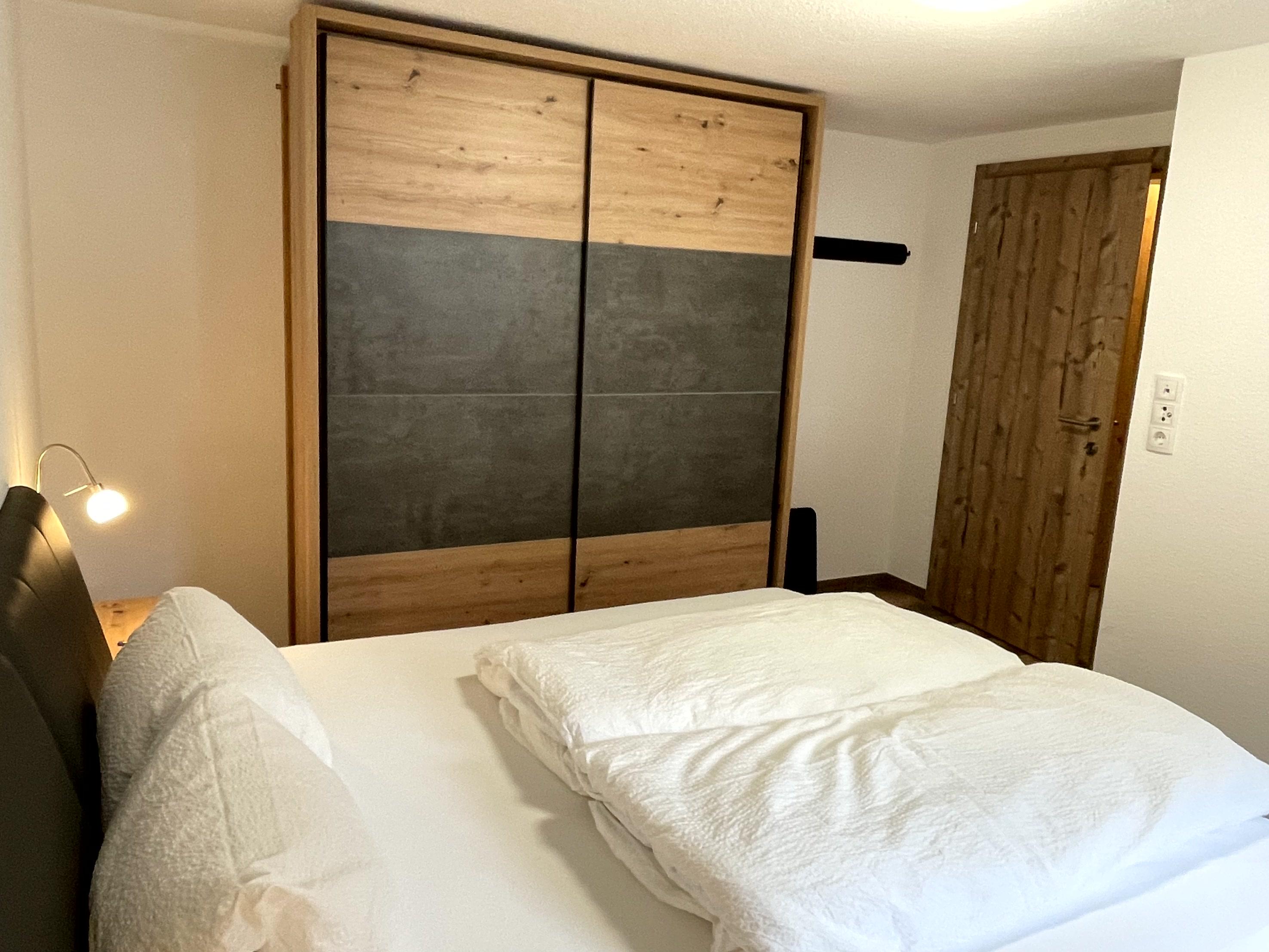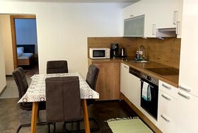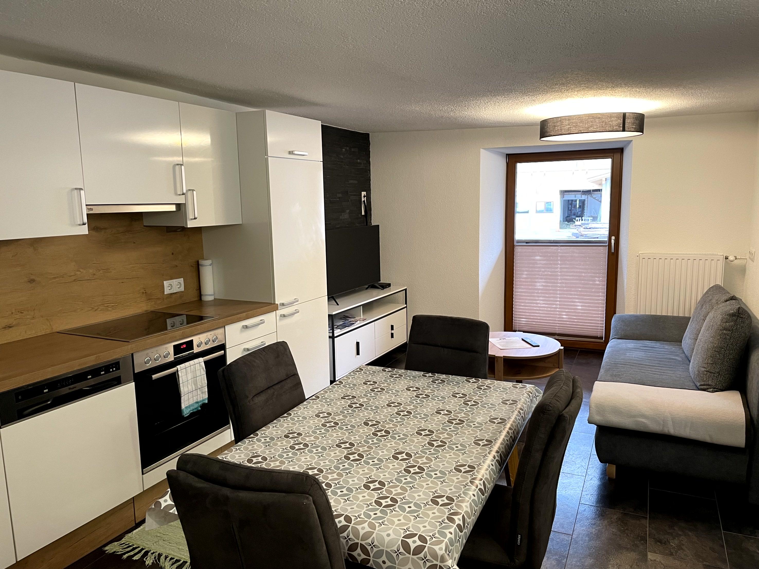 Unser Appartement im 1. Stock mit (ca. 60 m²) ist ausgestattet mit: 1 Doppelzimmer, 1 Zweibettzimmer, Dusche mit Waschbecken und WC, Wohnküche mit Esstisch und Schlafmöglichkeit, Flat-TV, gratis W-Lan, vollausgestattete Küche mit 4 Platten-Keramik-Kochfeld, Backofen, Geschirrspüler, Mikrowelle, Kaffeemaschine und möblierter Balkon mit herrlichem Blick auf die umliegende Bergwelt. Die glasklare Bergluft gibt's gratis dazu... Gegen Aufpreis können Sie sich gerne an unserem Frühstücksbuffet stärken, oder wir besorgen Ihnen gerne täglich frische Brötchen.