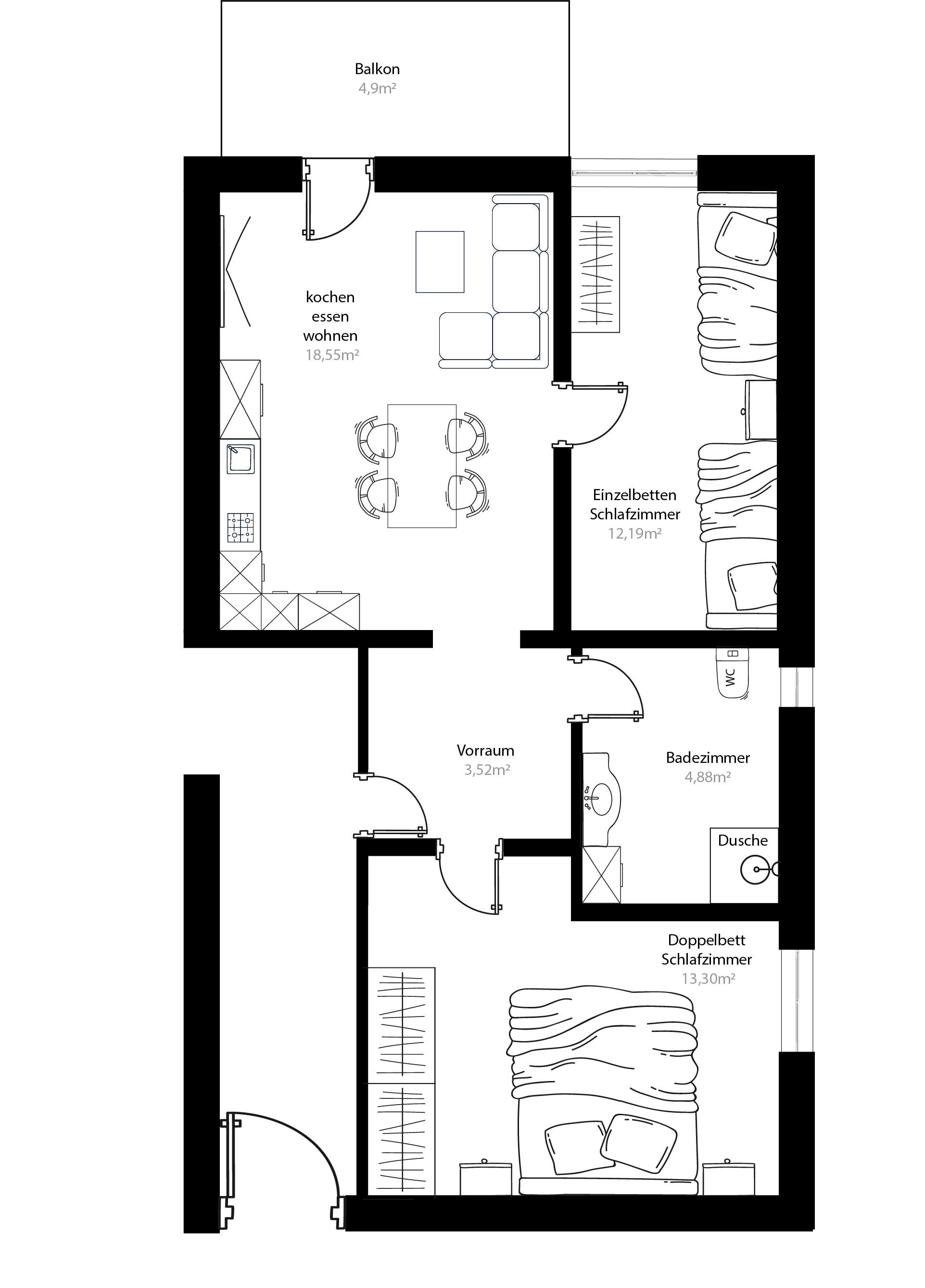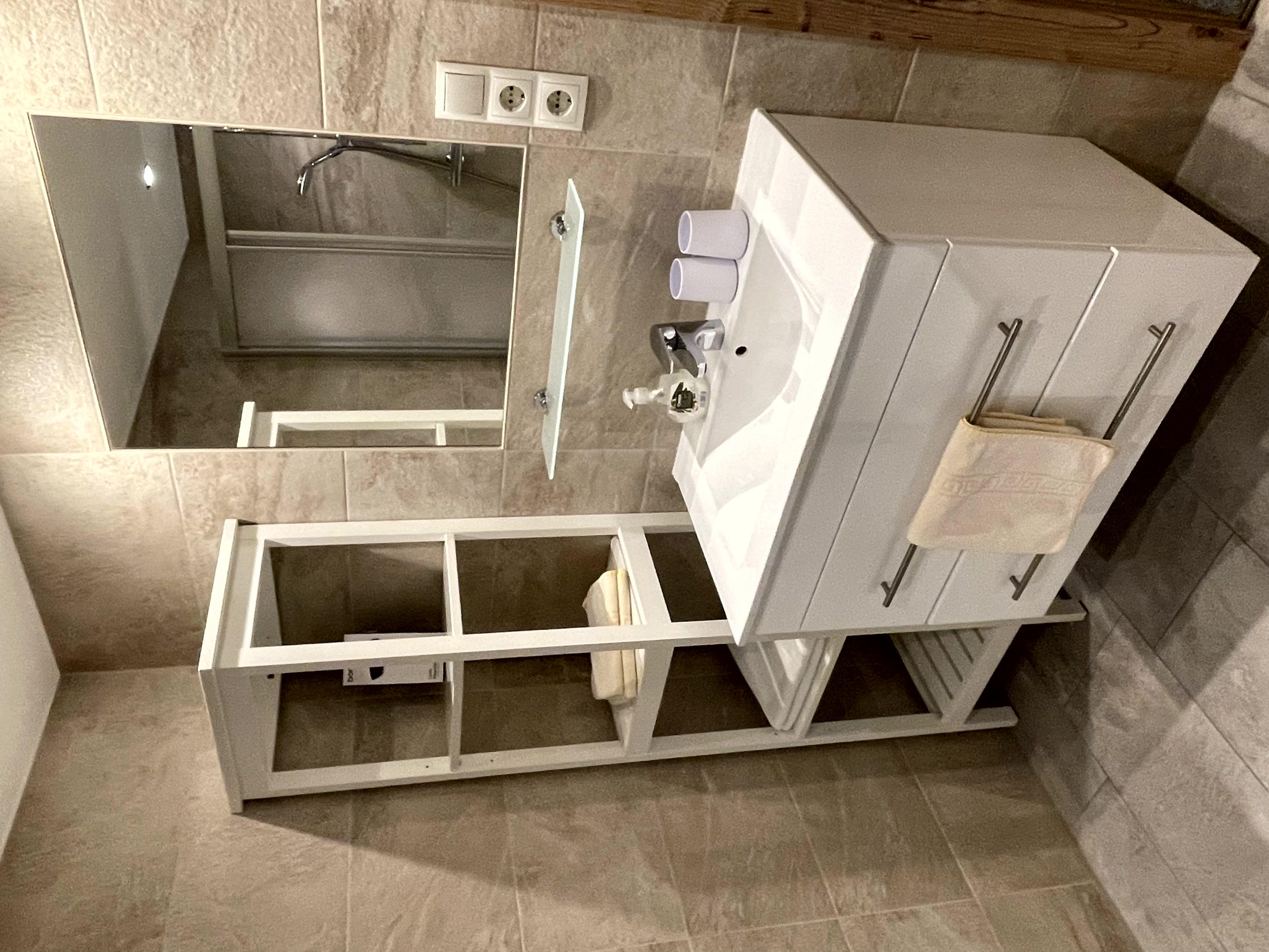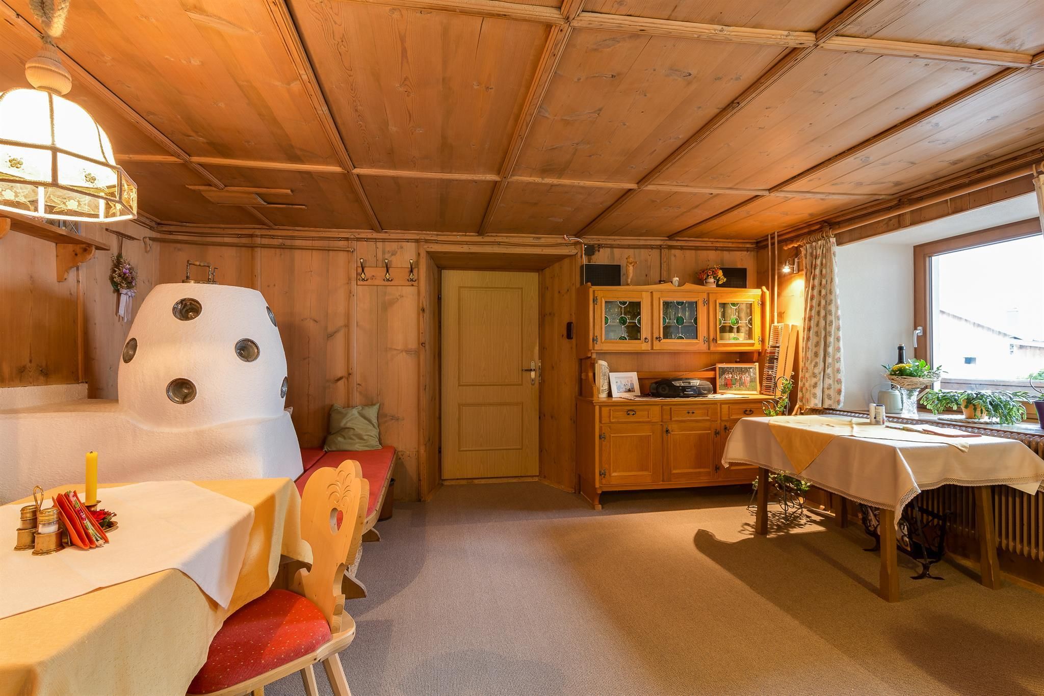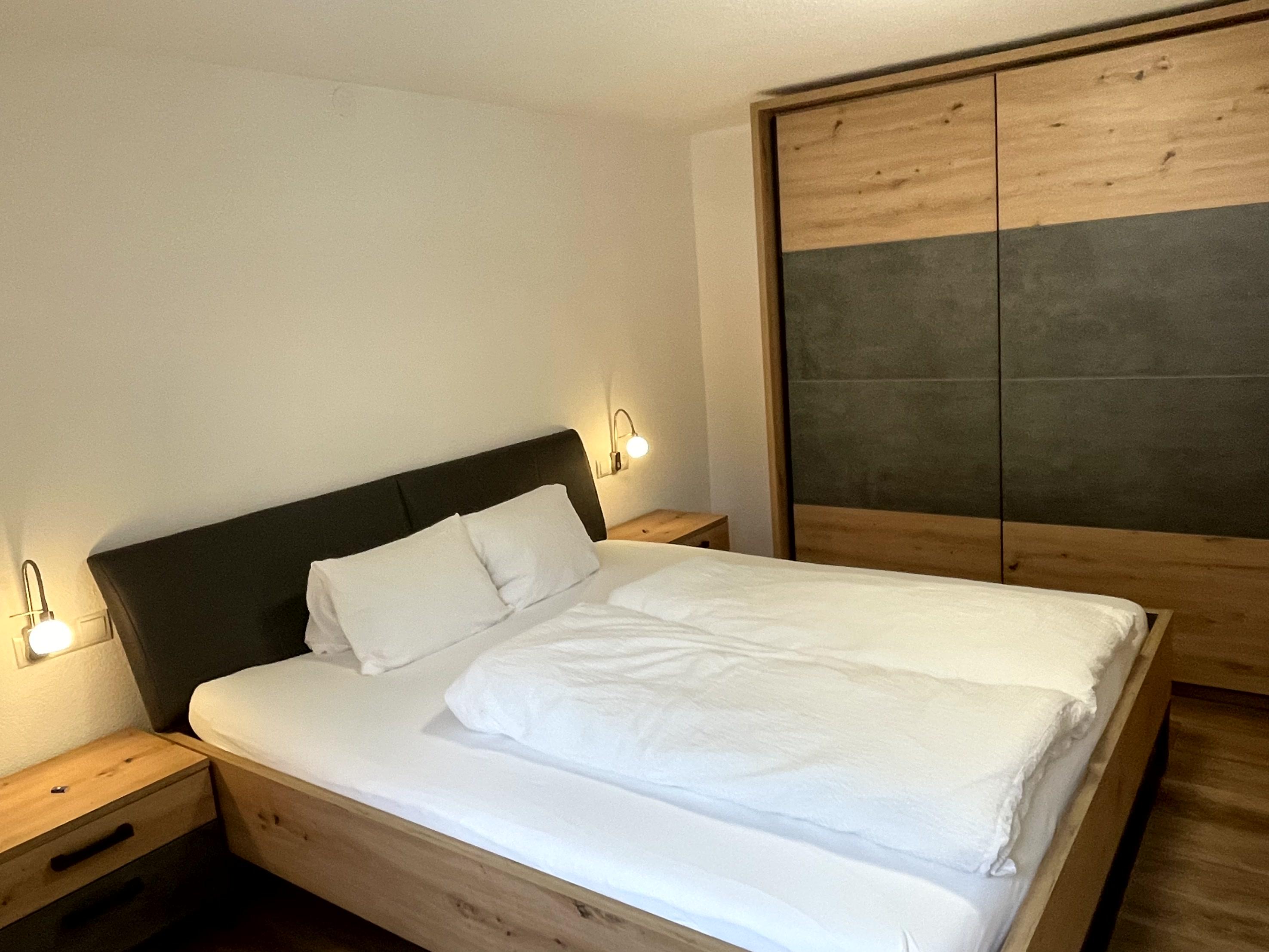 Unser Appartement im 1. Stock mit (ca. 60 m²) ist ausgestattet mit: 1 Doppelzimmer, 1 Zweibettzimmer, Dusche mit Waschbecken und WC, Wohnküche mit Esstisch und Schlafmöglichkeit, Flat-TV, gratis W-Lan, vollausgestattete Küche mit 4 Platten-Keramik-Kochfeld, Backofen, Geschirrspüler, Mikrowelle, Kaffeemaschine und möblierter Balkon mit herrlichem Blick auf die umliegende Bergwelt. Die glasklare Bergluft gibt's gratis dazu... Gegen Aufpreis können Sie sich gerne an unserem Frühstücksbuffet stärken, oder wir besorgen Ihnen gerne täglich frische Brötchen.