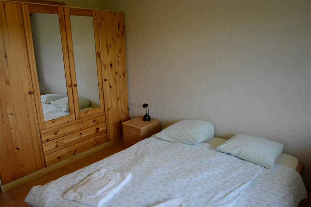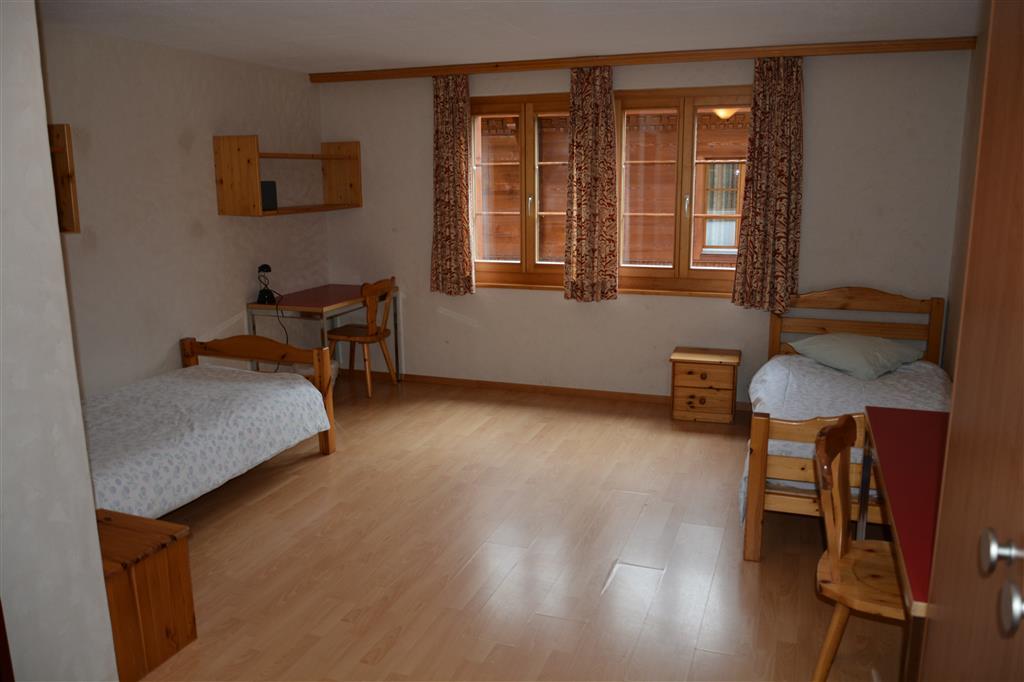 3 Schlafzimmer ausgestattet mit Tisch, Tresor, Kabel-TV/Radio, je 2 Einzelbetten (90x200cm), eigenem Badezimmer mit Dusche/WC. Wohn-/Esszimmer und Küche (u. a. ausgestattet mit Filter-Kaffeemaschine, Fondue- und Raclette-Set) zur gemeinsamen Benutzung. WiFi.