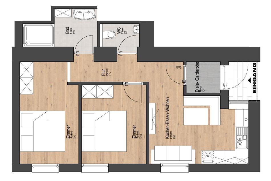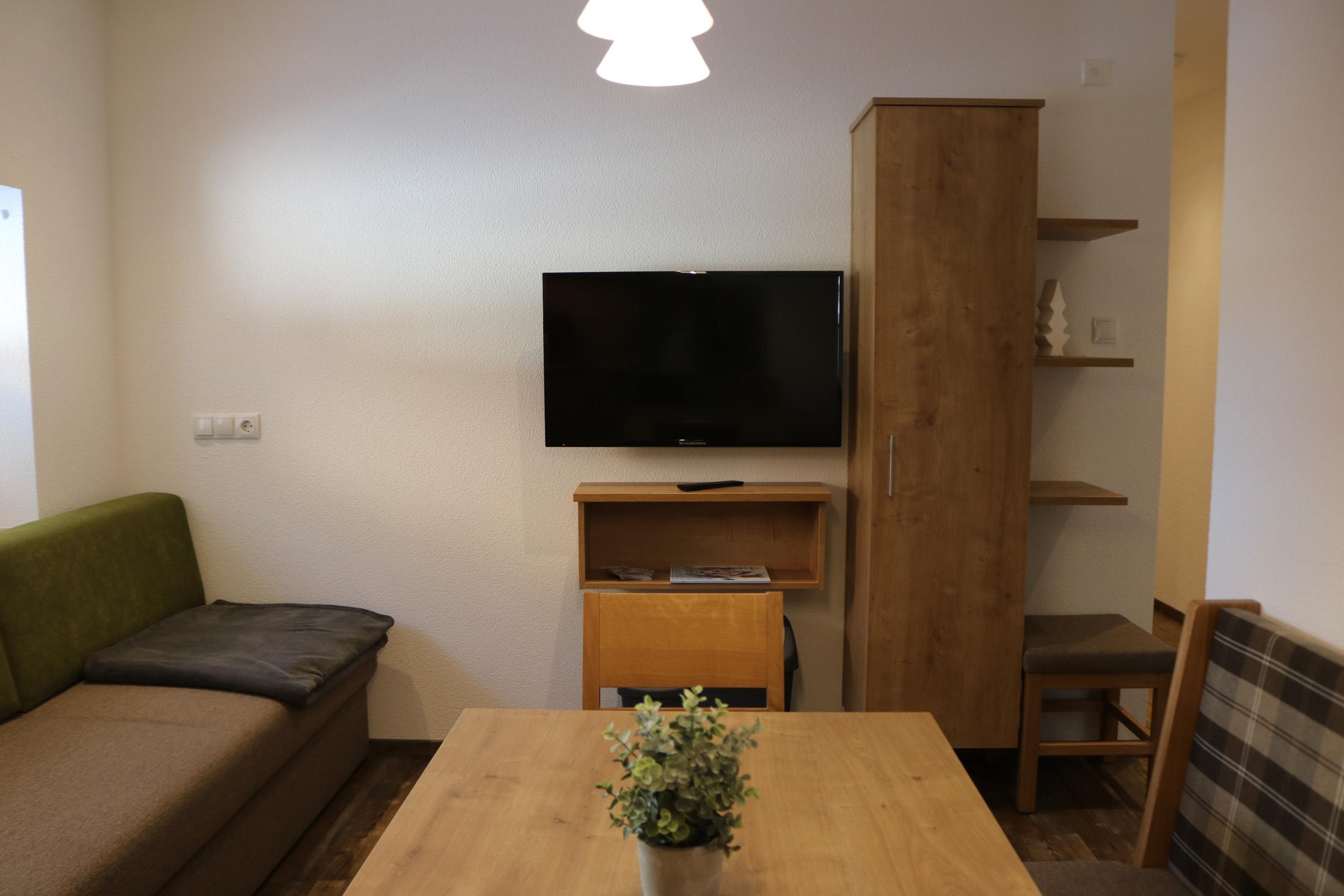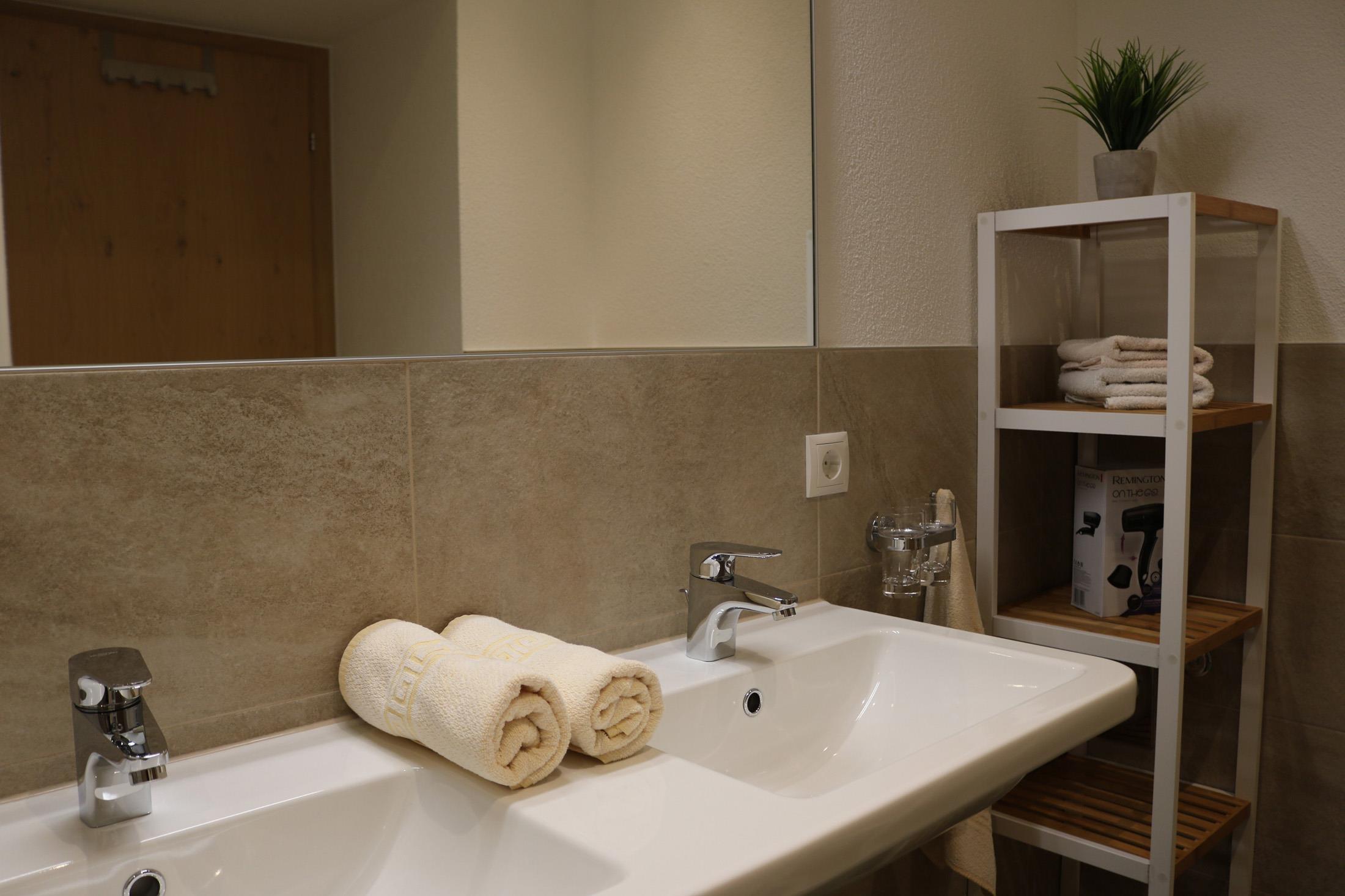 Unsere wunderschöne NEUE ebenerdige Wohneinheit im Nebenhaus mit ca. 60 m² ist großzügig und offen mit viel Holz eingerichtet. Das Appartement besteht aus: 2 Doppelzimmern, Dusche mit Doppelwaschbecken, separates WC, Wohnküche mit Essecke, Schlafcouch, Flat-TV und vollausgestattete Küche mit 4 Platten-Keramik-Kochfeld, Backofen, Geschirrspüler, Mikrowelle, Kaffemaschine. Gerne können Sie den möblierten Gemeinschaftsgarten im Haupthaus mitnutzen. Gegen Aufpreis können Sie sich gerne an unserem Frühstücksbuffet stärken, oder wir besorgen Ihnen gerne täglich frische Brötchen.