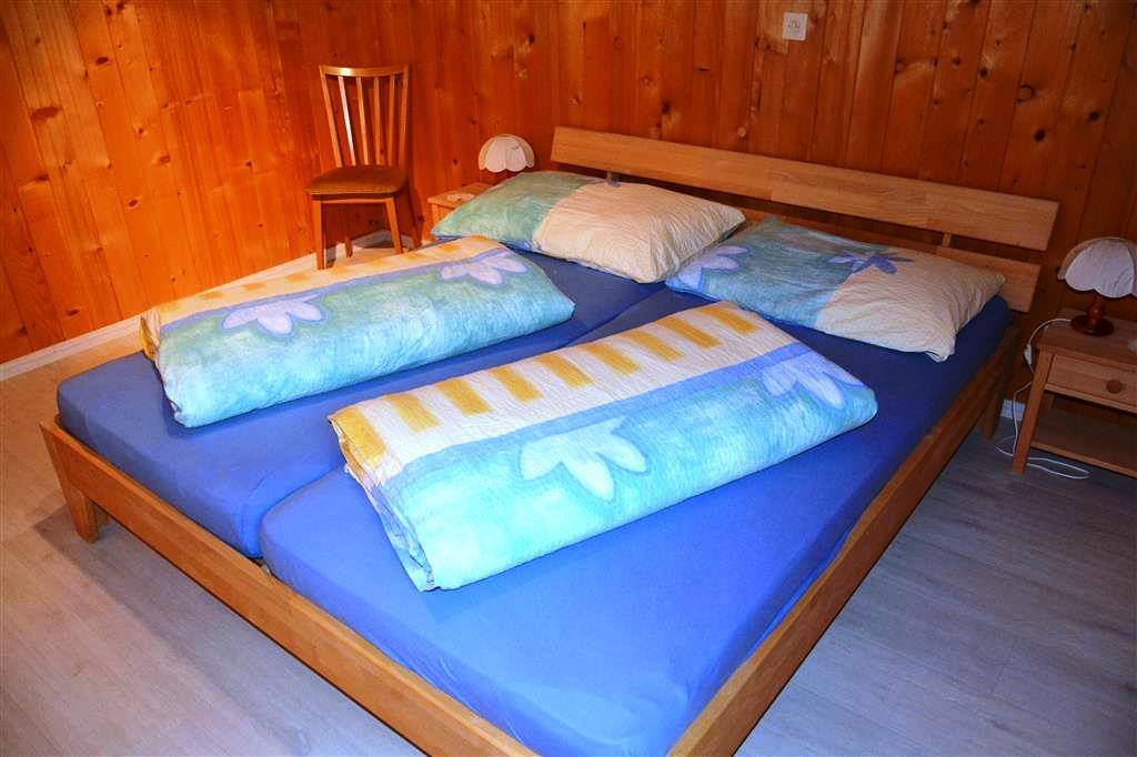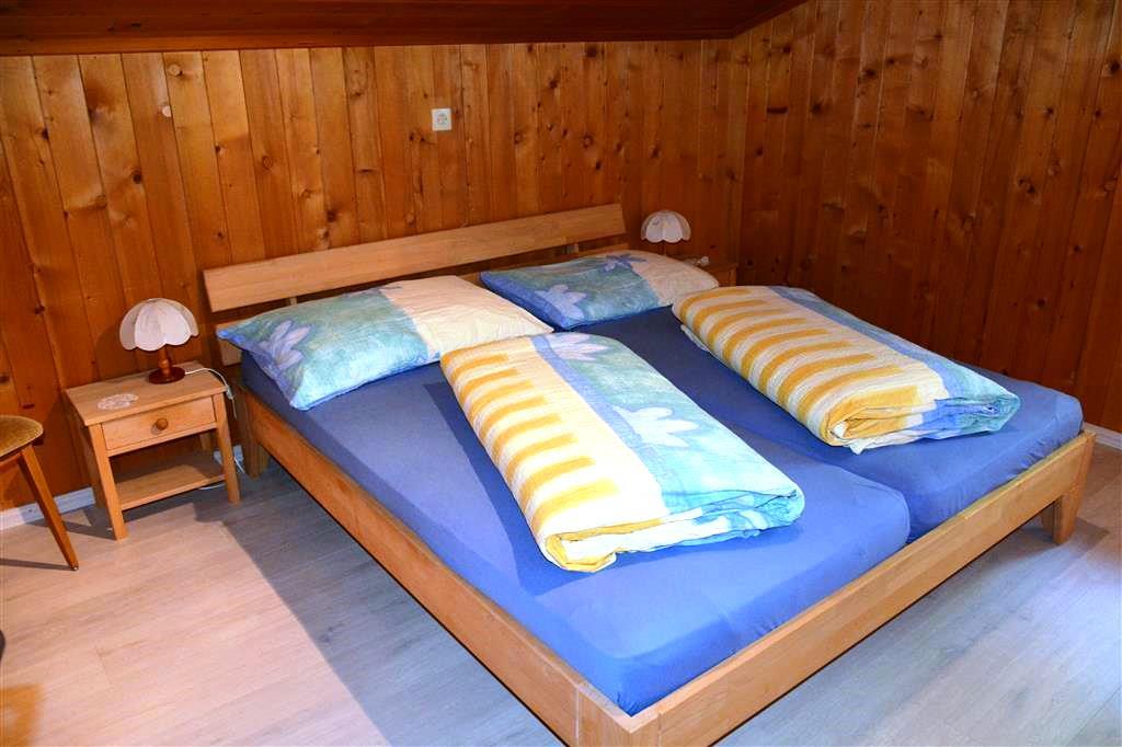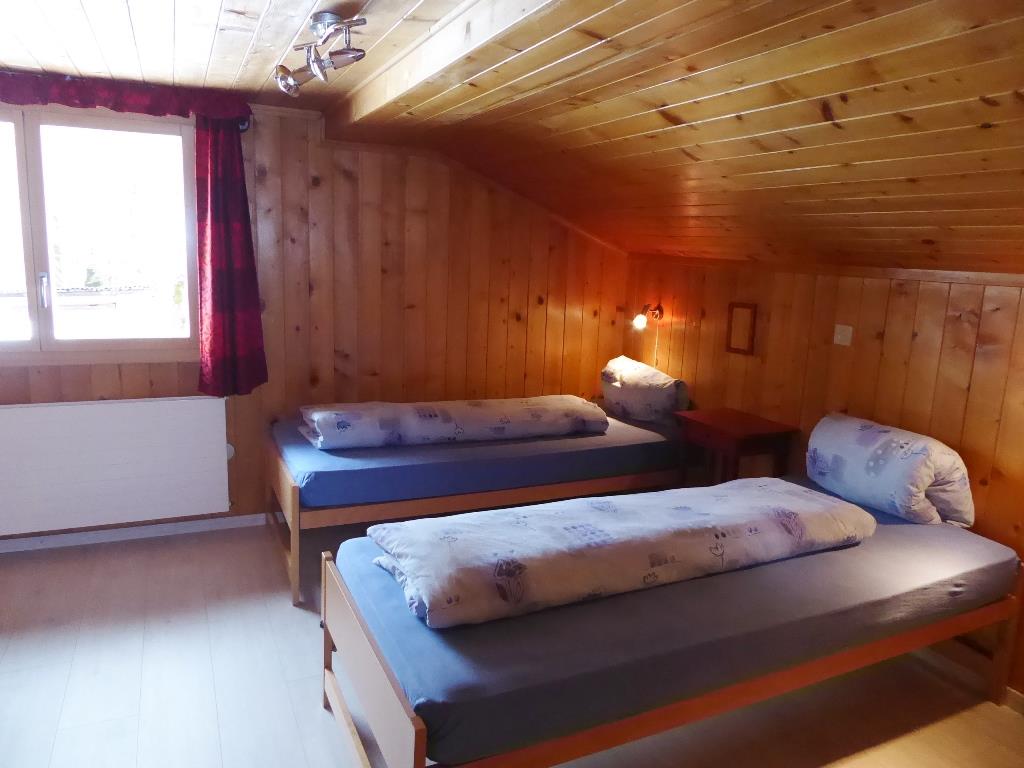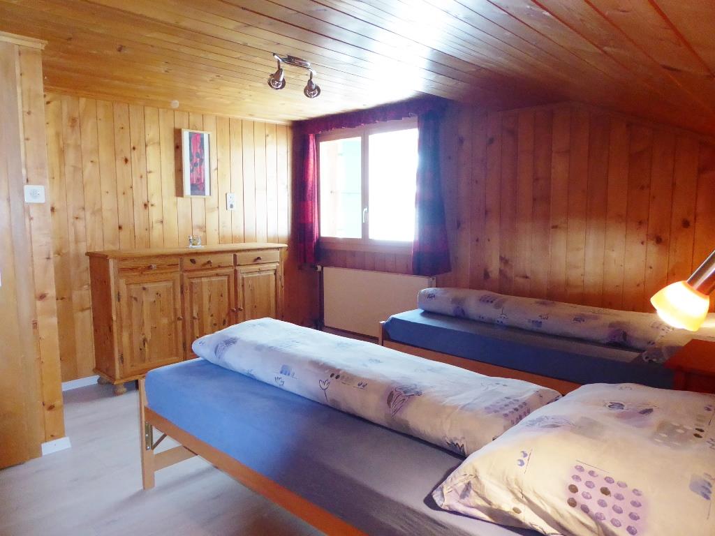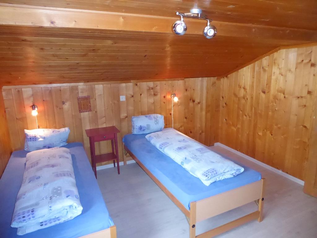 Gemütliche 4 1/2-Zimmer-Dachwohnung mit teilweiser Dachschräge. Raumhöhe 2.00 Meter ausserhalb Dachschräge. 1 Schlafzimmer mit Doppelbett (2x90x200cm) und Kleiderschrank. 1 Schlafzimmer mit zwei Einzelbetten (90x200cm), offene Garderobe und Kommode. 1 kleines Zimmer mit 1 Bett (90x190cm) und Kommode. Bad/WC. Separate Küche u.a. ausgestattet mit Backofen, Geschirrspüler, Kapsel-Kaffeemaschine (Delizio), Fondue- und Raclette-Set. Wohnzimmer mit Esstisch, Sofa, TV/Radio und DVD Blu-ray. WiFi.