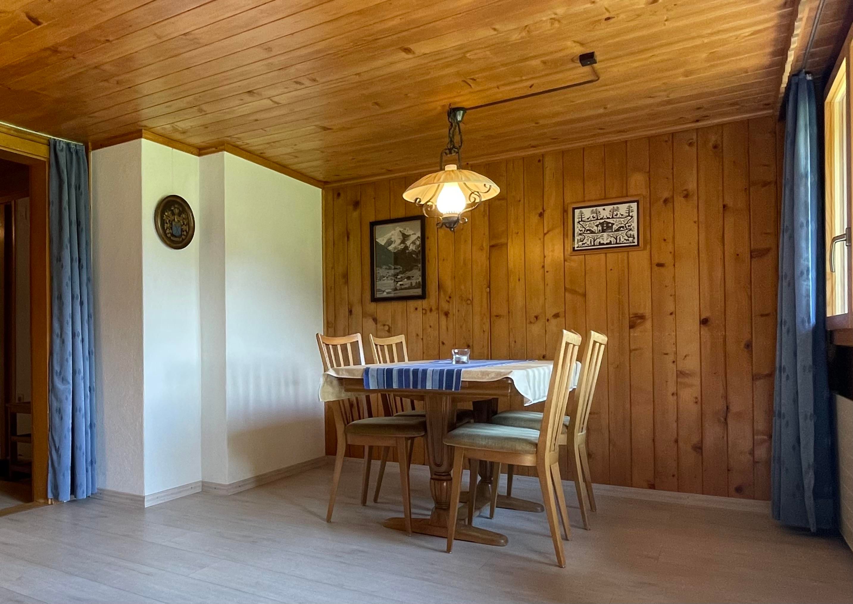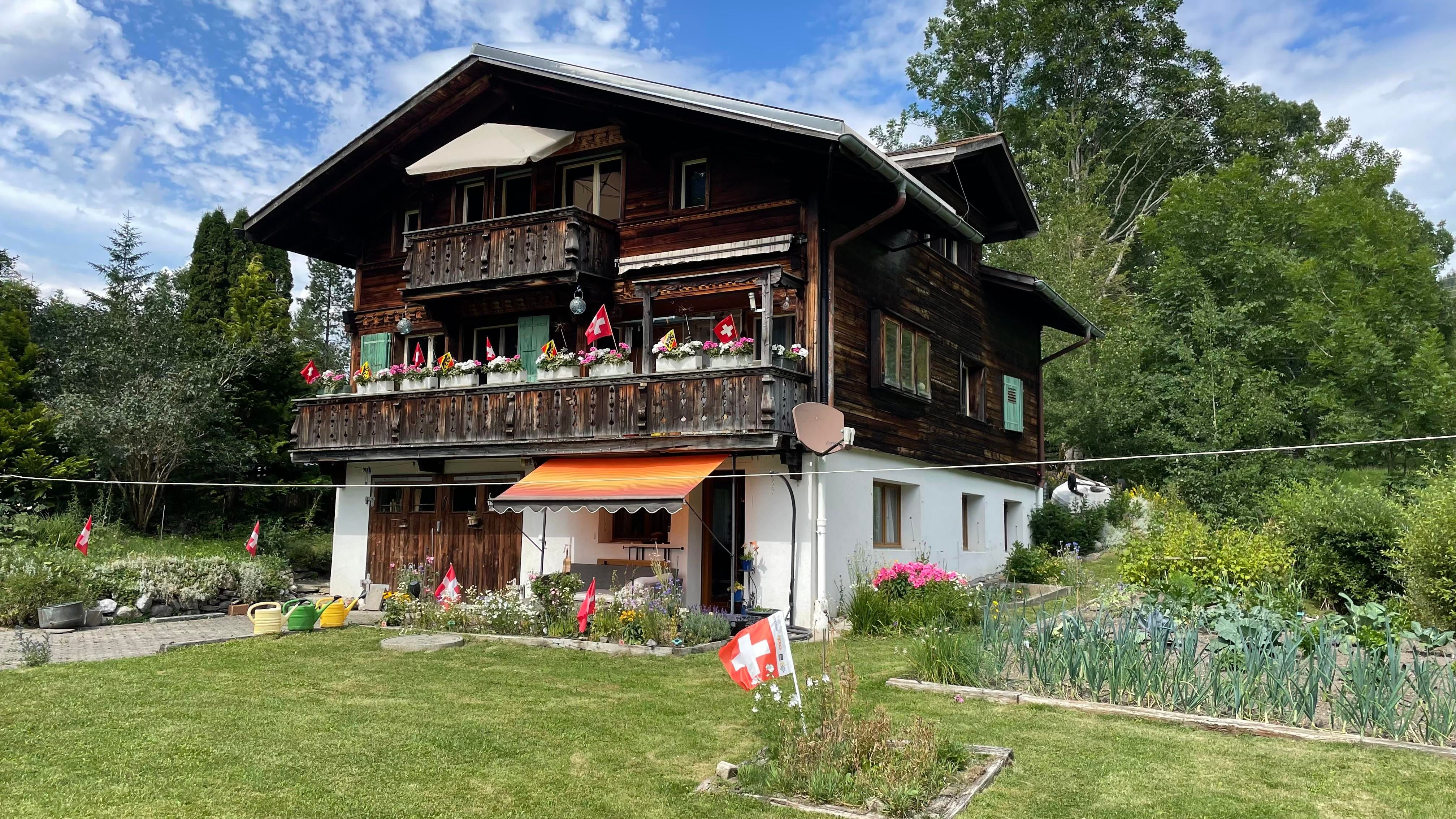 Gemütliche 4 1/2-Zimmer-Dachwohnung mit teilweiser Dachschräge (80m2) in einem Zweifamilien-Chalet. Sehr ruhig und sonnig gelegen mit beeindruckender Aussicht auf die Bergwelt und das Dorf. Idealer Ausgangspunkt zum Wandern. Einkaufsmöglichkeit im Dorf vorhanden. Balkon und Garten mit grossem Umschwung.