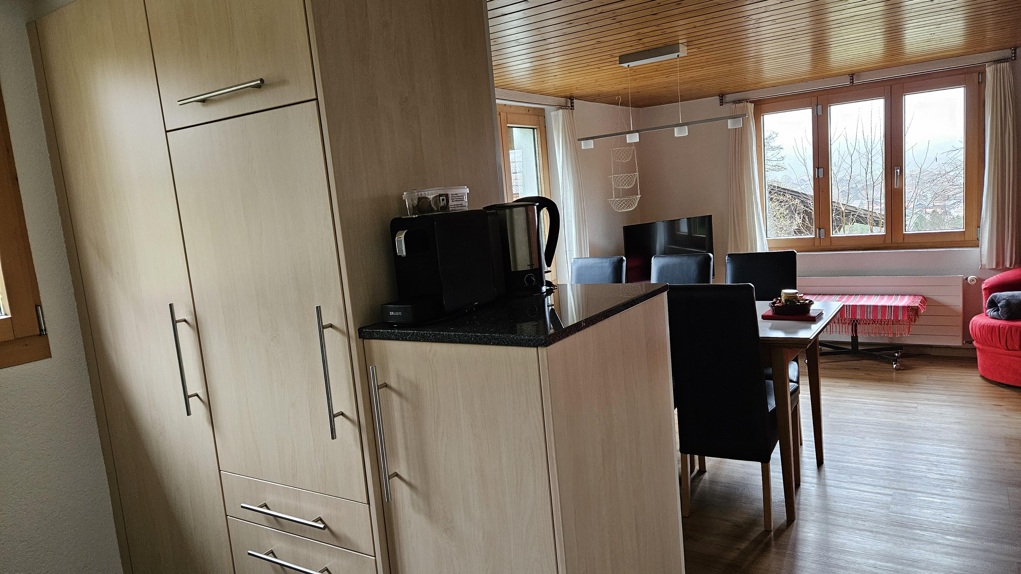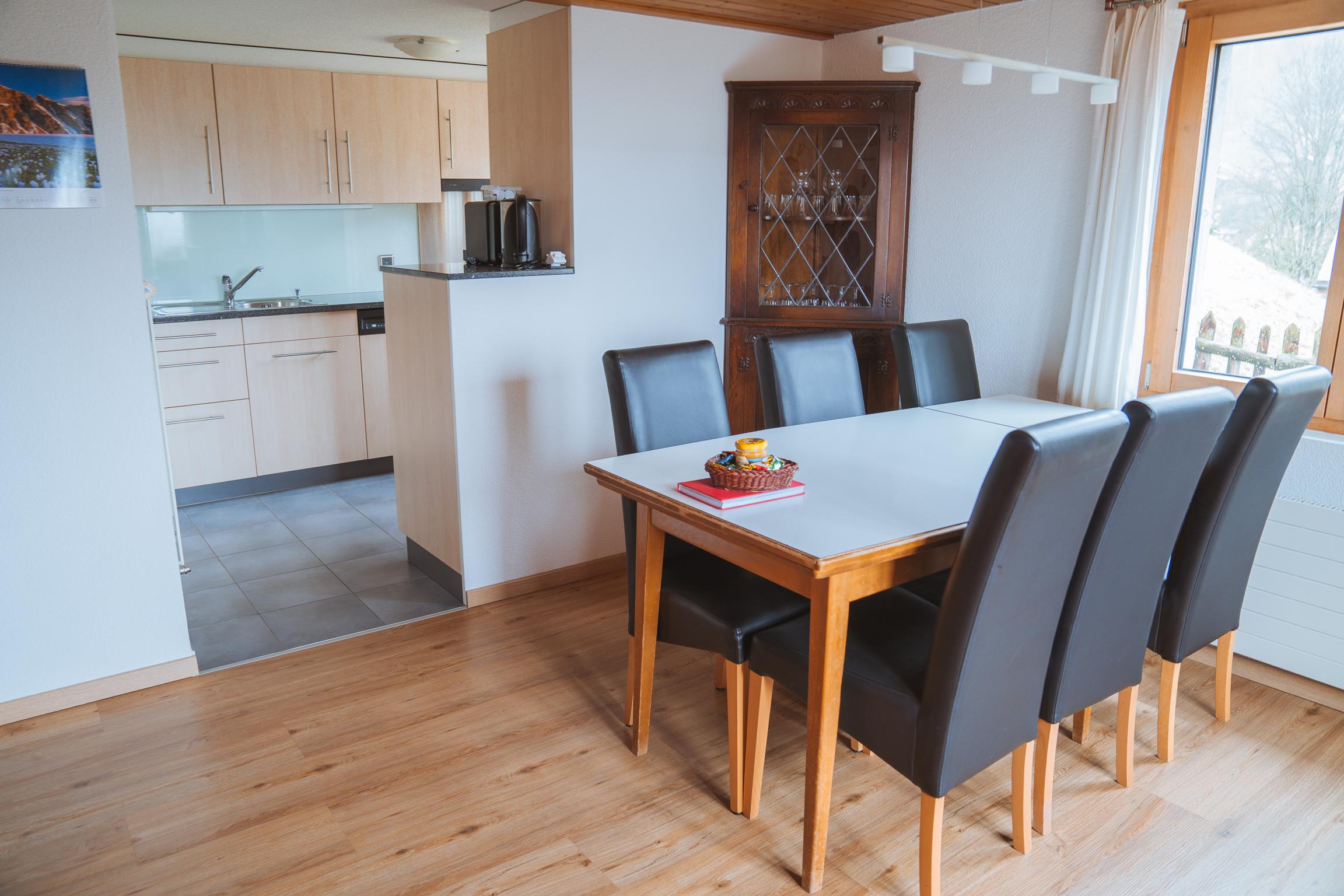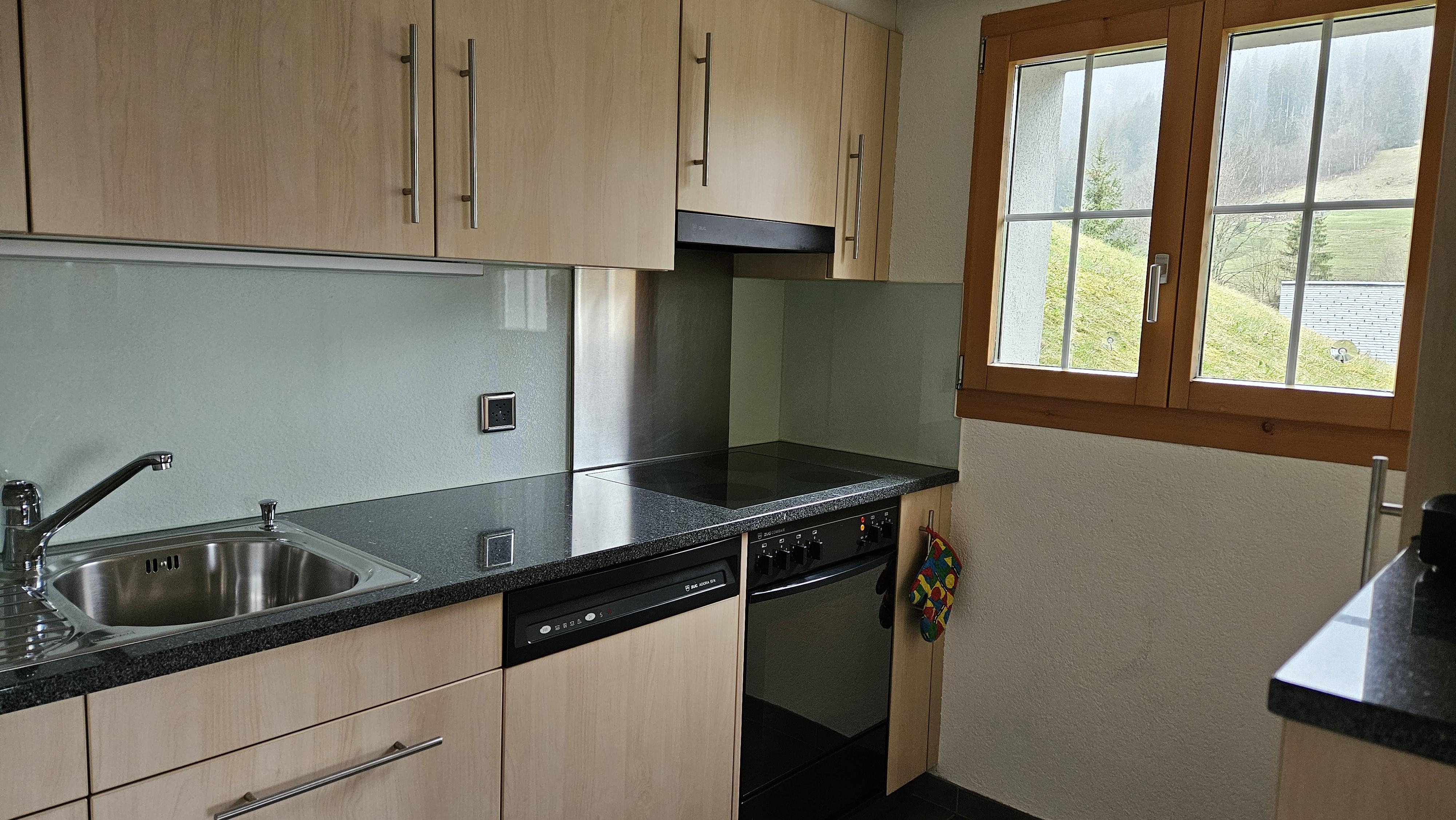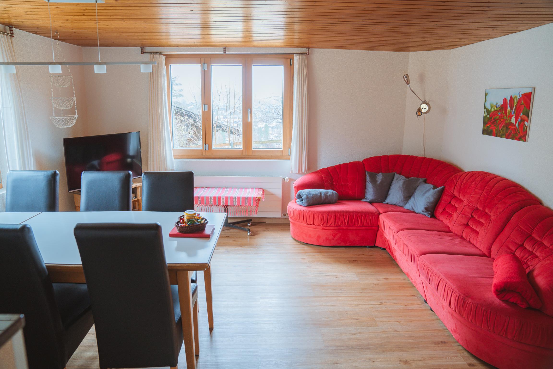 4-Zimmerwohnung (70m2) im Tiefparterre eines 1970 erbauten 2-Familienhauses. Ruhige Lage mit schöner Aussicht. Nahe Tennisplatz, Wald, Wanderwegen, Schwimmbad und Skipiste Rinderberg. Waschmaschine und Trockner in der Liegenschaft zur gemeinschaftlichen Nutzung vorhanden. Aussensitzplatz und Liegewiese vorhanden. 700m bis ins Dorfzentrum. 2 ungedeckte Parkplätze stehen zur Verfügung.