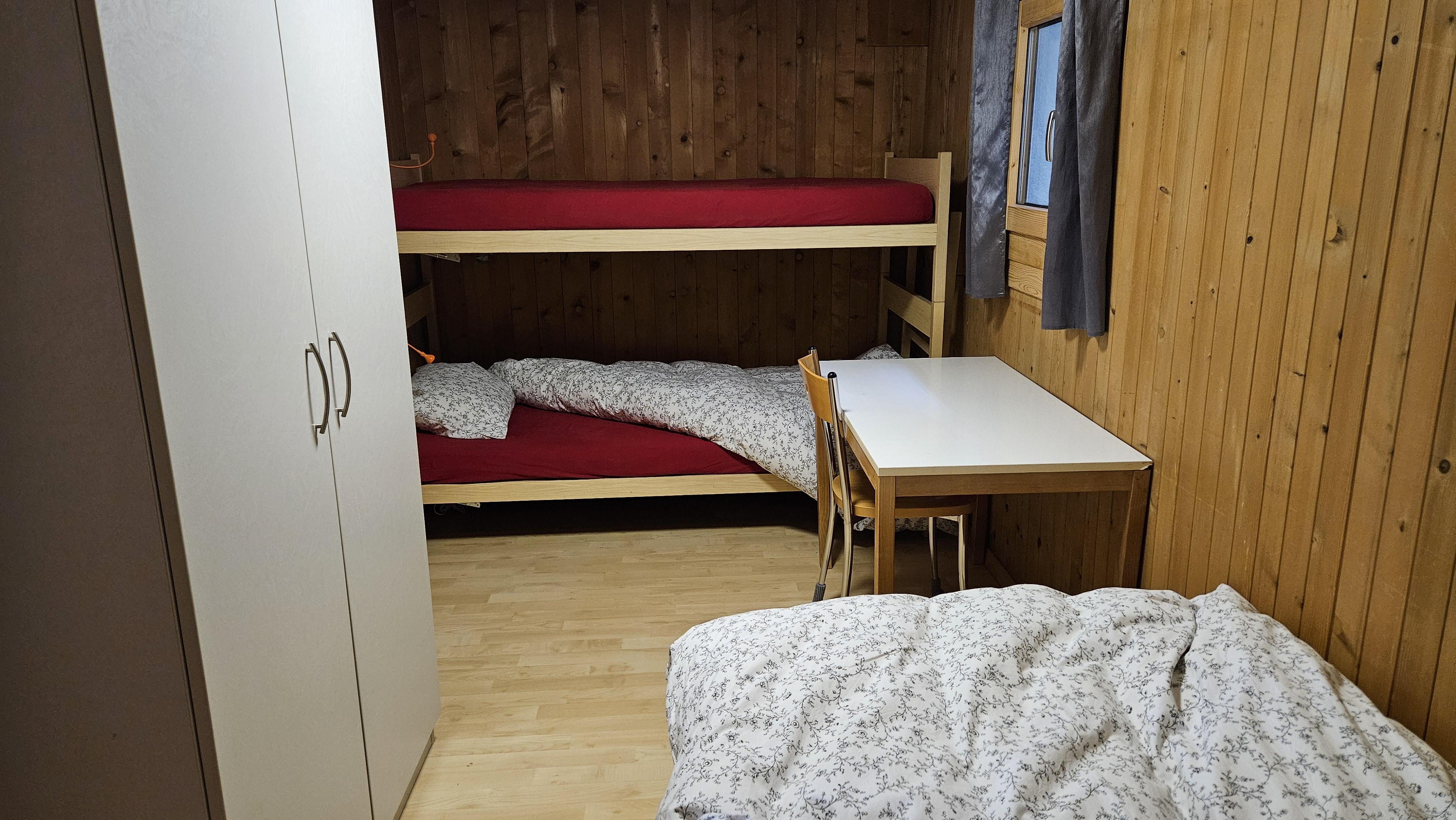 Wohn-/Esszimmer, Küche (u. a. ausgestattet mit Filterkaffeemaschine, Toaster, Fondue- und Raclette-Set), Bad, Heizungsraum mit WC und Lavabo. Radio/Satelliten-TV/Video/DVD-Gerät sowie WiFi. Grill im Garten. 1 Doppelschlafzimmer mit 2 Betten (2x90x200cm) mit Schrank, 1 Doppelschlafzimmer mit 2 Betten (2x80x200cm) mit Schrank und 1 Schlafzimmer mit 1 Etagenbett (je 90x190cm) und 1 Einzelbett (90x190cm) mit Schrank. Kinderbett (70x120cm) inkl. Bettwäsche und Kinderhochstuhl vorhanden. Nichtraucher-Wohnung!