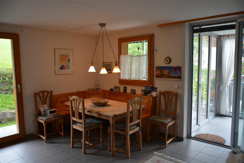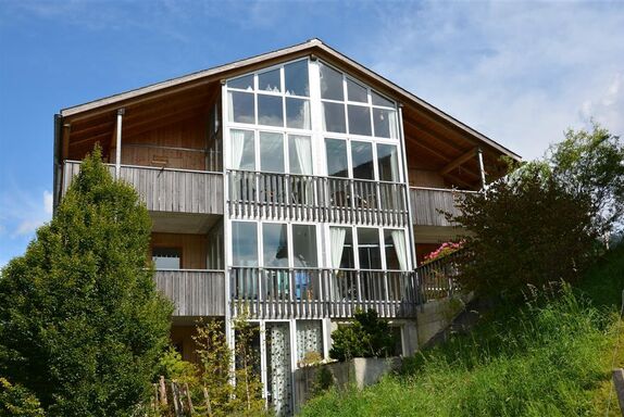 3-Zimmer-Wohnung (54m2) im 1. Stock eines Minergiehauses, nahe der Skipiste am Rinderberg. Ruhig und sonnig gelegen mit schöner Aussicht. Mit Wintergarten und 2 Sitzplätzen. Parkplatz in Einstellhalle. Idealer Ausgangspunkt zum Wandern.