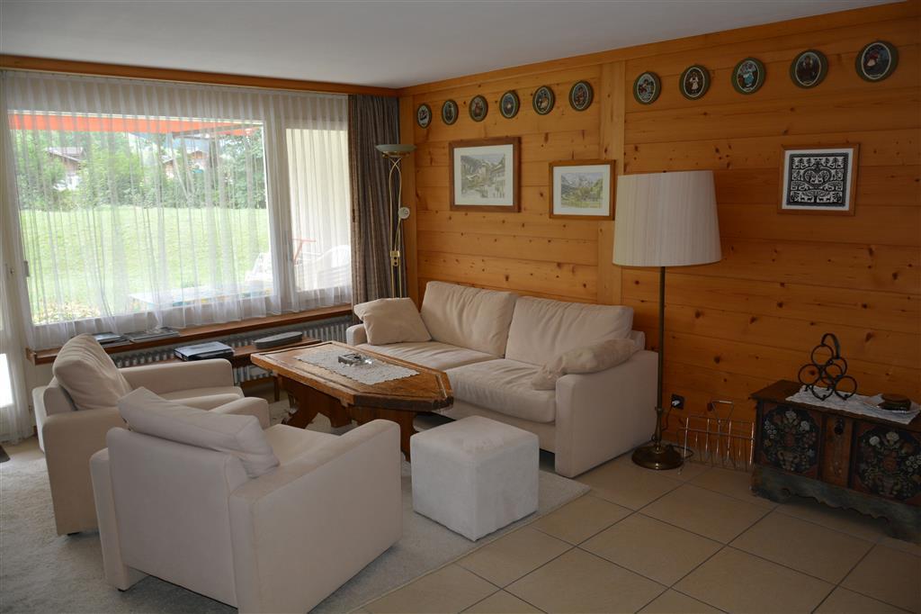 2-Zimmerwohnung (67m2) im Erdgeschoss eines Appartementhauses in Gstaad. Waschküche mit Waschmaschine und Wäschetrockner stehen im Untergeschoss zur gemeinschaftlichen Benutzung zur Verfügung. Ruhige und sonnige Lage in unmittelbarer Nähe der Eggli-Gondelbahn. Ca. 10 Gehminuten vom autofreien Dorfzentrum entfernt. Skibus (im Winter) vor dem Haus.