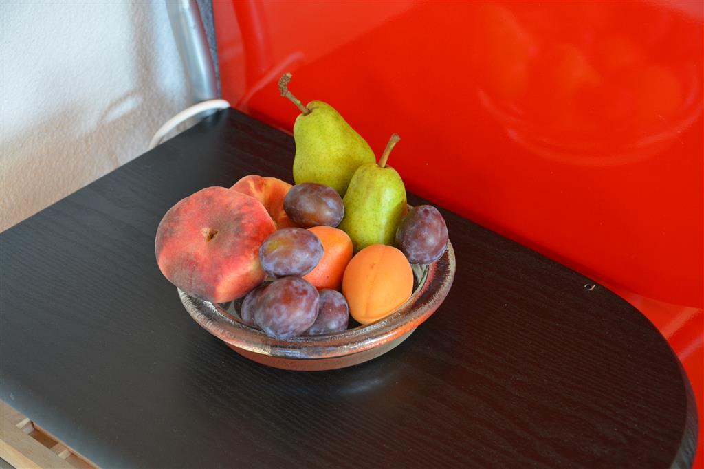 1 Doppelbett (160x200cm) mit höhenverstallbarem Kopfteil, mit Vorhang abgetrennt von Wohn-/Esszimmer. Wohn- und Essecke: Esstisch, ausziehbares Sofa (140x200 cm), Salontisch, Satelliten-TV, DVD-Player, CD-Player (mit Radio) und WiFi.