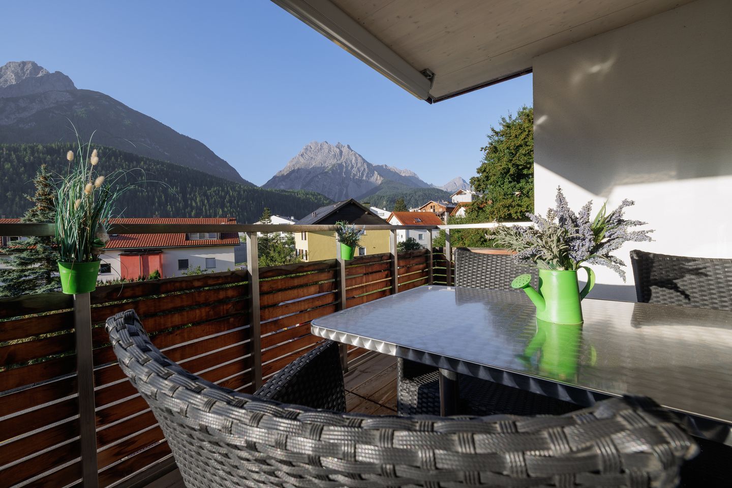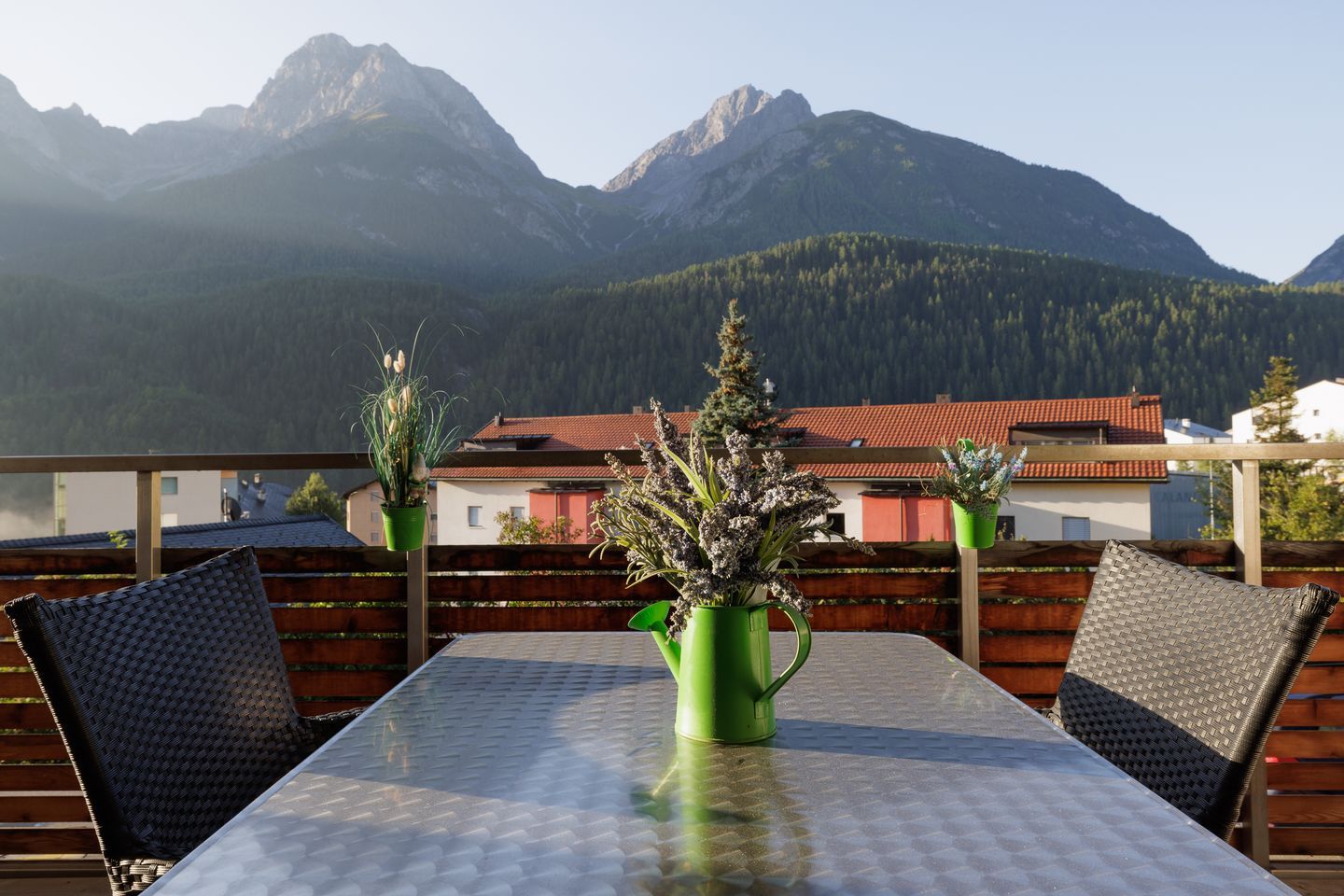 Hier erwartet Sie eine geschmackvoll und moderne Ferienwohnung an sehr ruhiger und sonniger Wohnlage am östlichen Dorfrand von Scuol.