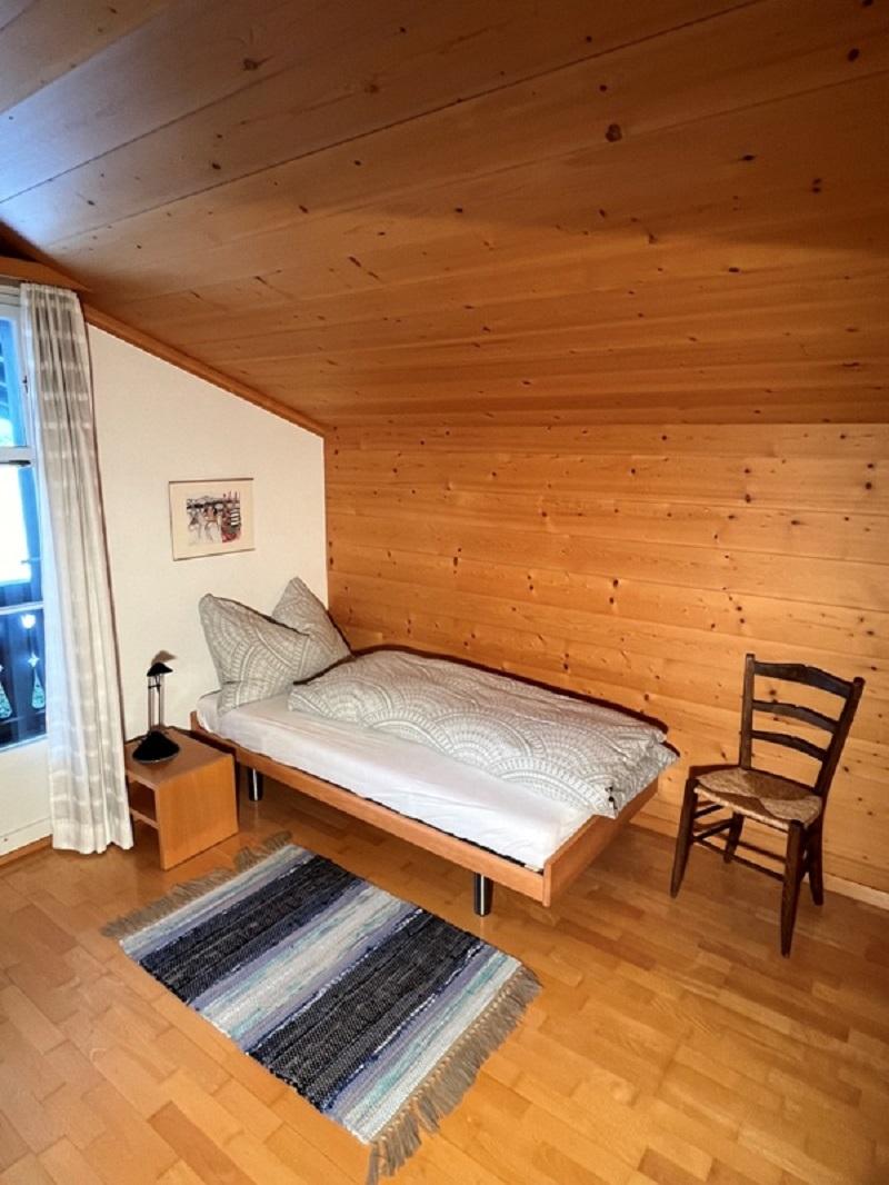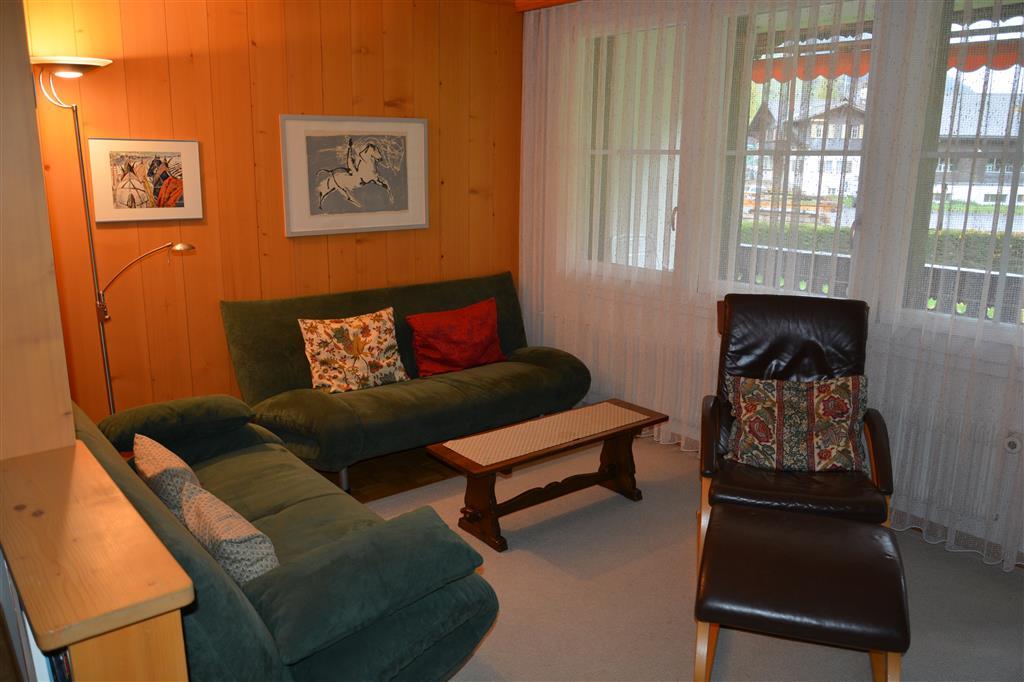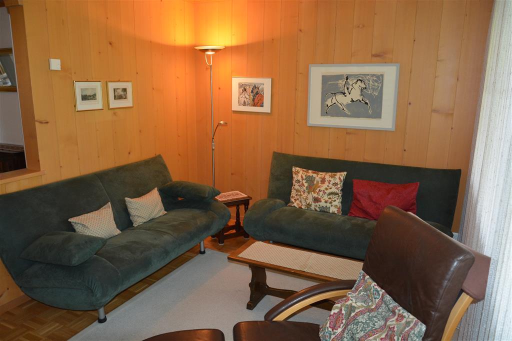 4-Zimmerwohnung (99m2 auf 3 Etagen) in einem Mehrfamilienhaus. Direkt an den Ski- und Langlaufpisten. Balkon, Gartensitzplatz und Liegewiese. Sonnige Lage, ca. 10 Gehminuten bis ins autofreie Ortszentrum. Idealer Ausgangspunkt zum Wandern im Sommer und Winter. Waschmaschine und Wäschetrockner stehen zur gemeinschaftlichen Benutzung im Chalet der Hausverwaltung zur Verfügung.