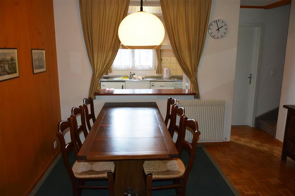 1. Stock: Wohn-/Esszimmer mit TV (Kabel)/Telefon/Radio und WiFi. Küche u.a. ausgestattet mit Geschirrspüler, Kapsel-Kaffeemaschine (Nespresso) sowie Fondue- und Raclette-Set. Separates WC.