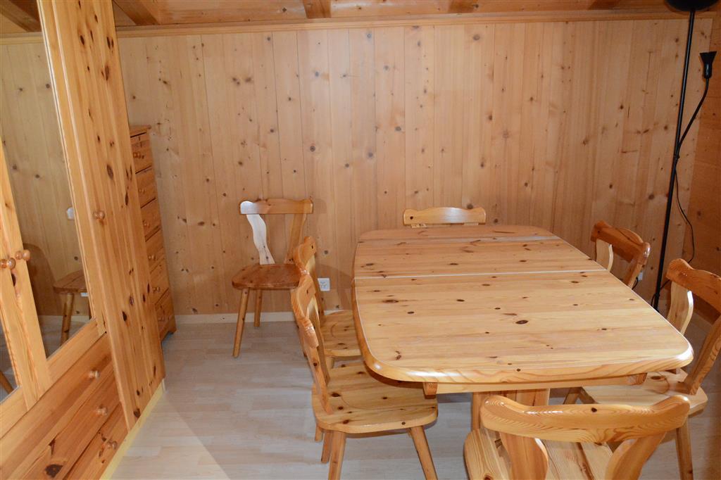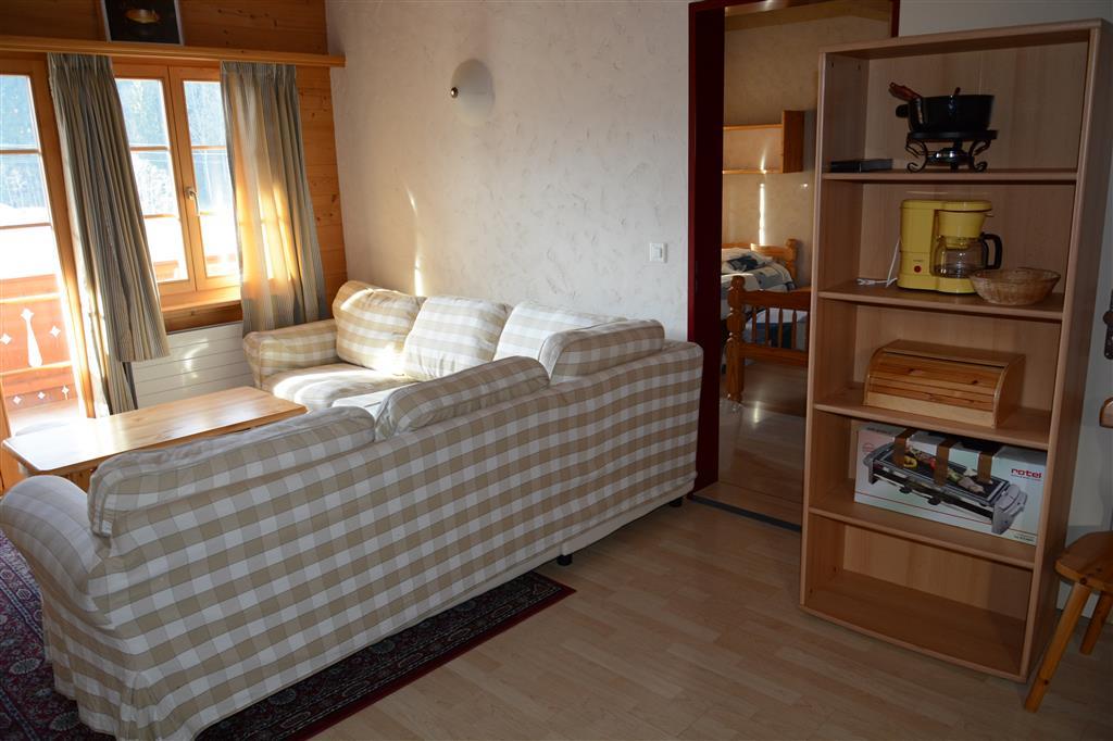 1 grosses Zimmer mit Wohnecke, Kabel-TV/Radio. Offene Küche mit Geschirrspüler, Filter-Kaffeemaschine, Fondue- und Raclette-Set. Separates Esszimmer, Badezimmer. 1 Schlafzimmer mit 1 Einzelbett (90x190cm) unten und 2 Einzelbetten (90x190cm) auf der Galerie, 2 Schlafzimmer mit je 2 Betten (90x190cm), separates Badezimmer mit Dusche/WC in jedem Zimmer. Die einzelnen Zimmer sind durch einen Korridor verbunden. Balkon (Südseite). WiFi.