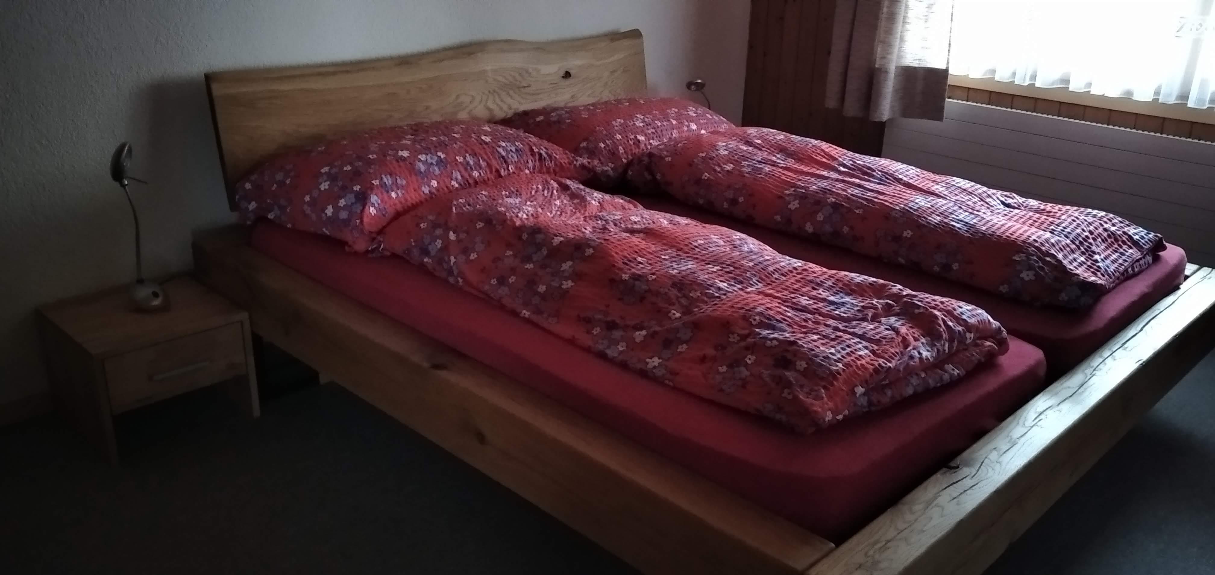 3-Zimmerwohnung im Parterre (55m2). An ruhiger Lage am Ortsrand, in der Nähe der Bushaltestelle. 2 Schlafzimmer, 4 Betten. Dusche/WC. Küche. Radio, TV, Gratis-WLAN, Zentralheizung. Sitzplatz mit Grill, Parkplatz. Haustiere nicht erlaubt. Nichtraucherwohnung.