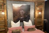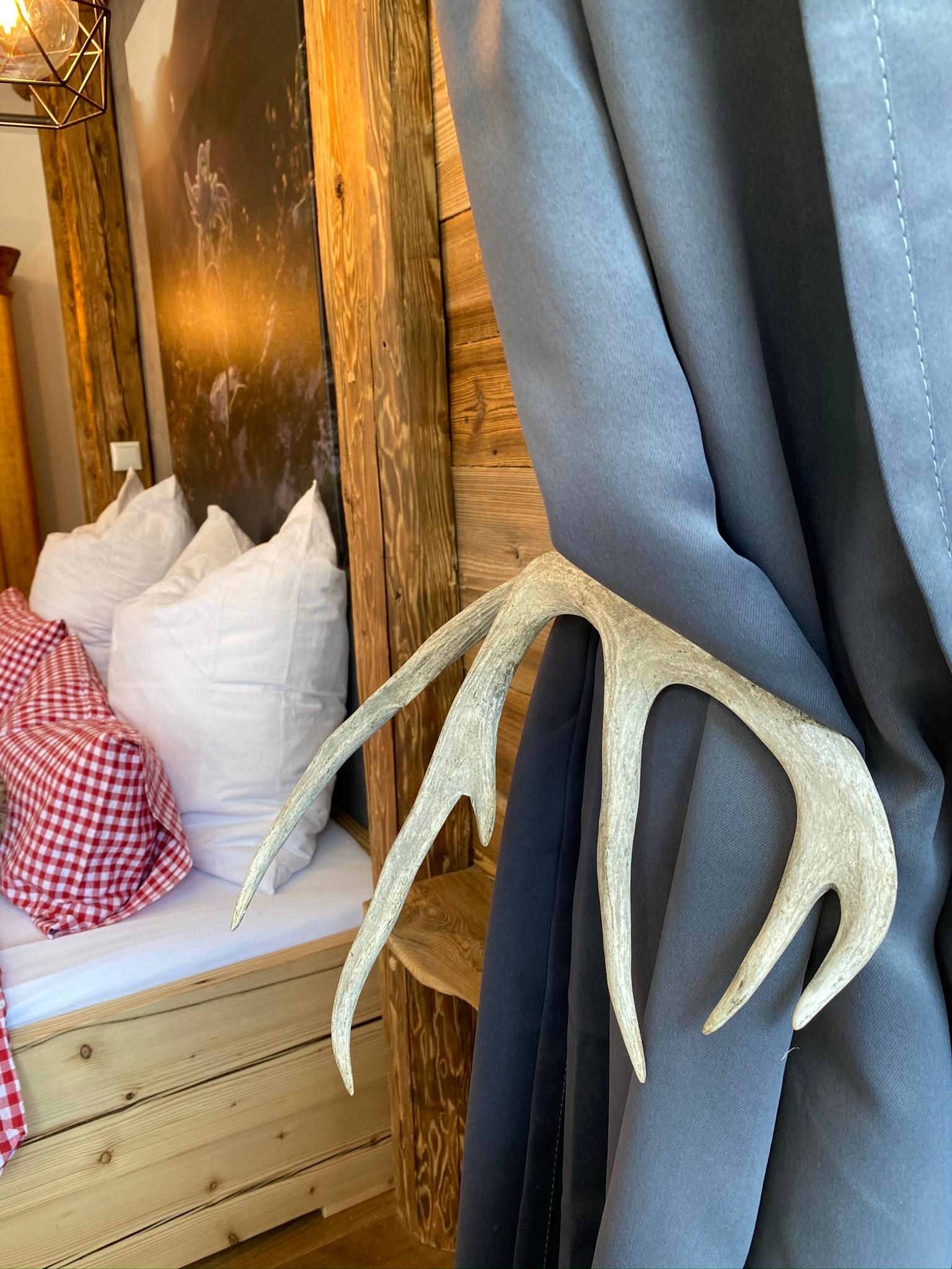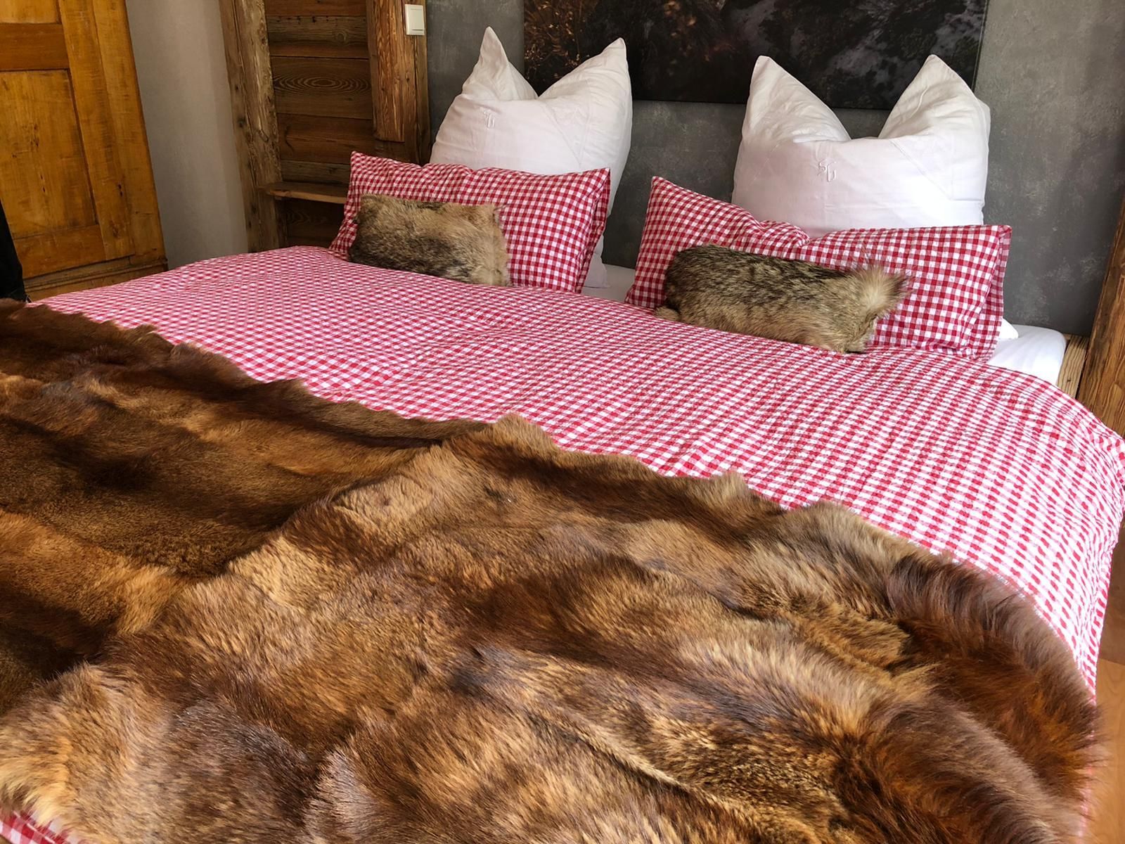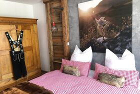 Im Schlafzimmer erwarten euch warmes Licht, ein aus Altholz gezimmertes großes Bett (200x180) mit getrennt verstellbaren Lattenrosten, beste Matratzen sowie übergroße Bettdecken (220x155) mit Bezügen, die zum Träumen und Kuscheln einladen. Am Morgen erwacht ihr mit einem tollen Blick durch das große Fenster auf das Immenstädter Horn, mal von der Sonne angeschienen, mal im Frühnebel versteckt.