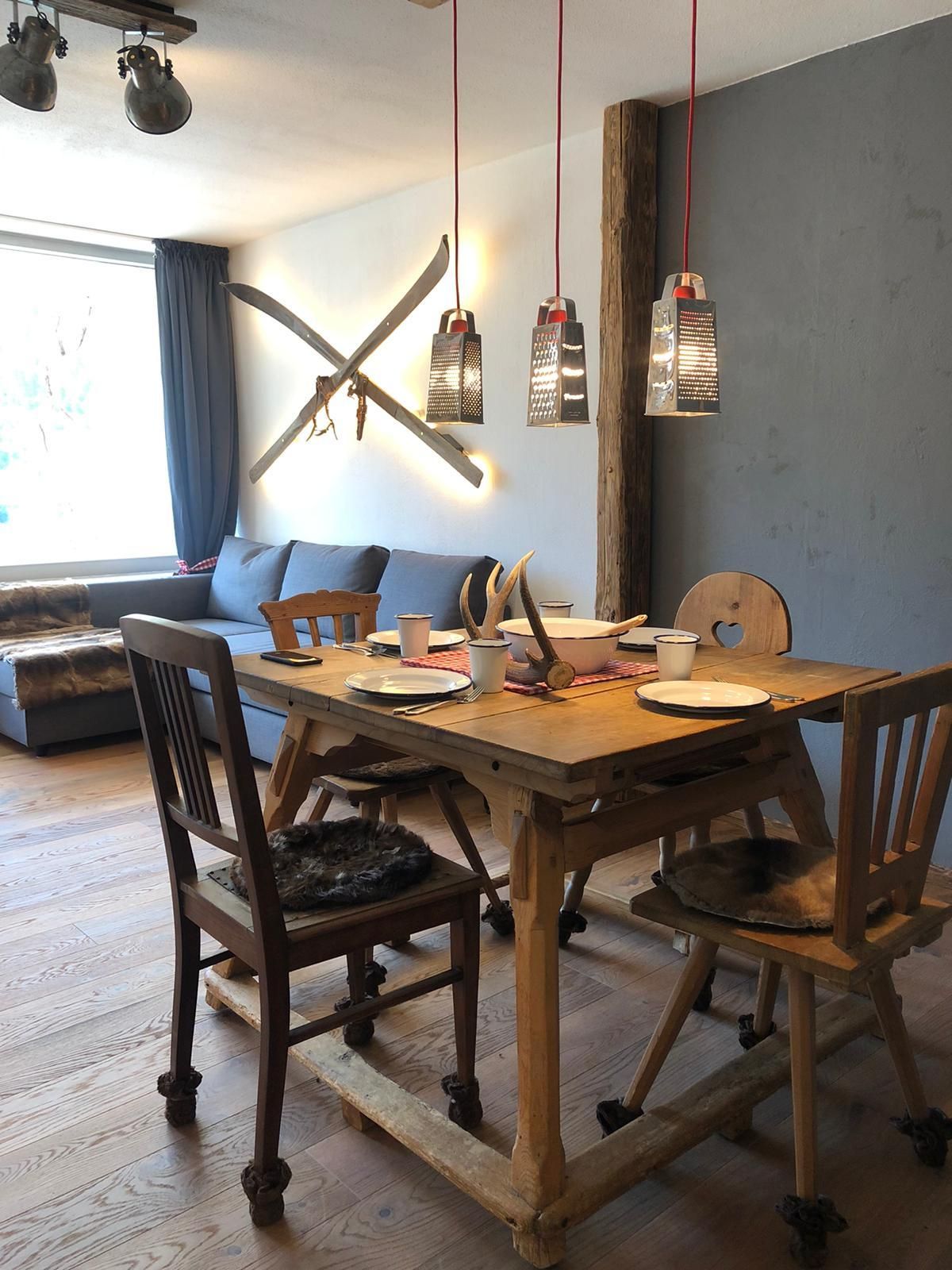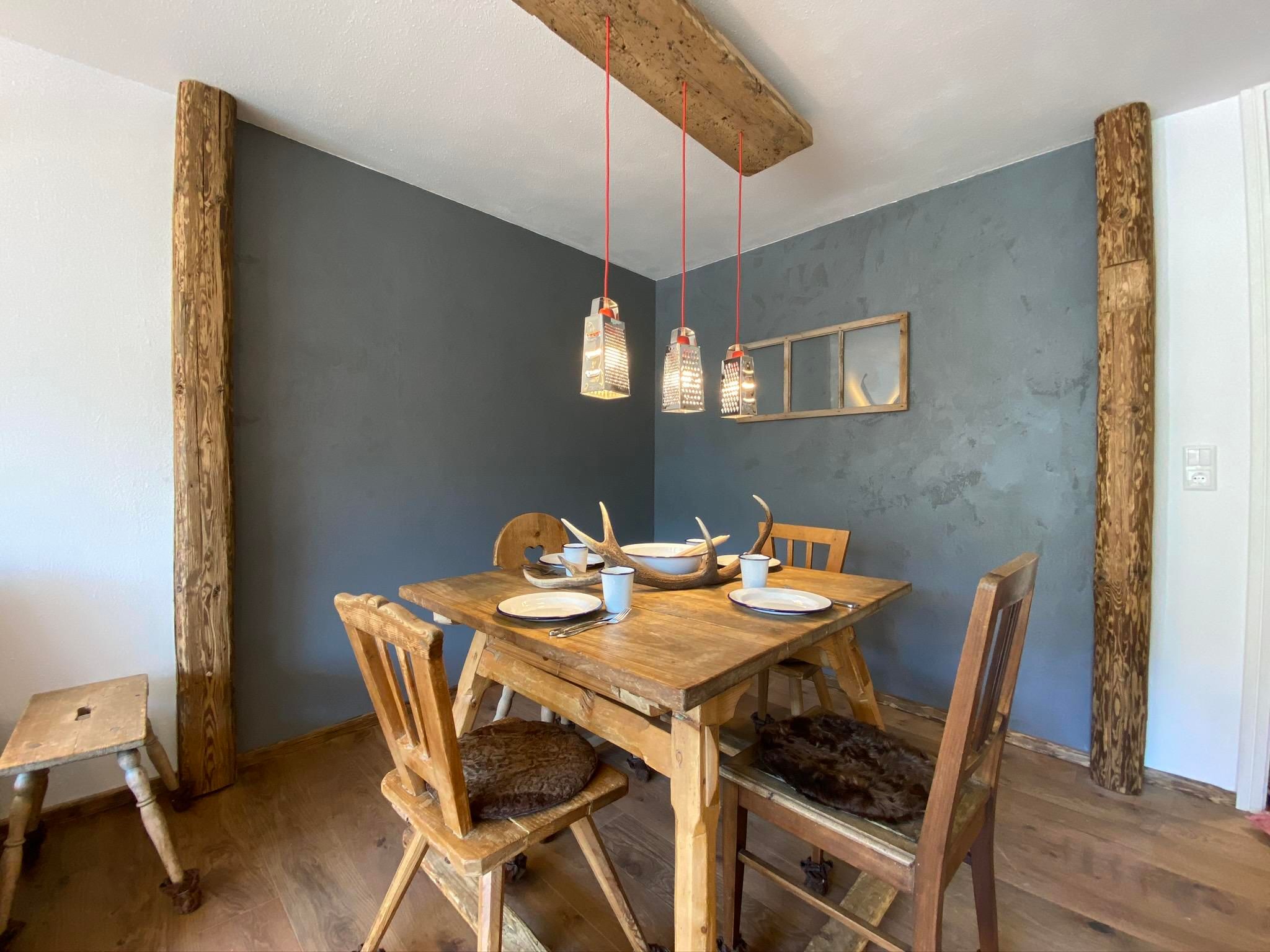 Unser liebevoll renoviertes Appartement im rustikalen AlpenStyle bietet ausreichend Platz, nach einem Tag in den Bergen, nach einer langen Wanderung oder einem Skitag im gemütlichen Hüttenflair im 3. Stock zu entspannen. Die sonnenverwöhnten Zimmer mit viel Altholz, gepaart mit modernen Elementen, schaffen eine stylische und heimelige Atmosphäre. In allen Zimmern haben wir mit viel Liebe zum Detail Upcyling betrieben - und alten Gegenständen eine neue Verwendung gegeben.