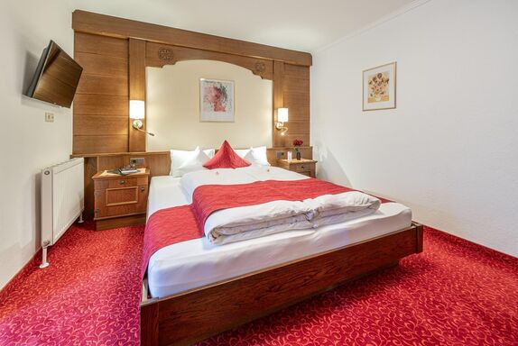 Ihr gemütliches Doppelzimmer ohne Balkon ist im typischen Tiroler Stil eingerichtet. Das Schlafzimmer verfügt über Kabel-TV, Telefon, kostenloses Wireless LAN und einen Code-Safe. Der Wohnbereich mit Flat-TV ist mittels Rundbogen separiert. Dieser läd sie zum Austausch ihrer aktuellen Erlebnisse vom Tag ein. Das Badezimmer mit Dusche/WC, Fön und Kosemtikspiegel ausgestattet. Größe ca. 23 m².