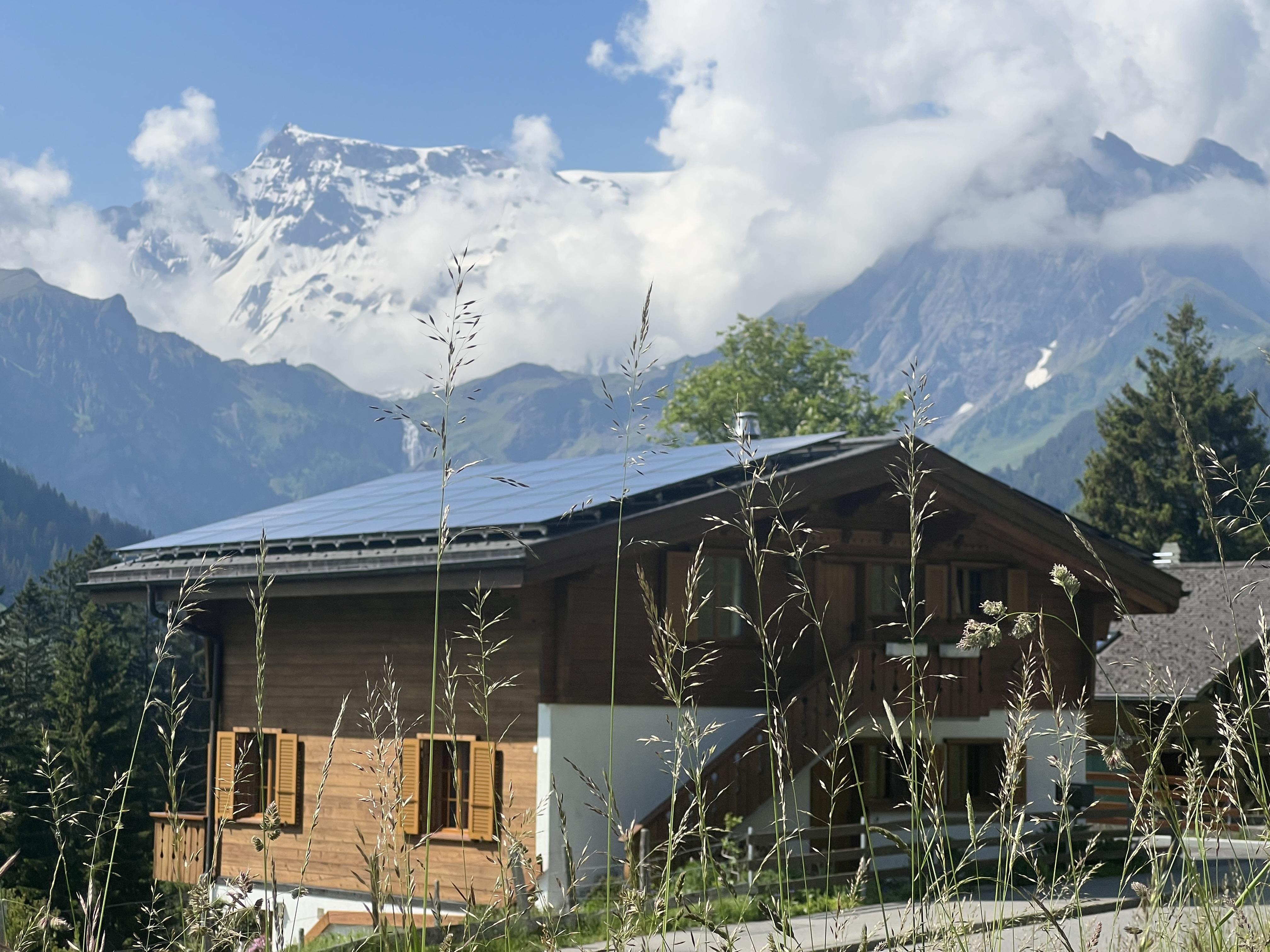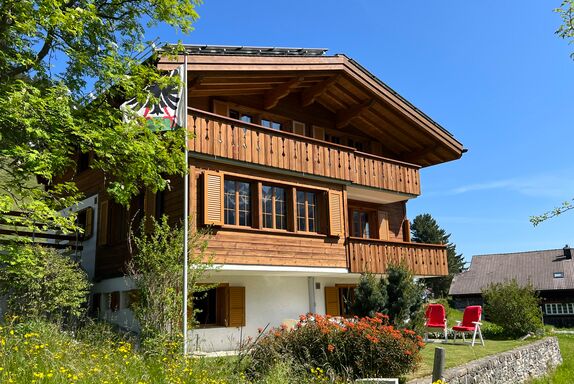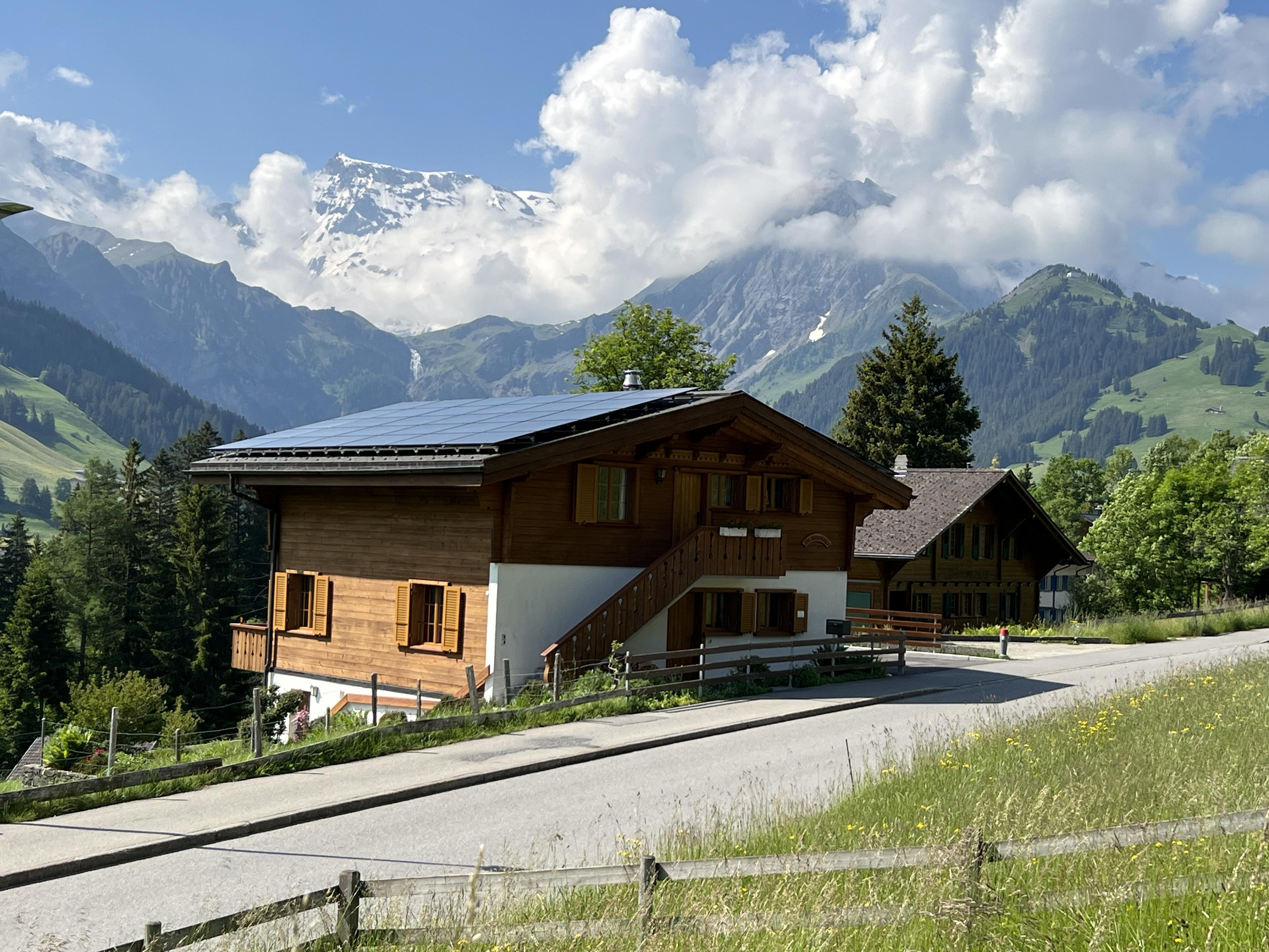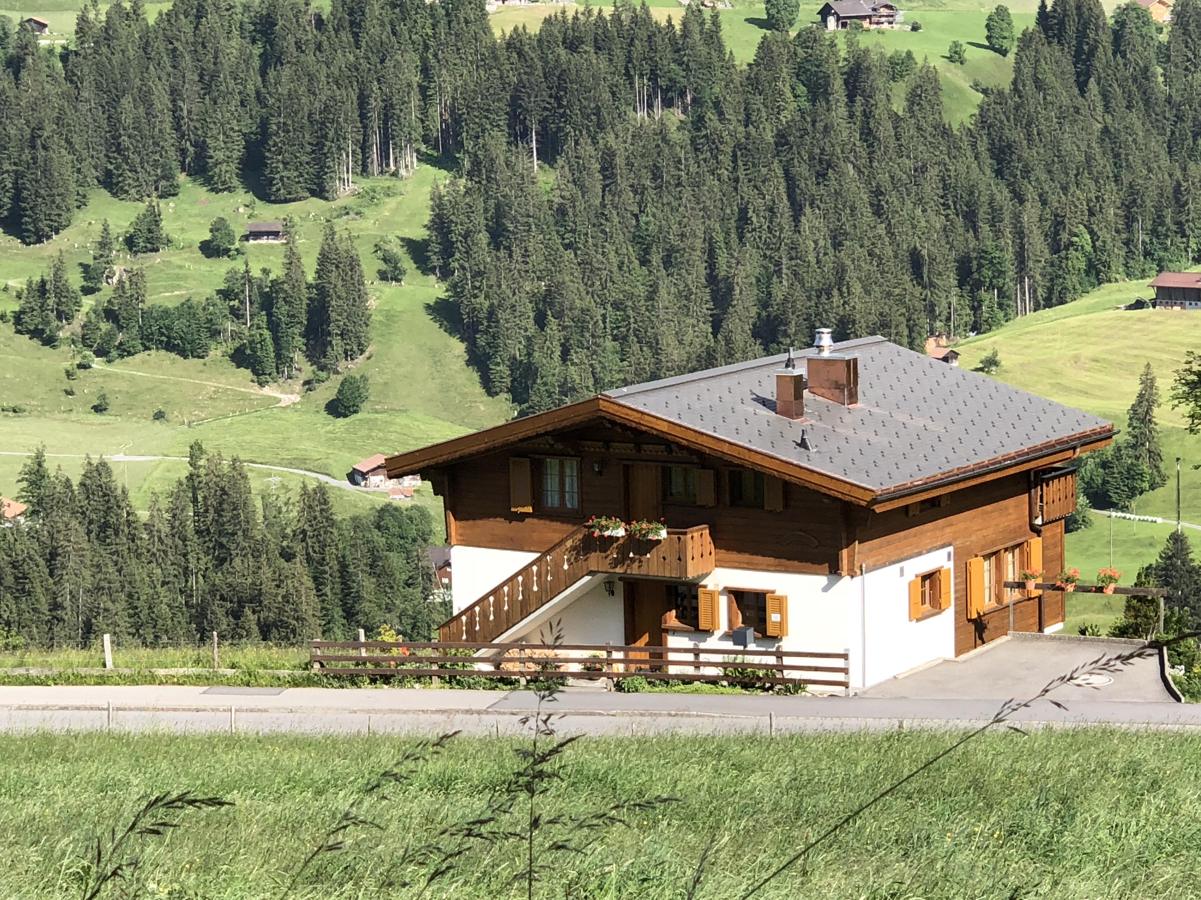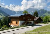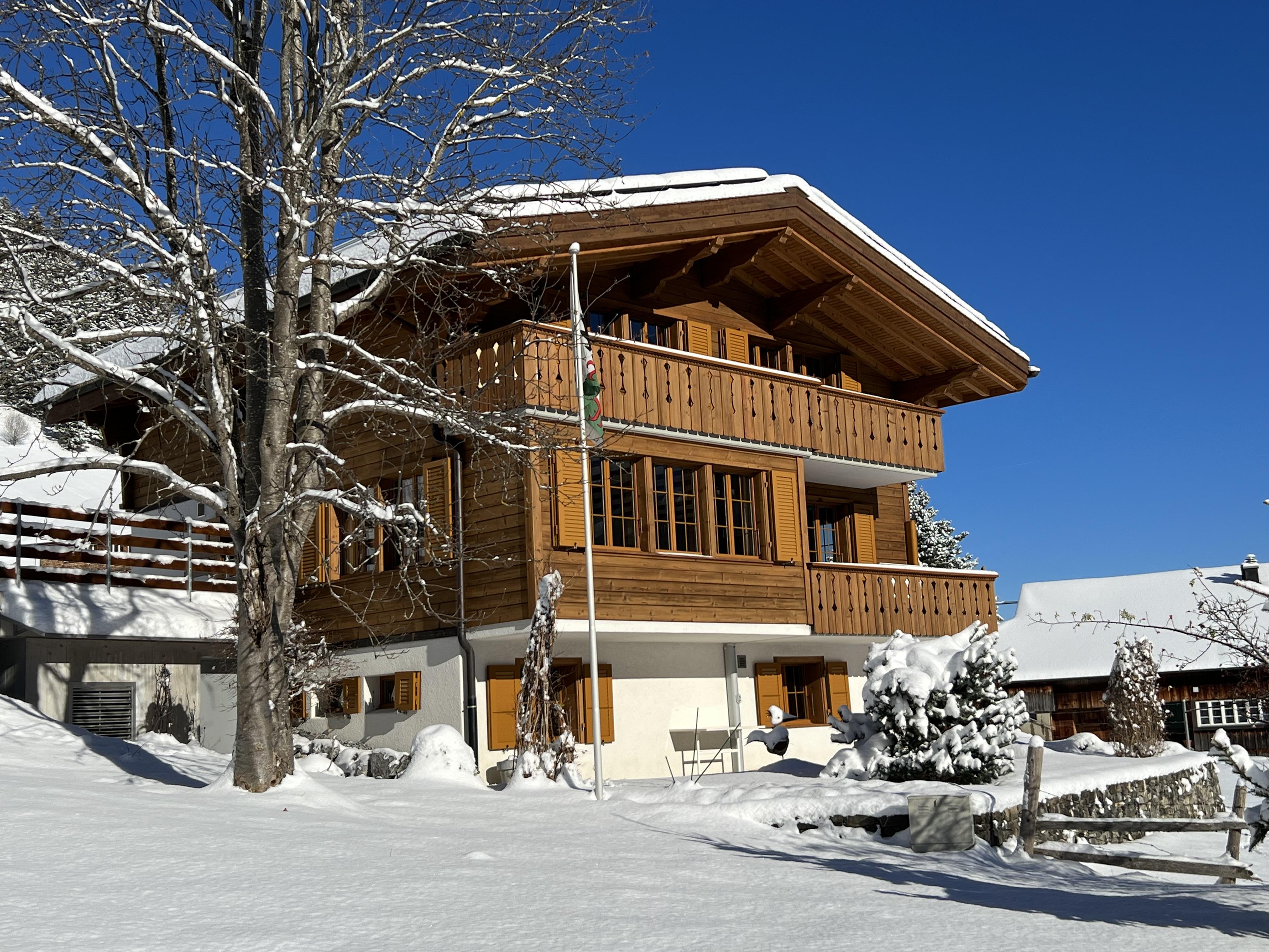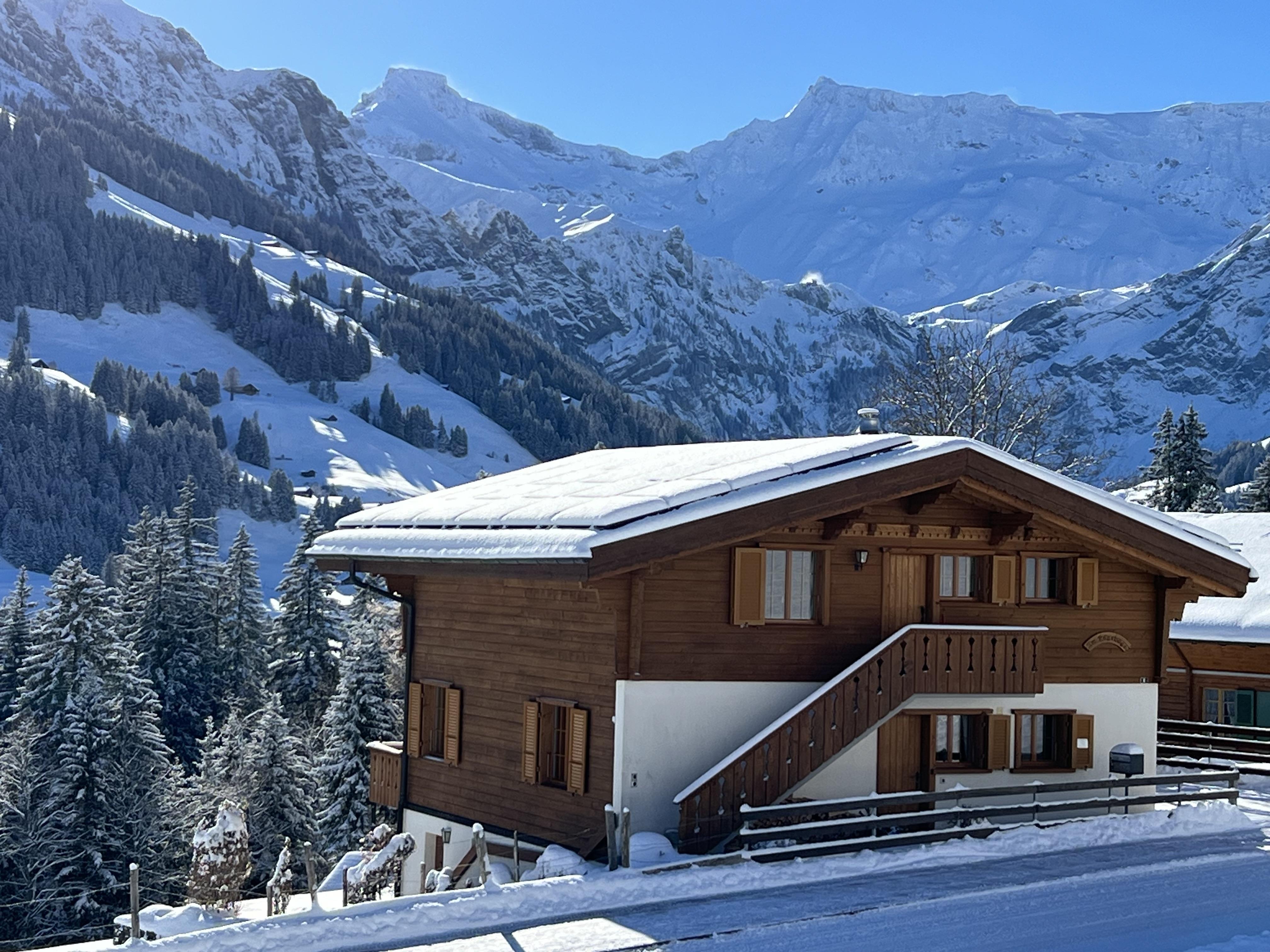 Chalet mit 3 Wohnungen und wunderschöner Sicht auf die Bergwelt. Unmittelbar neben dem Chalet befindet sich eine Bushaltestelle.