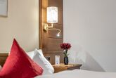 Ihr gemütliches Doppelzimmer ohne Balkon ist im typischen Tiroler Stil eingerichtet. Das Schlafzimmer verfügt über Kabel-TV, Telefon, kostenloses Wireless LAN und einen Code-Safe. Der Wohnbereich mit Flat-TV ist mittels Rundbogen separiert. Dieser läd sie zum Austausch ihrer aktuellen Erlebnisse vom Tag ein. Das Badezimmer mit Dusche/WC, Fön und Kosemtikspiegel ausgestattet. Größe ca. 23 m².
