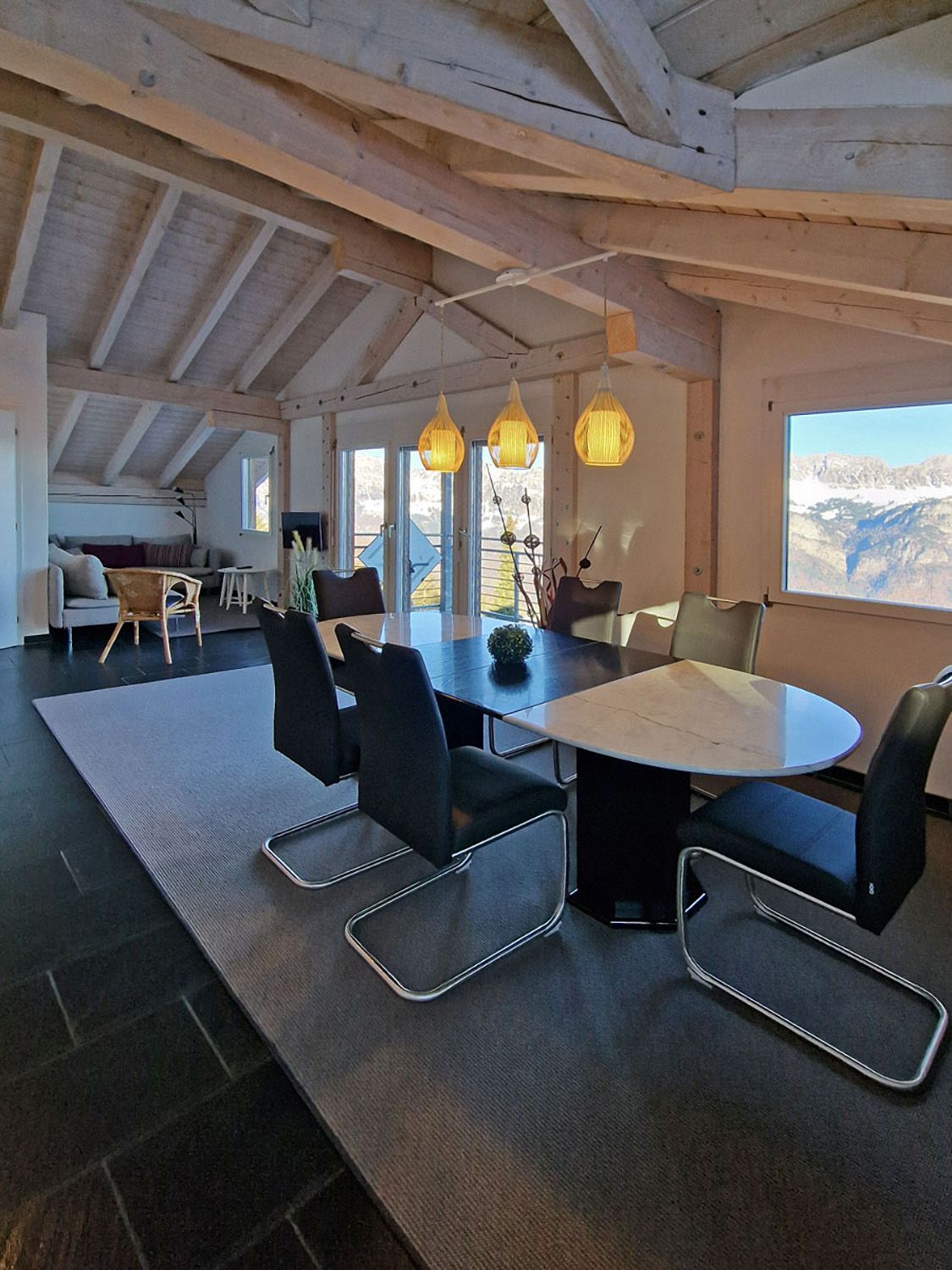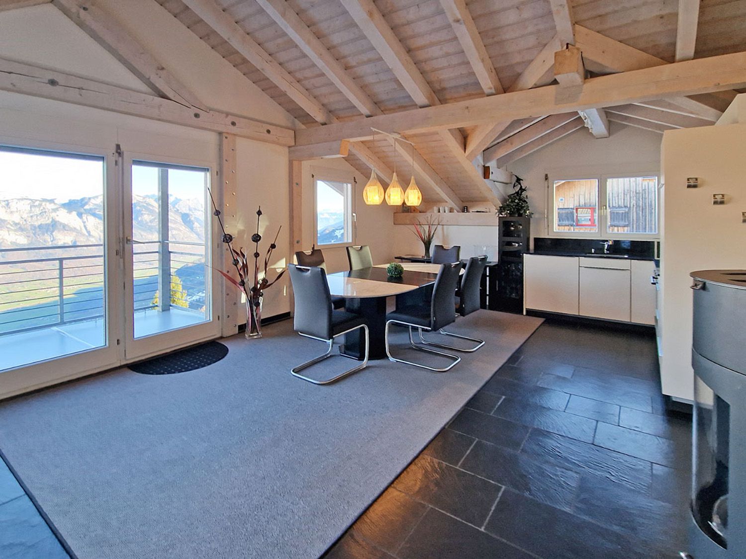 Gemütliche heimelige Wohnung mit Schwedenofen. 1 Doppelbett Zimmer, 1 Zimmer mit 2 Betten plus einem Zusatzbett, Galerie mit 4 Schlafmöglichkeiten (Matratzenlager, Schlafsack und Kissenanzug mitbringen). Waschmaschine vorhanden. Die Küche ist vollständig ausgestattet. Im Parterre hat es einen Kasten mit Fondue Geschirr und Raclette Ofen. Direkter Zugang auf 5 min. Fussweg zur Talabfahrt Tannenheim. Sie brauchen die ganze Woche kein Auto. Unvergleichliche Aussicht auf die Churfirsten und die Bündner Herrschaft.