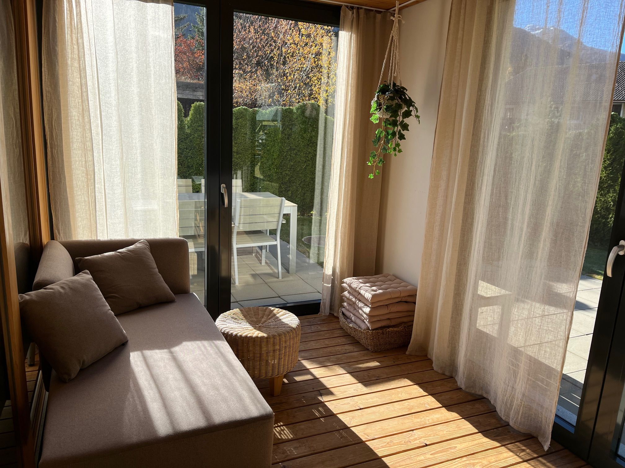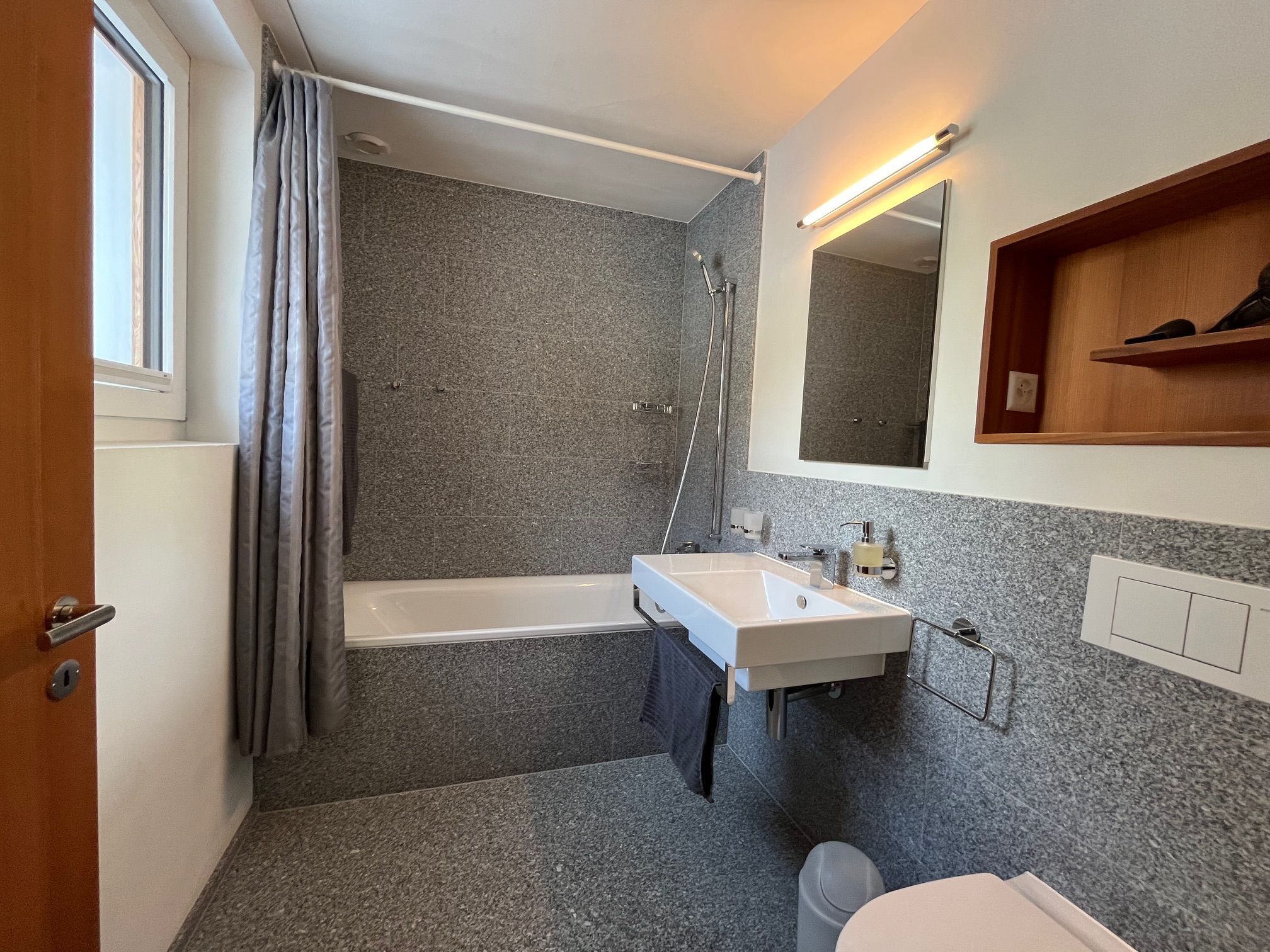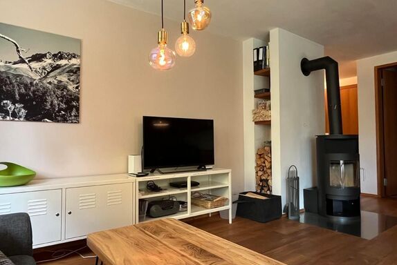 Im 2012 neu erstellte und gemütliche 3.5 Zimmer-Wohnung an sehr ruhiger und zentraler Lage mitten in Zernez. Sie ist ebenerdig gebaut und mit einem heimeligen Cheminéeofen ausgestattet. Der gemütliche Wintergarten gibt auch bei kühleren Temperaturen das Gefühl draussen zu sein. Die Wohnung verfügt über eine eigene Waschmaschine und Tumbler und ist mit hochwertigen Lärchenholz-Böden ausgestattet, die Bäder mit Granit. Der Garten mit Feuerschale und -grill steht zur alleinigen Benutzung zur Verfügung. Die Betten sind bei Ferienbeginn frisch bezogen. Frottée- und Küchenwäsche sowie Feuerholz wird zur Verfügung gestellt. Es stehen 2 Schlitten und Bob sowie vielseitiges Kinderzubehör kostenlos zur Verfügung. Das WLAN steht unseren Gästen selbstverständlich auch kostenlos zur Verfügung.