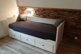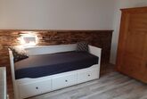 Unsere große Ferienwohnung Hochgrat bietet mit einer Gesamtwohnfläche von 95 qm jede Menge Platz für große Familien oder Reisegruppen. Sie verfügt über 3 separate Schlafzimmer. In 2 Schlafzimmern steht ein gemütliches Doppelbett zur Verfügung. Das 3. Schlafzimmer ist mit 2 Einzelbetten ausgestattet, welche sich bei Bedarf ausziehen lassen und als Doppelbett nutzen lassen.
