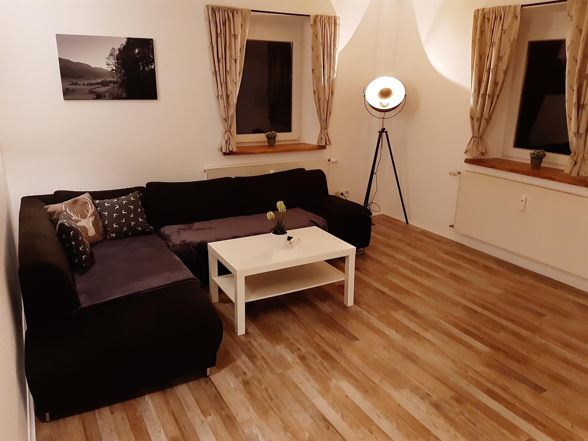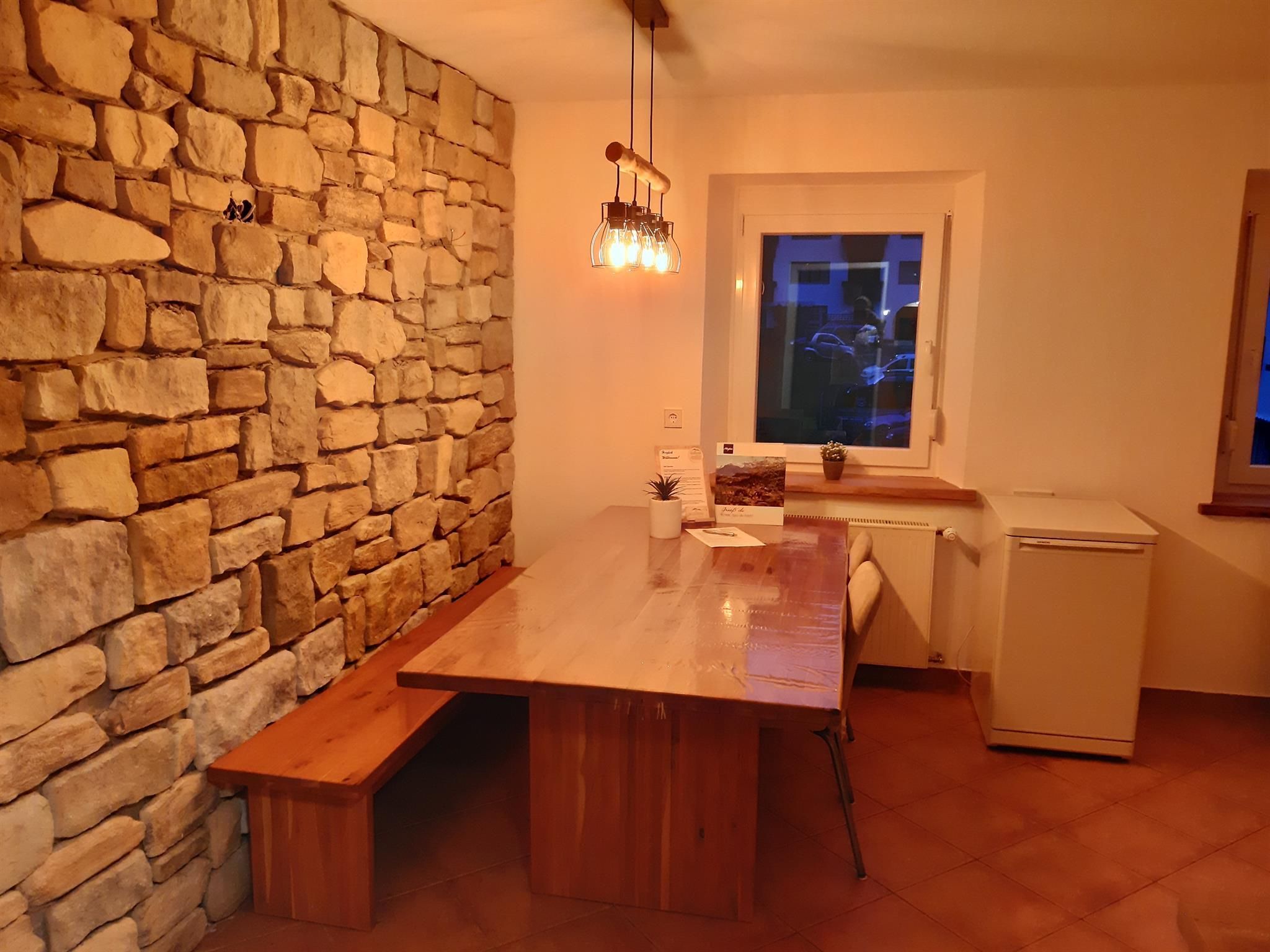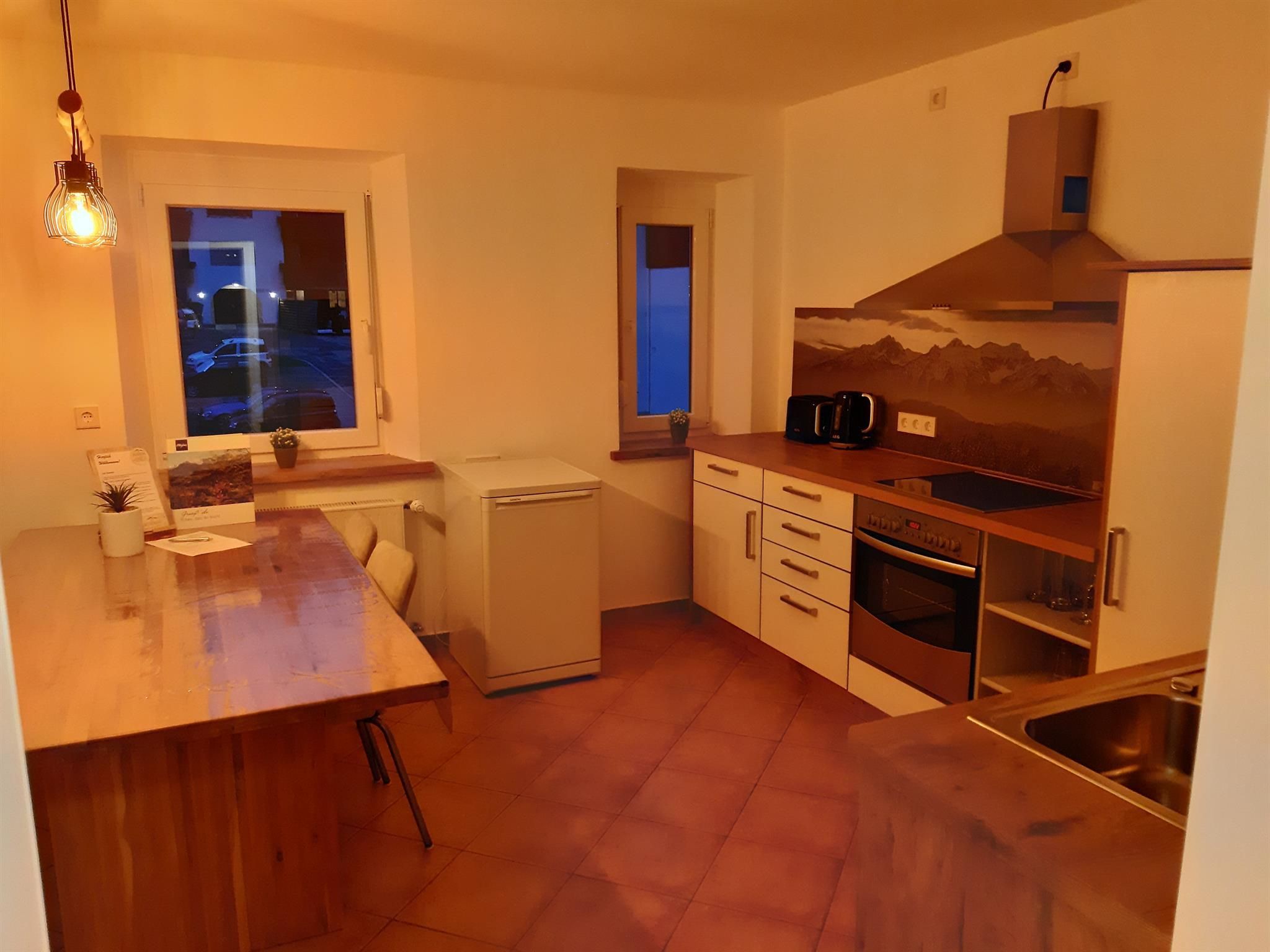 Zudem steht ein helles und geräumiges Wohnzimmer mit 55 Smart-TV zur Verfügung. Die große Küche dient gleichzeitig als Esszimmer.