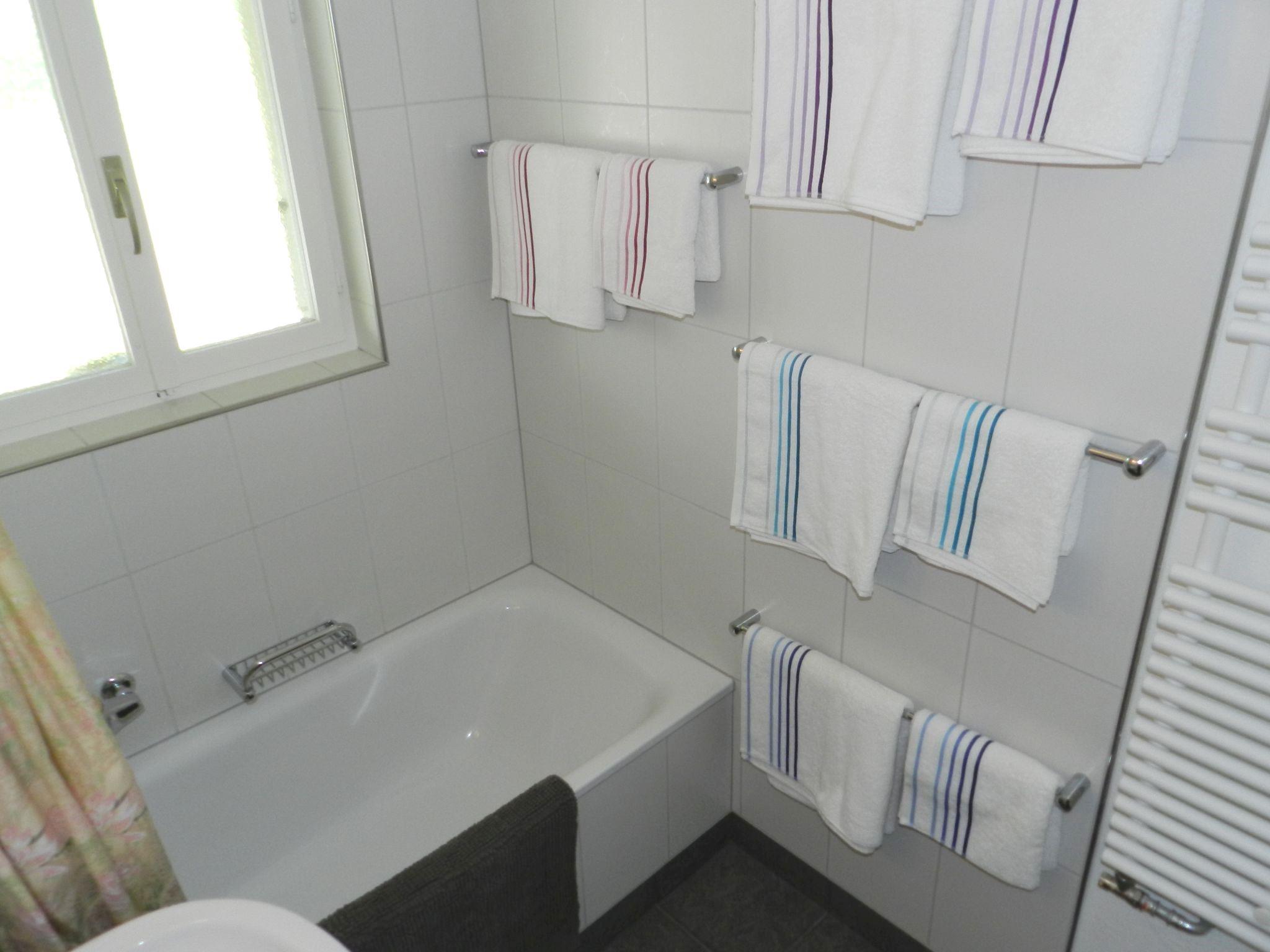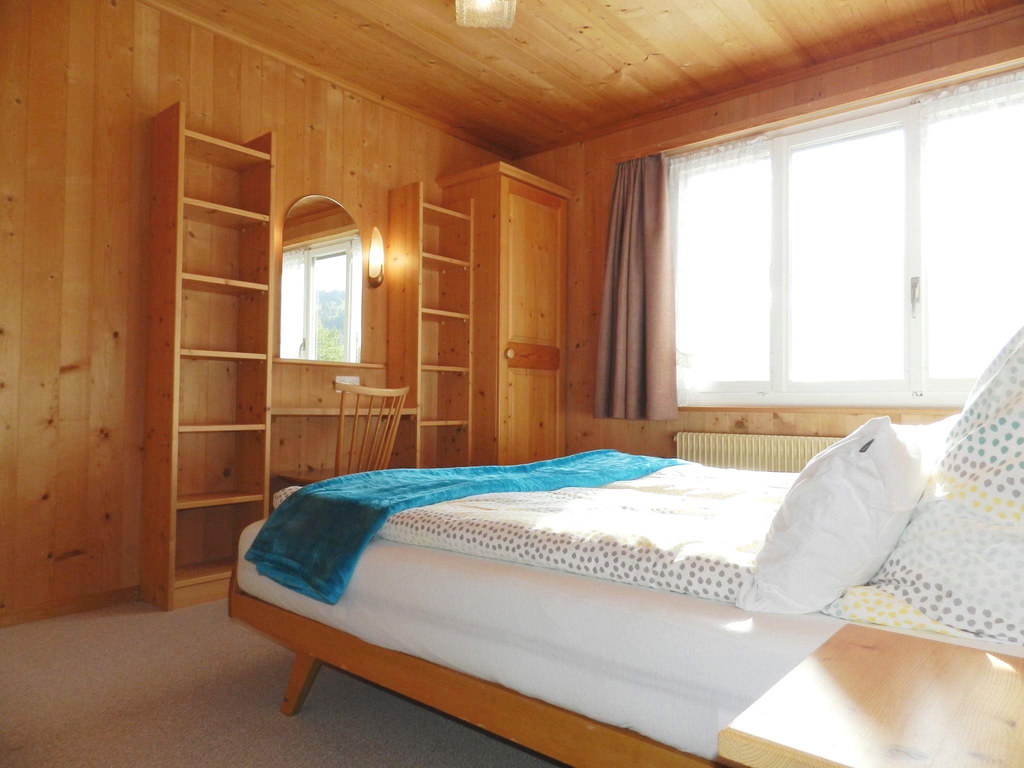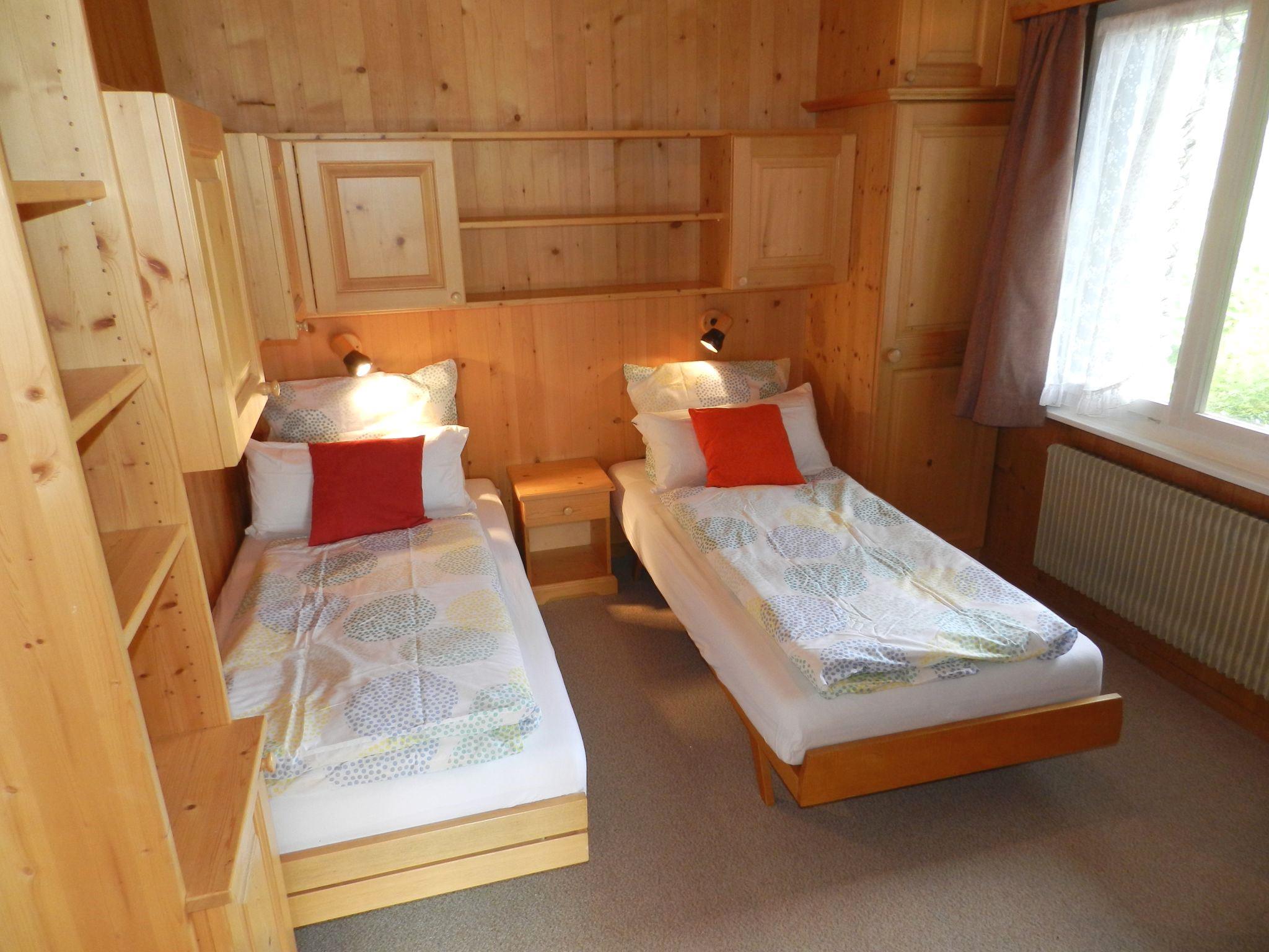 Wohnzimmer mit Sofa, Tisch, 4 Sessel, TV, Telefon. 1 Schlafzimmer mit 2 Einzelbetten (2x90x190cm). 1 Schlafzimmer mit 2 zusammengeschobenen Einzelbetten (2x90x190cm). Küche mit Geschirrspülmaschine, Backofen, Kühlschrank mit Gefrierfach, Filter-Kaffeemaschine sowie Fondue- und Raclette-Set. 1 Badezimmer mit Badewanne und WC. WiFi.