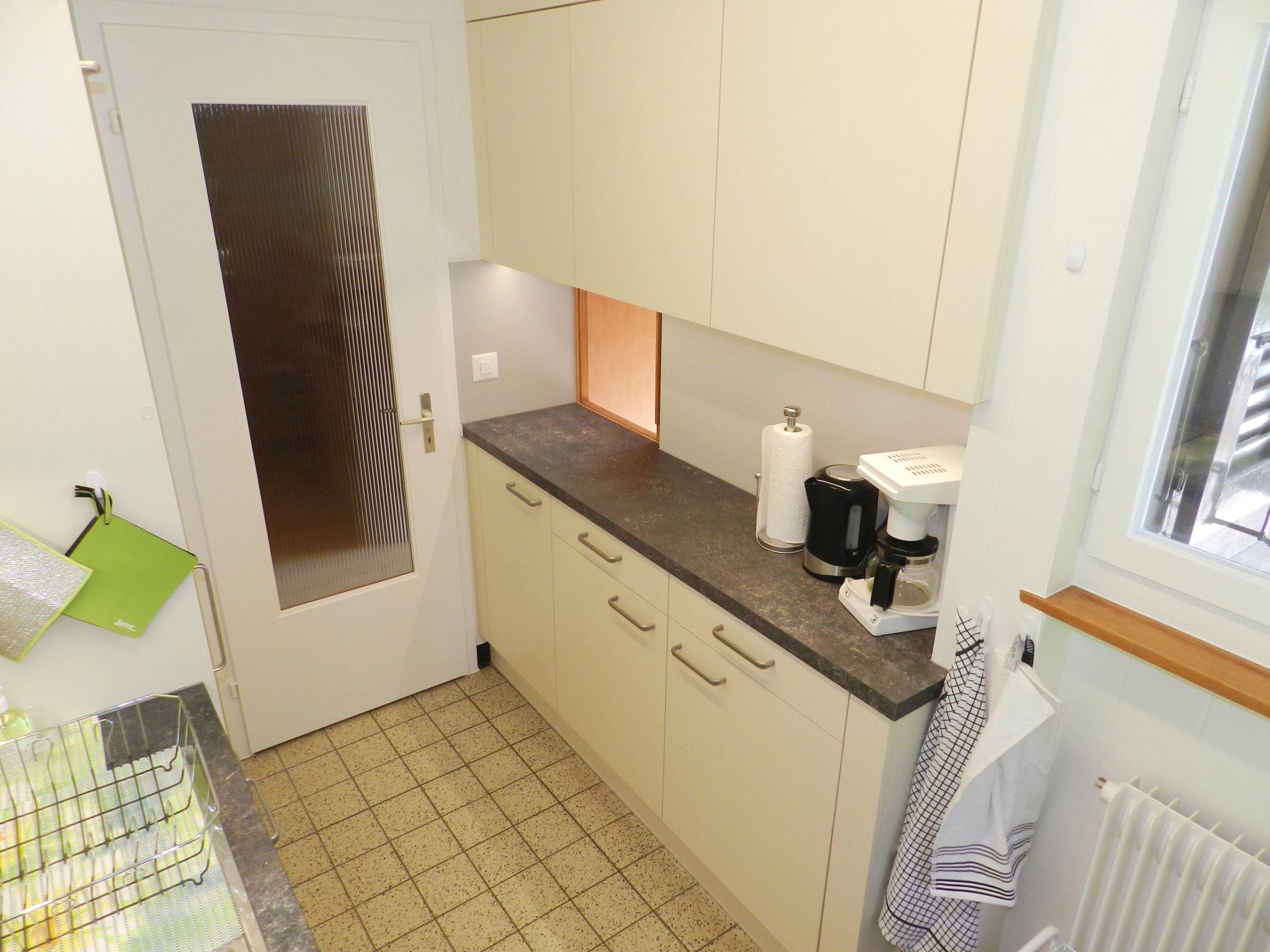 3-Zimmerwohnung (58m2) im 1. Stock eines Zweifamilien-Chalets. Ruhige Lage mit Aussicht auf das Dorf Zweisimmen. Balkon und Sitzplatz mit Gartenmöbeln. Nähe Schwimmbad.