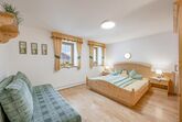 1 Schlafzimmer mit 1 Doppelbette + 1 Doppelcouche, 1 Schlafzimmer mit 1 Doppelbett + Dusche, 1 Bad mit Dusche + WC, 1 Vorraum, 1 Wohnraum mit Küche und Esstisch + 1 Doppelcouch, Spülmaschine, Mikrowelle, Elektroherd mit 4 Kochplatten, Backrohr, Radio, Staubsauger, WLAN, Sat-TV, 1 Balkon mit Sitzmöbel Westseite, Wäschetrockner.